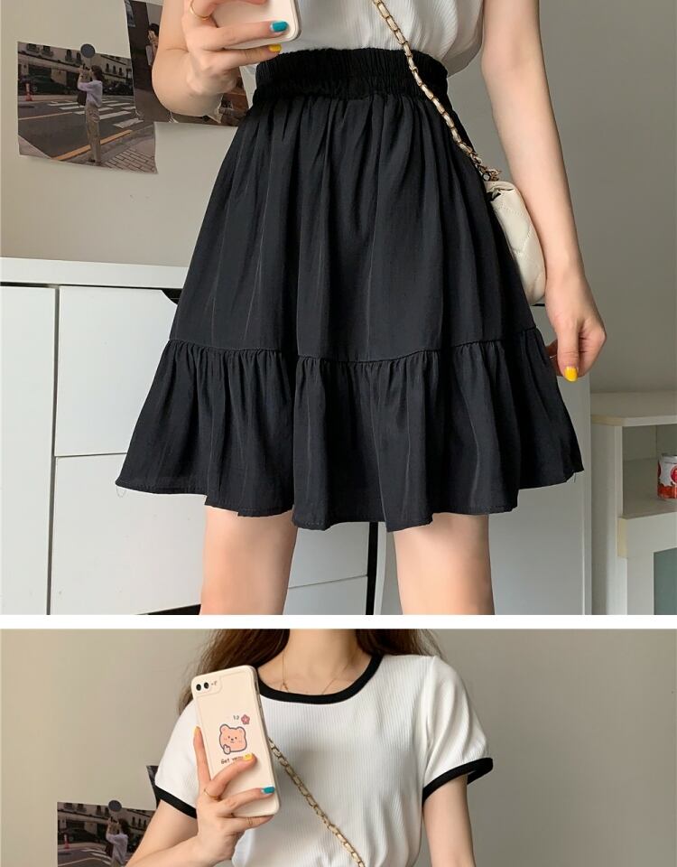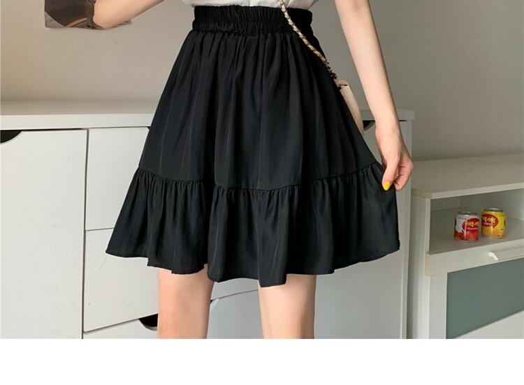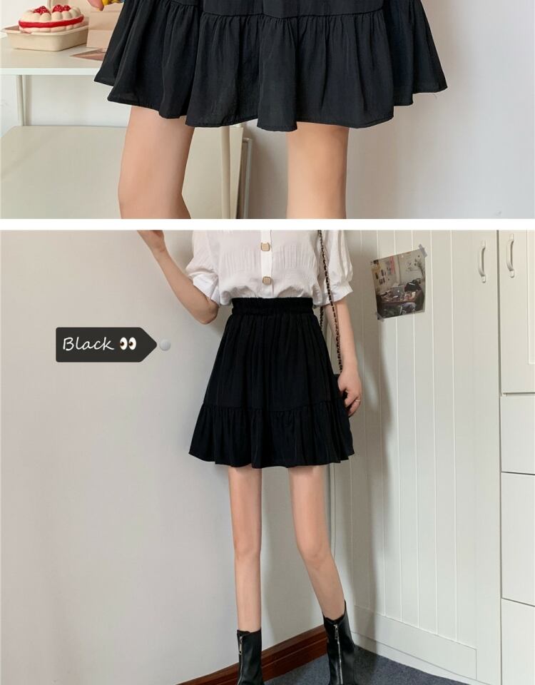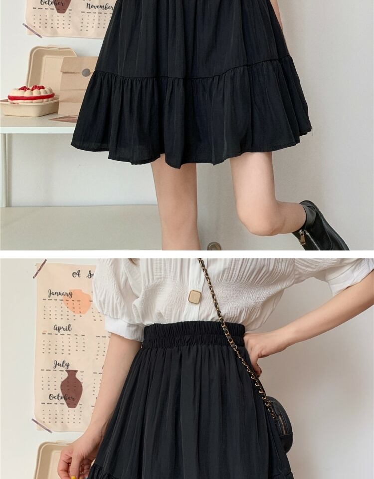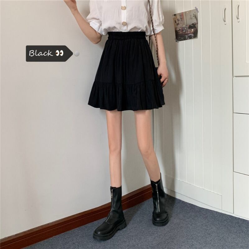 ブラックスカート サマーハイウェスト薄手プリーツAライン 大きめサイズ 夏物 萌量不足16397895576
