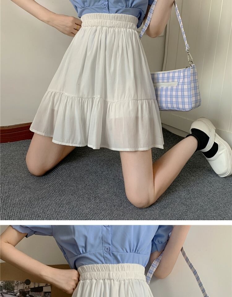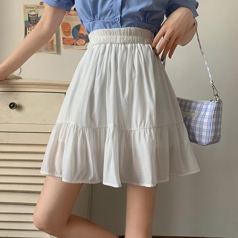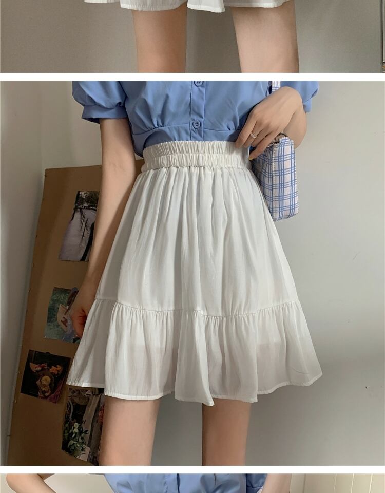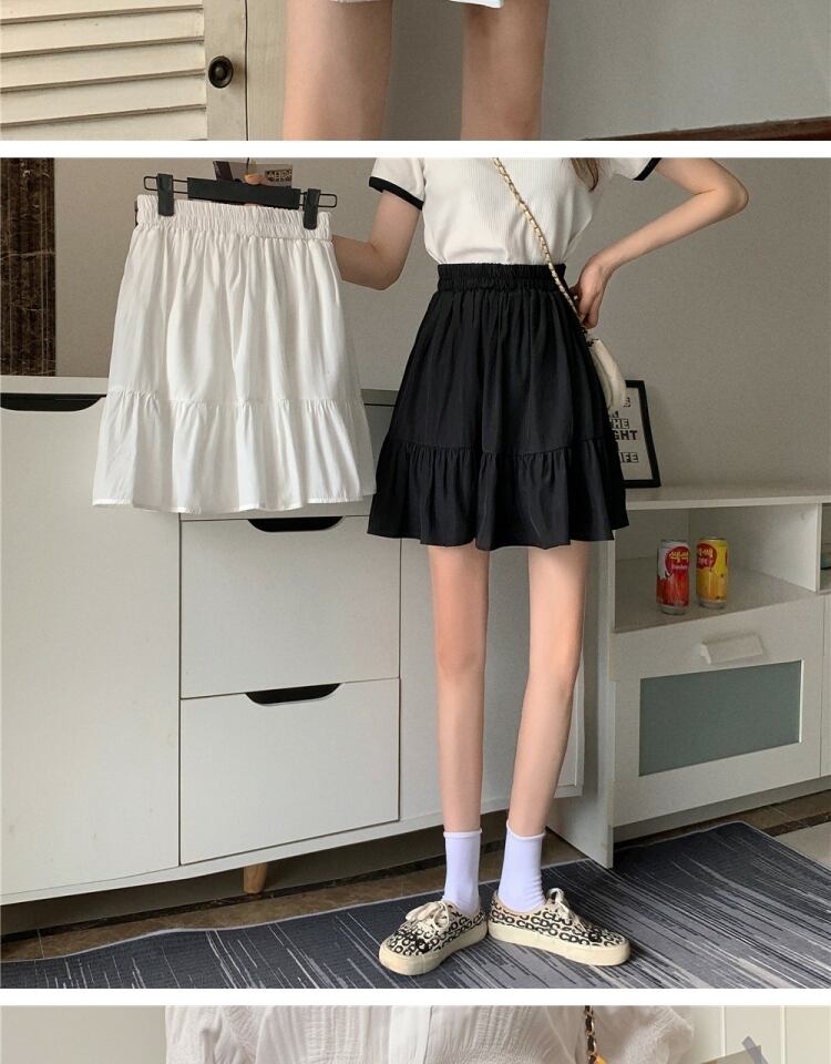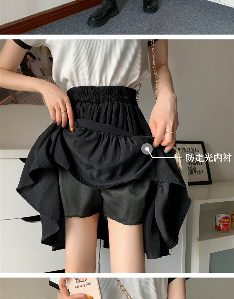 ブラックスカート サマーハイウェスト薄手プリーツAライン 大きめサイズ 夏物 萌量不足16397895576