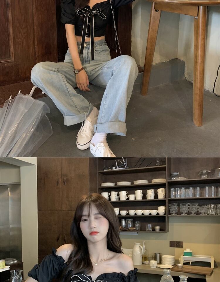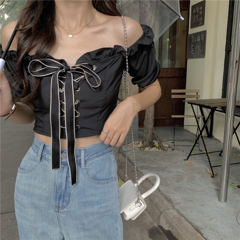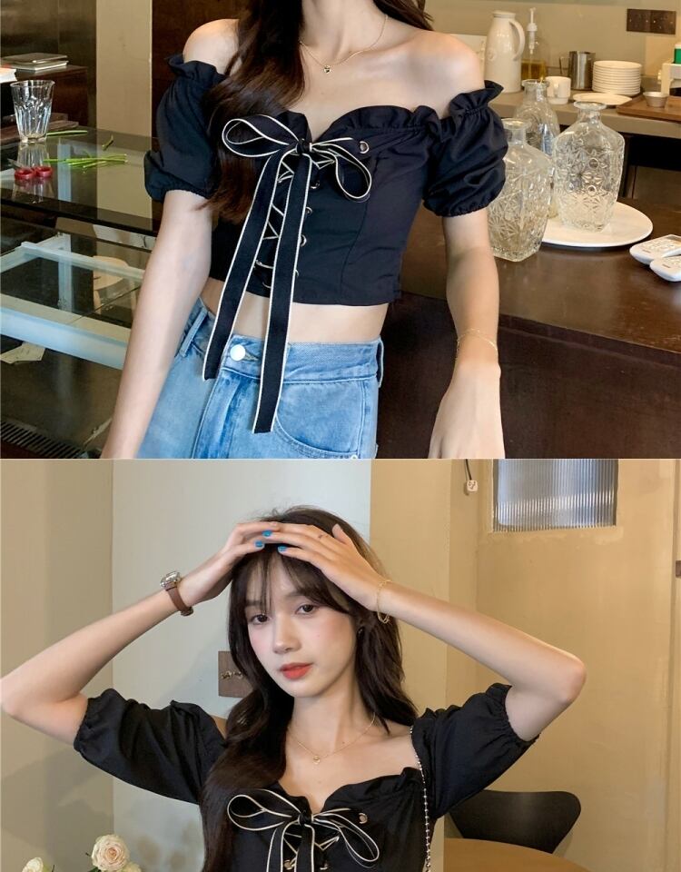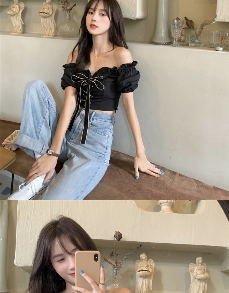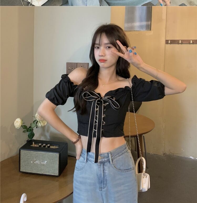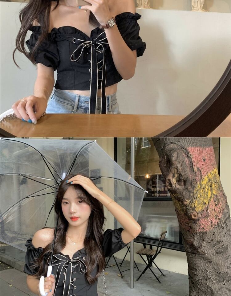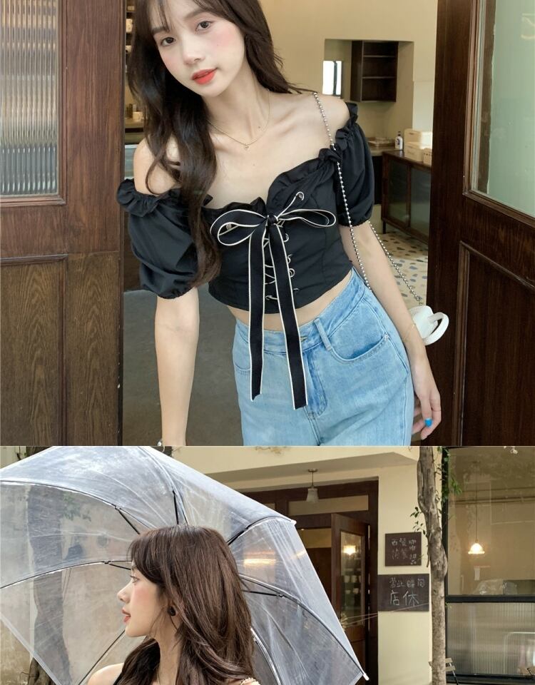 スタイルシャツ ブラウス サマー薄手カラーショート 夏物 オフショルダー 萌量不足73675027105