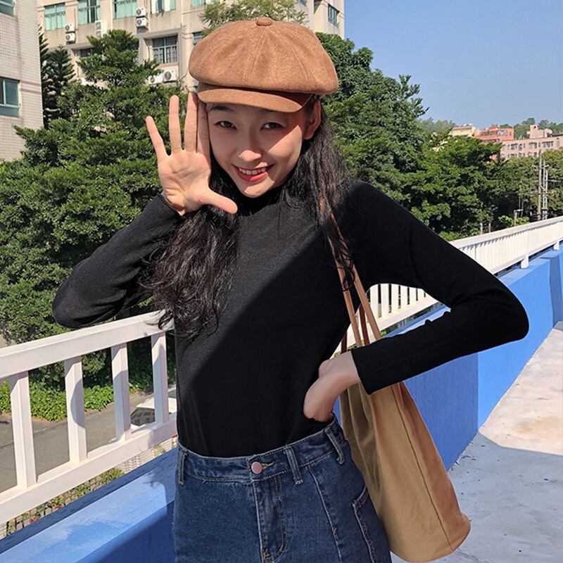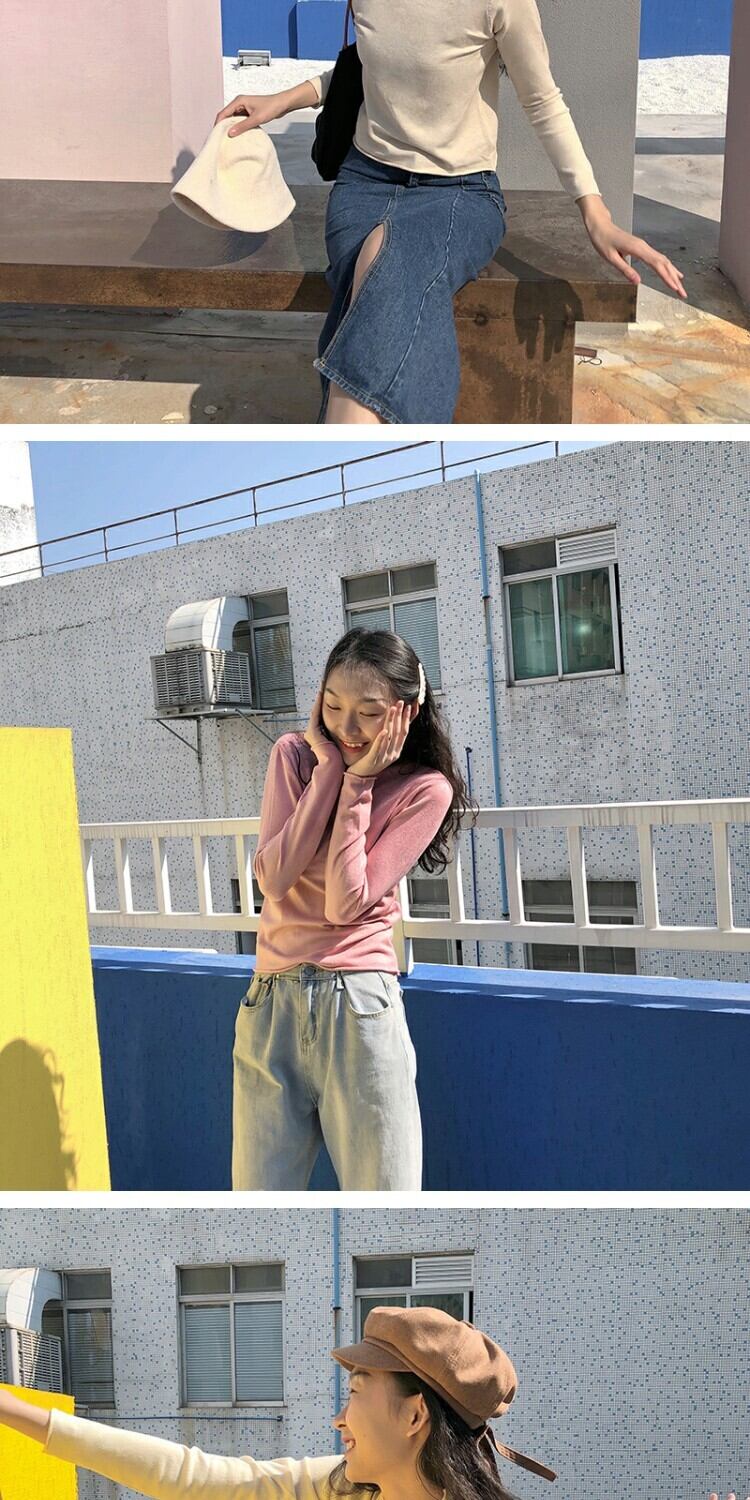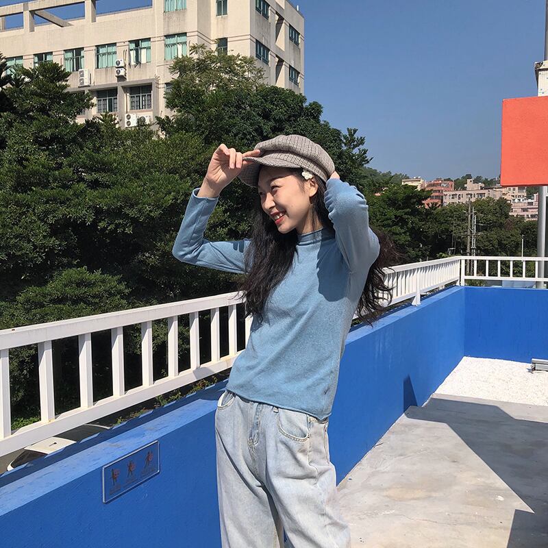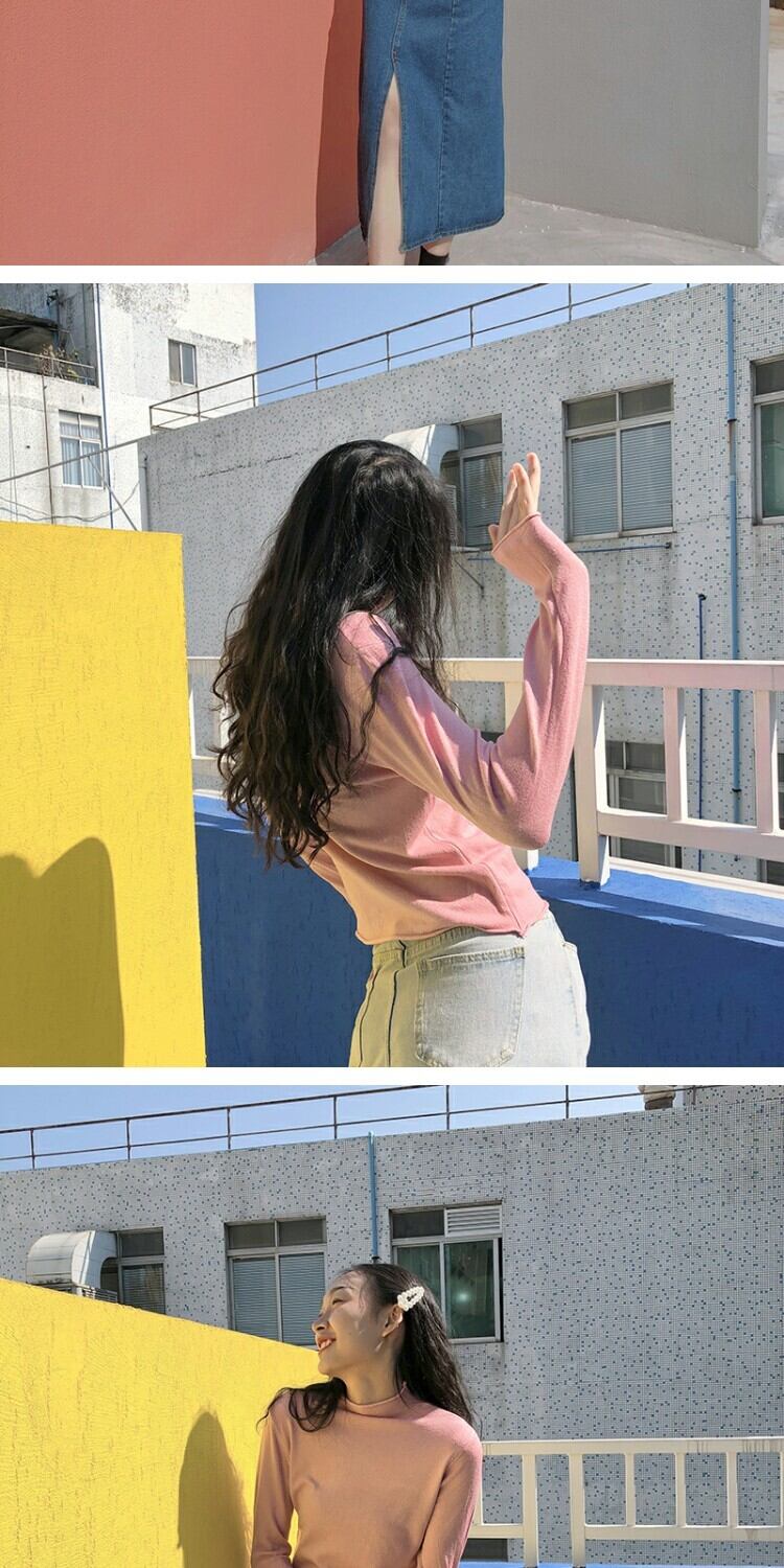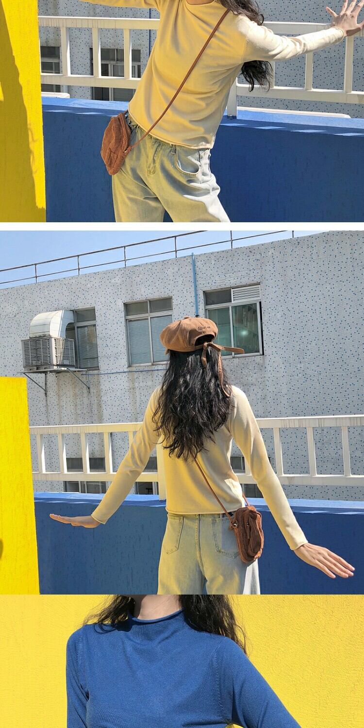 カラーシャツ スプリングベーシックソリッド Tシャツ スリムトップス ロング 春物 ソリッドカラー 萌量不足32874746894