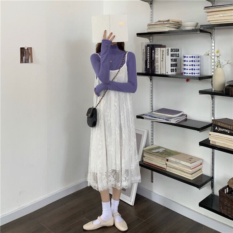 色:パープルボトミングピース,ホワイトサスペンダースカート