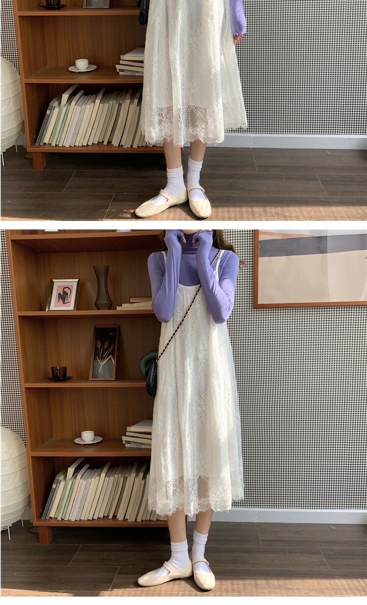 スカート スプリングオータムホワイトドレス 大人ガーリー スウィート キュート カジュアル 春物 秋物 ピュア 萌量不足40987260377