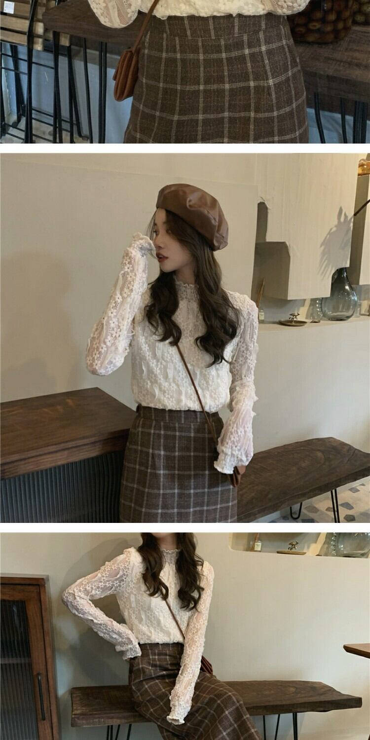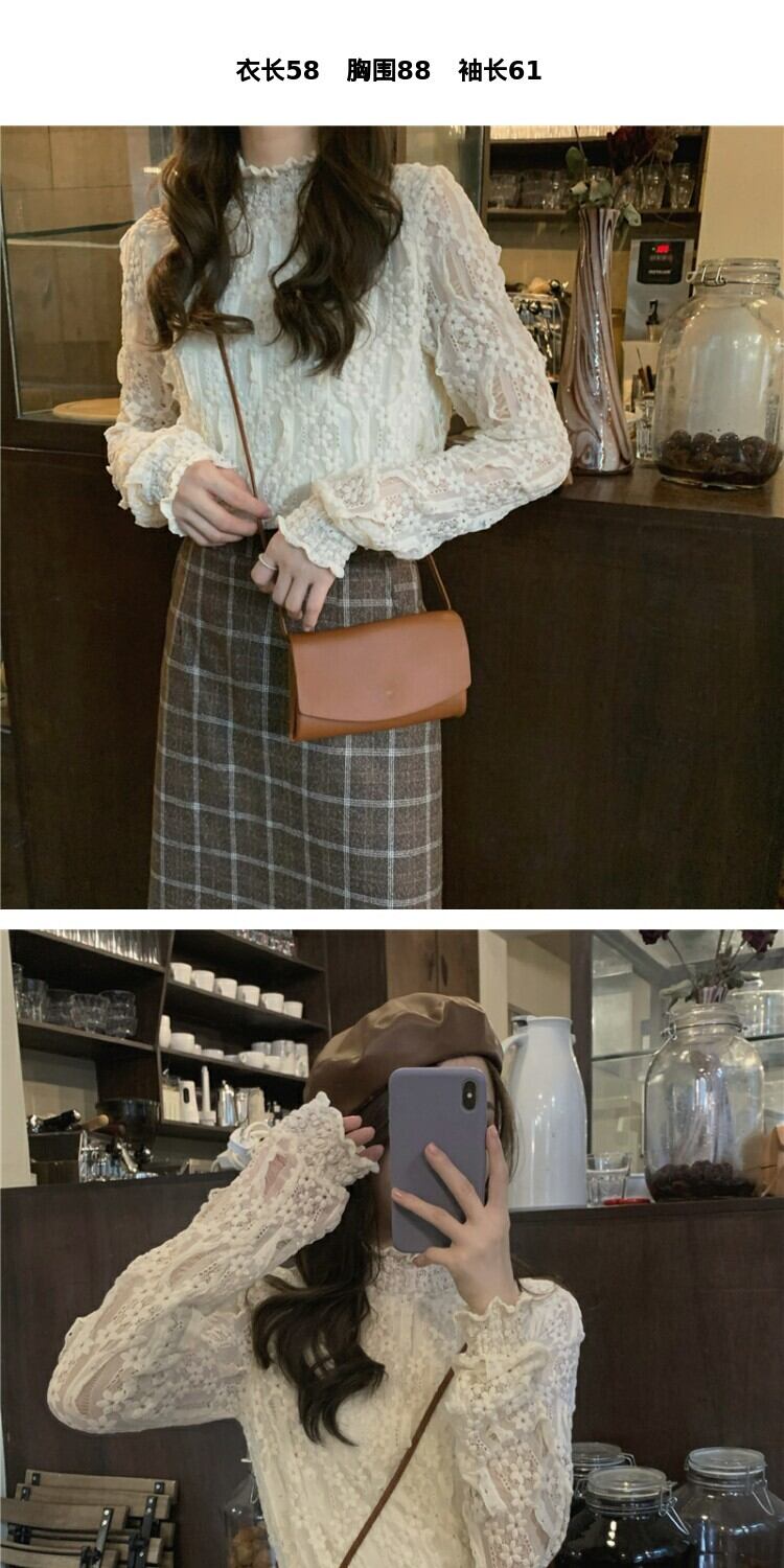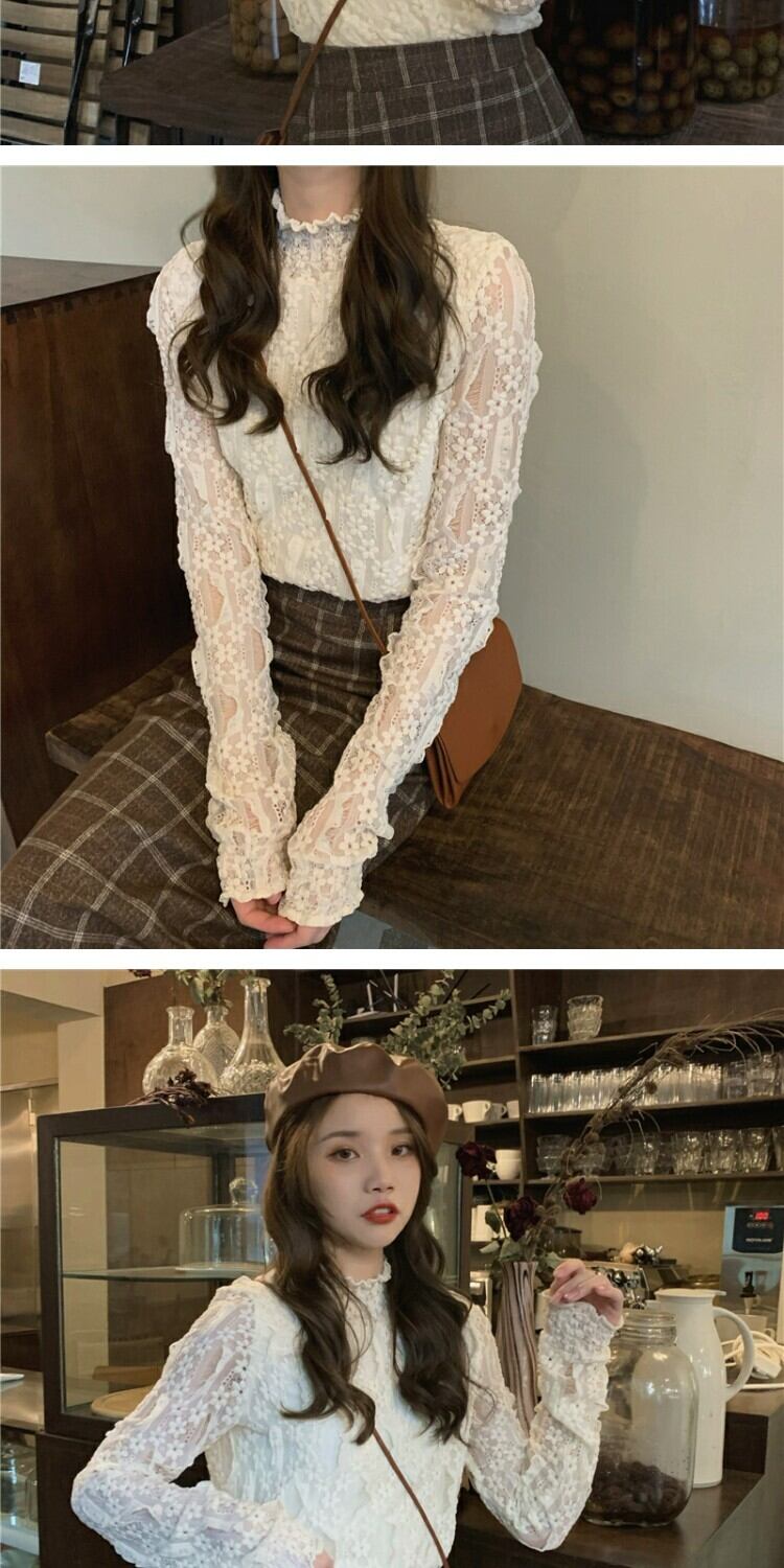 メッシュカラーレースシャツ オータムウィンタースタイルプルオーバー トップス ロング 秋物 冬物 萌量不足6623314789