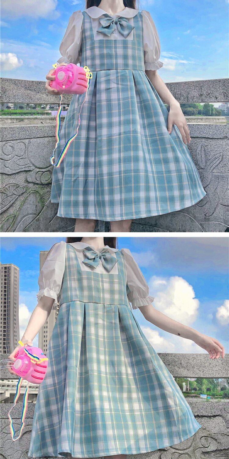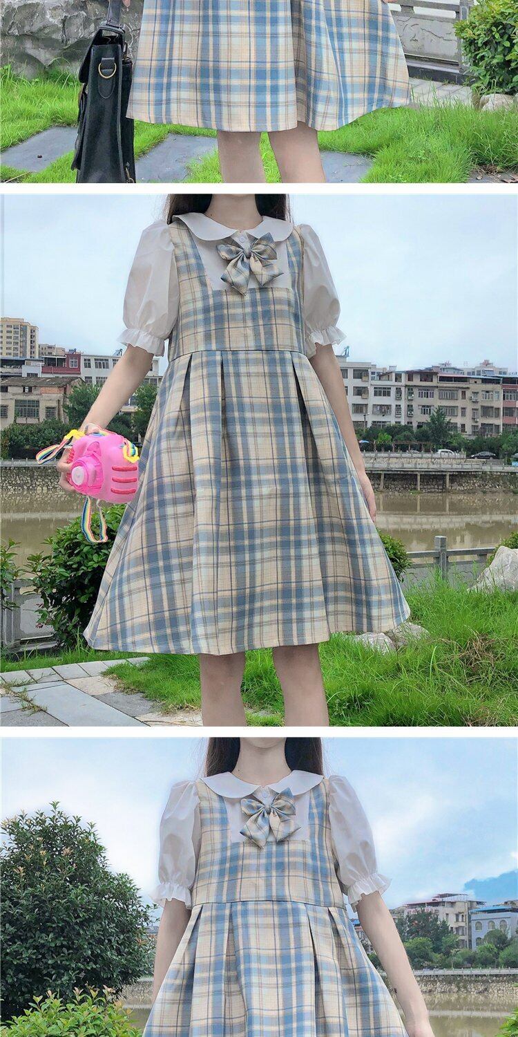 レッドスカート スプリングスタンダード格子柄ドレス 薄手 レトロ 春物 萌量不足90748739254