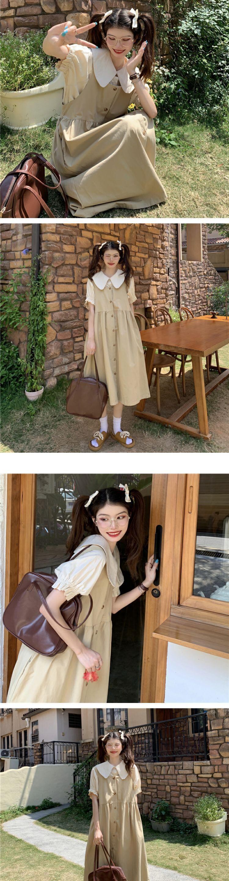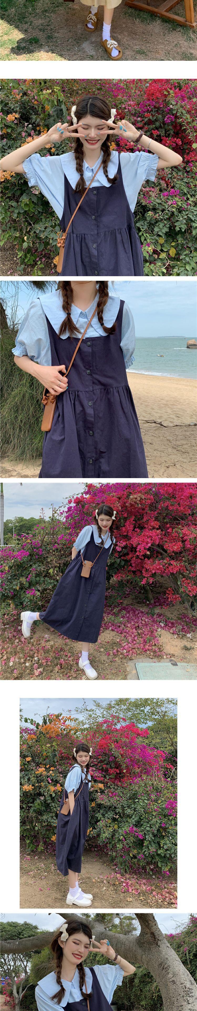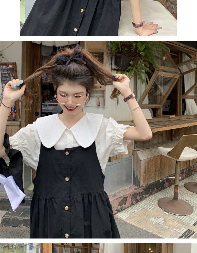 色:白いシャツのワンピース,青いシャツワンピース,ワンピースアプリコットシャツ,ブラックストラップドレスワンピース,ブルーストラップワンピース,カーキストラップスカートワンピース