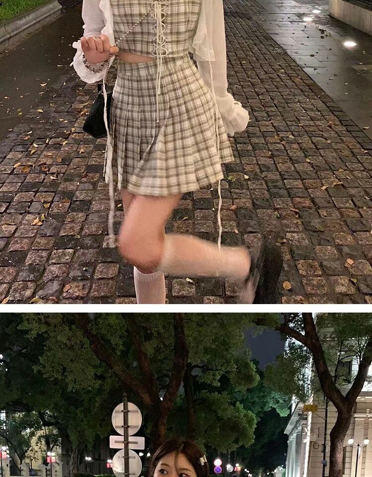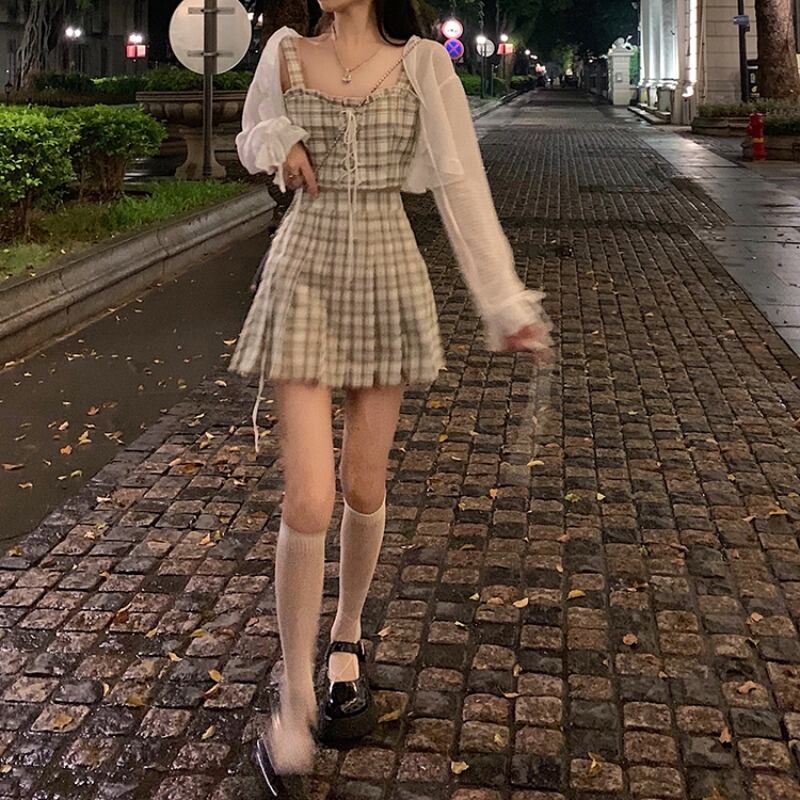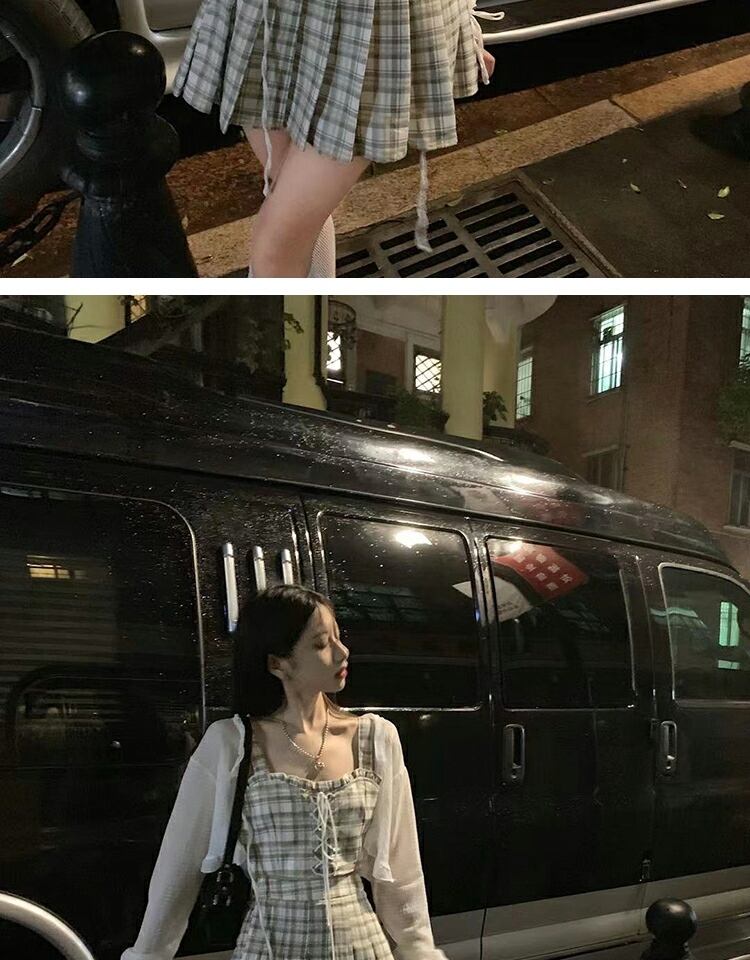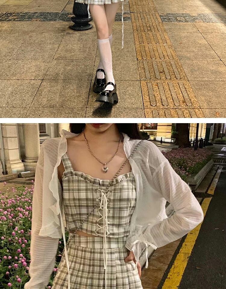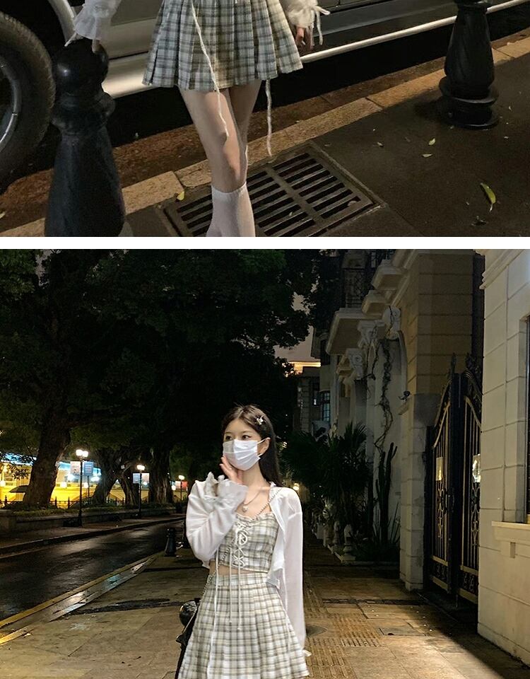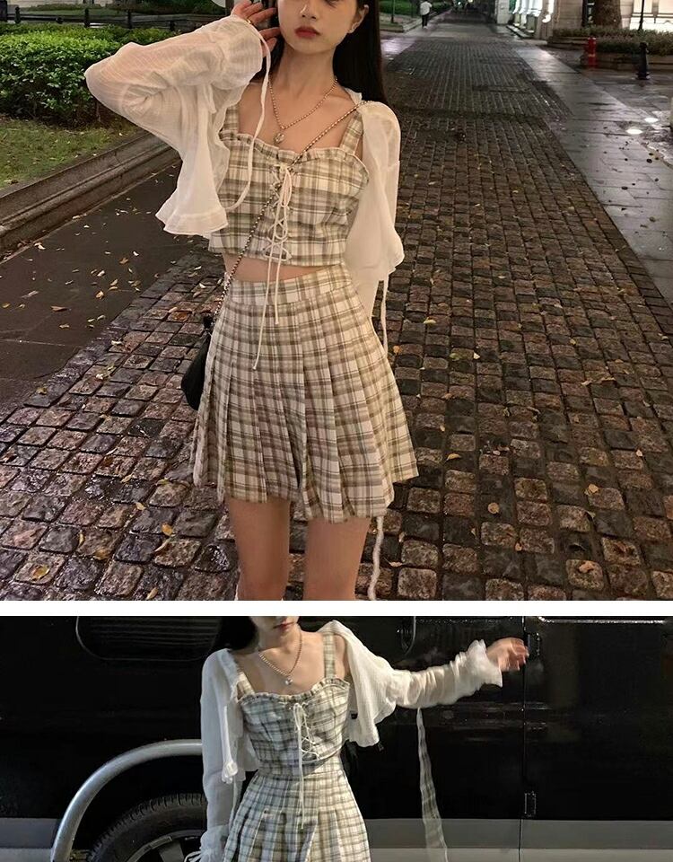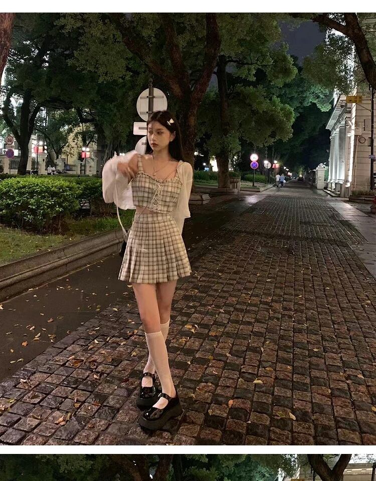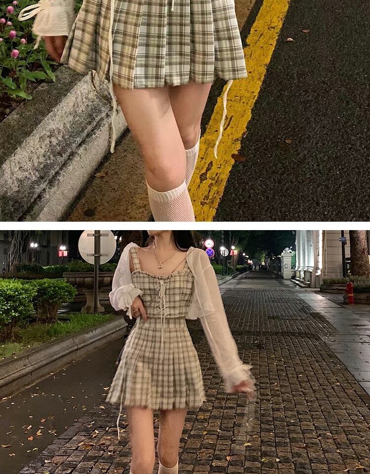 サマー薄手格子柄プリーツ 夏物 スカート 萌量不足1240442804