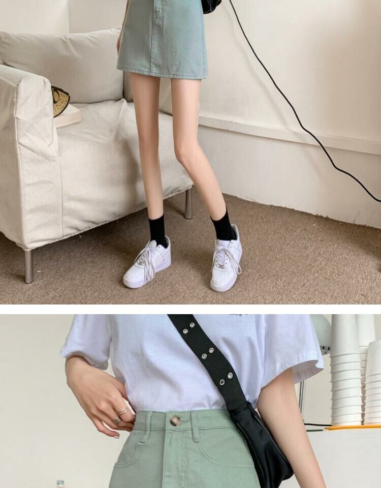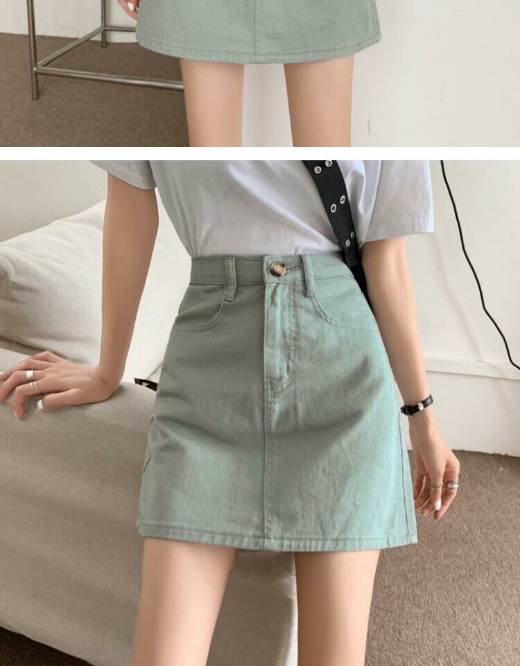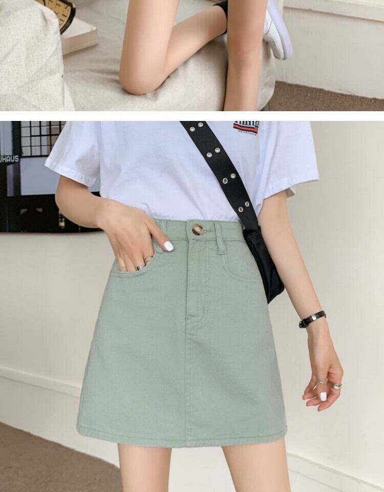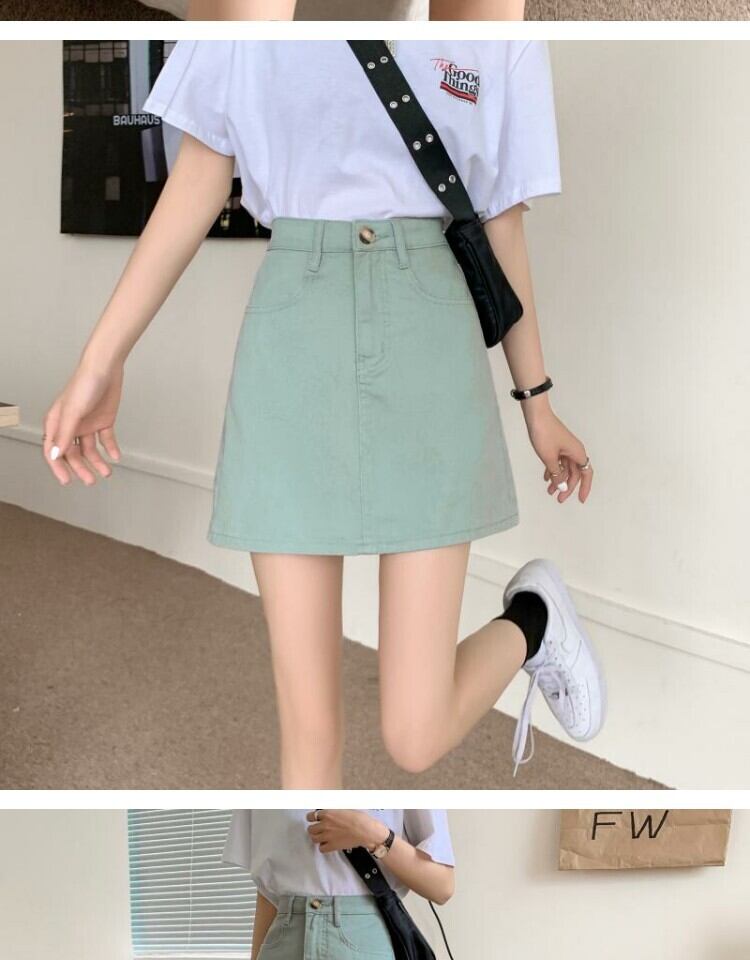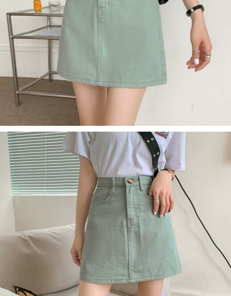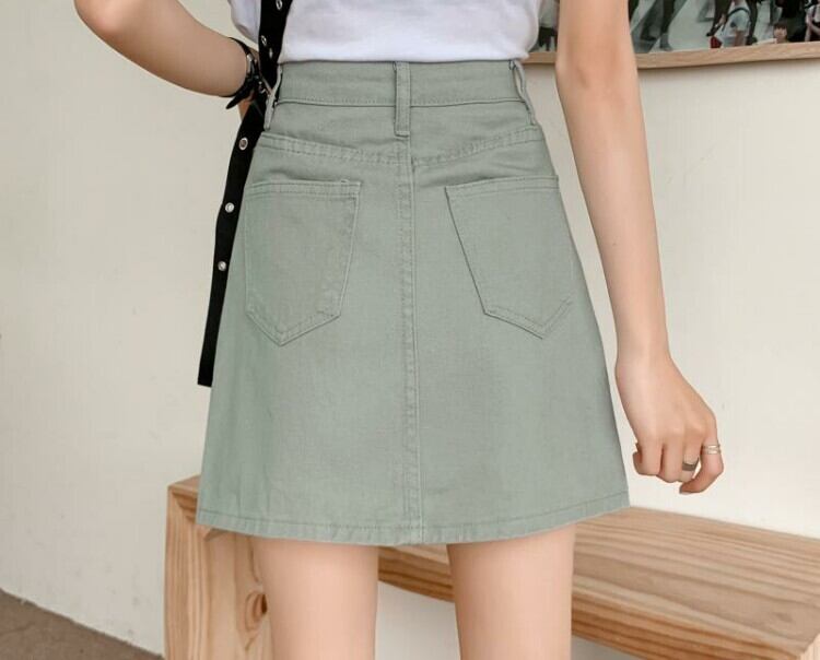 Aラインスカート サマールーズグリーンショートスタイルハイウェストウェスト薄手 夏物 萌量不足82848949659