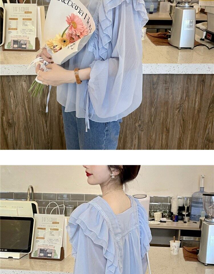 シフォンシャツ サマートップス ロング 大人ガーリー スウィート キュート カジュアル 夏物 萌量不足85148641850