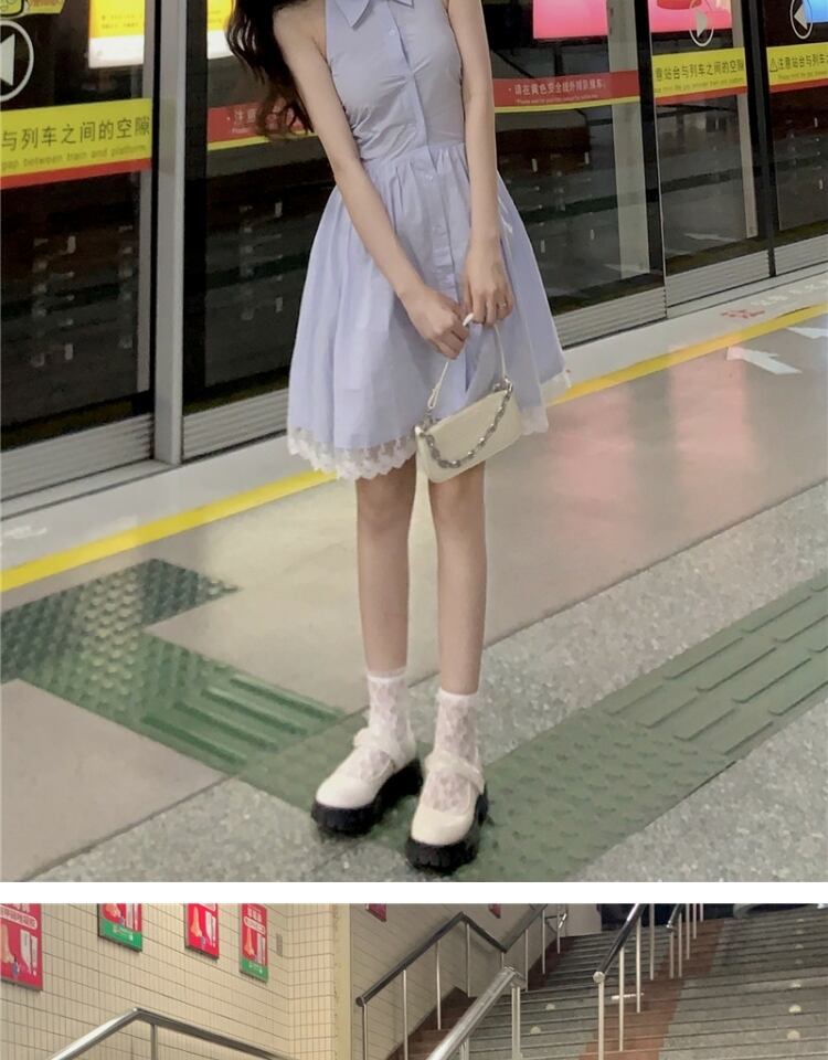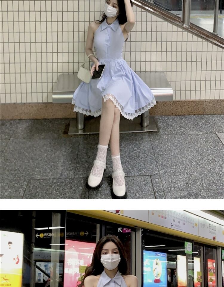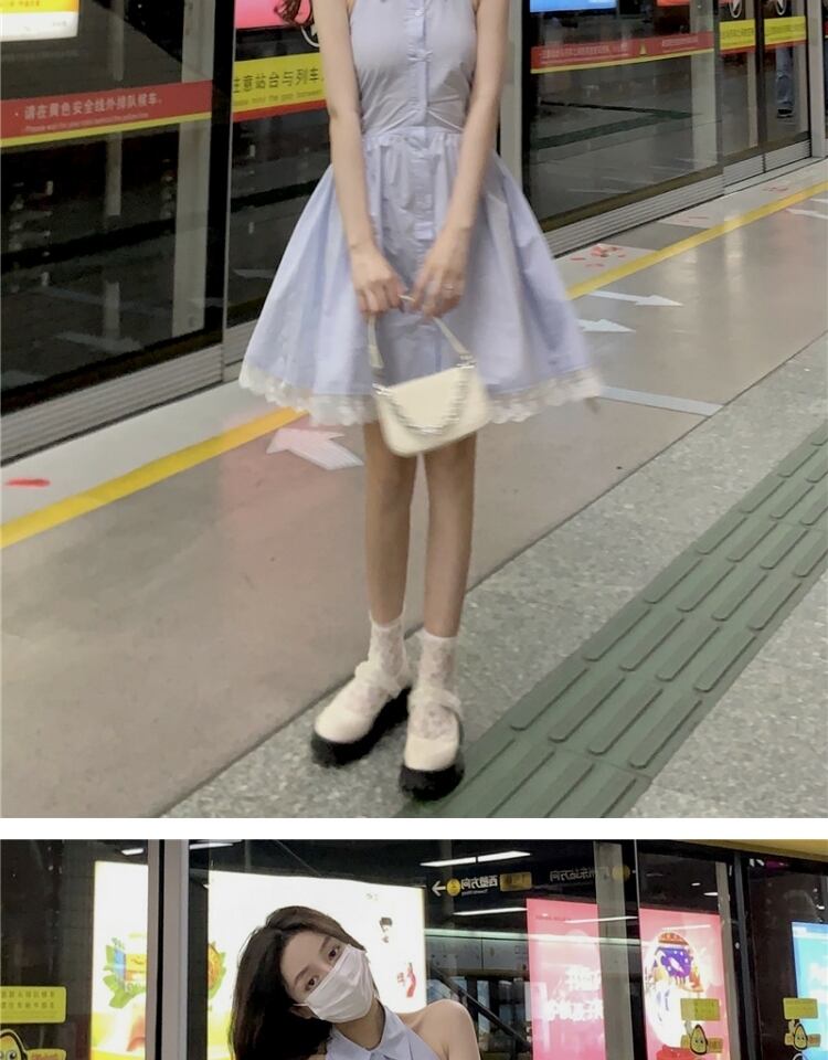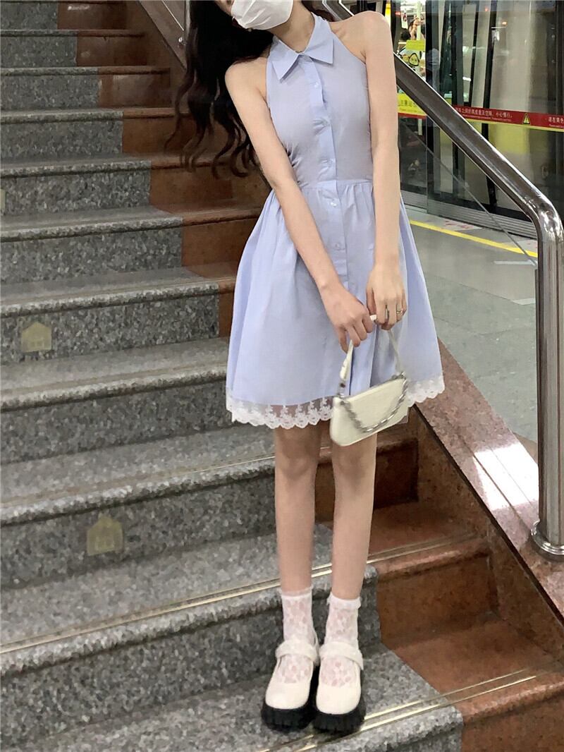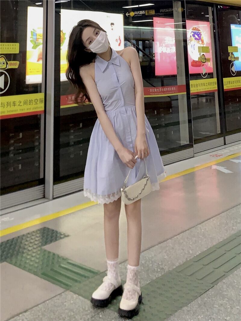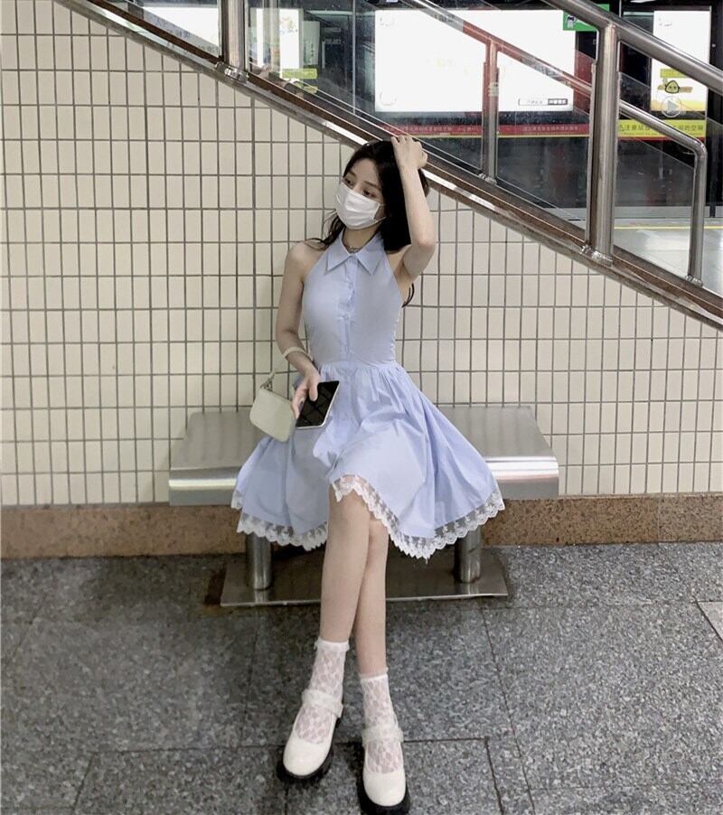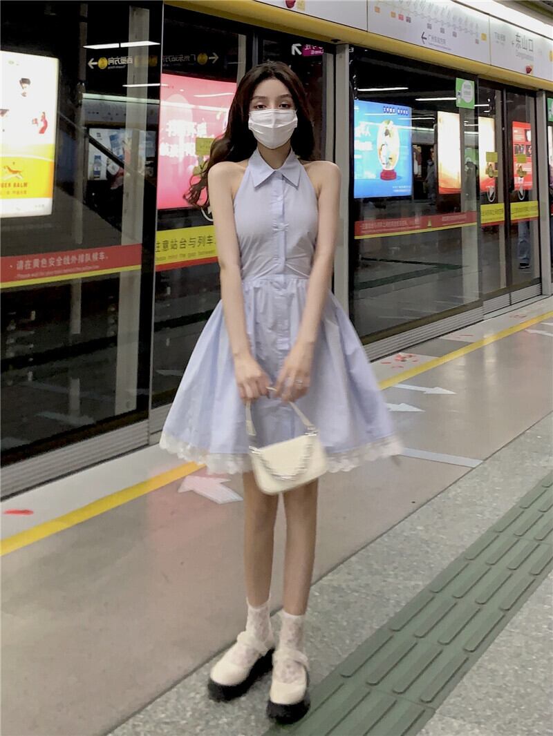 スタイルドレス サマーブルー薄手バックレススカート 大人ガーリー スウィート キュート カジュアル 夏物 萌量不足34880116944