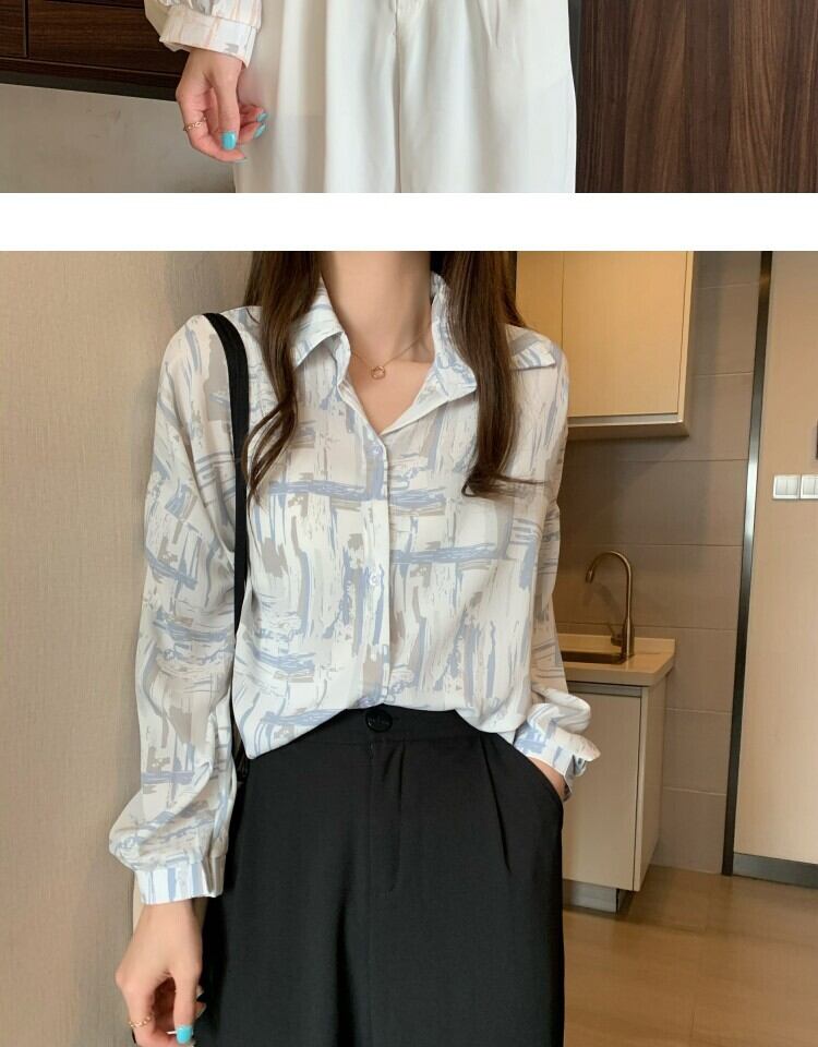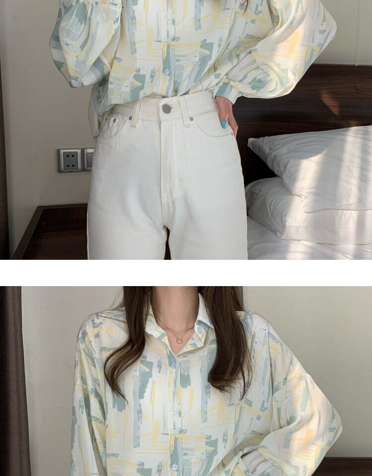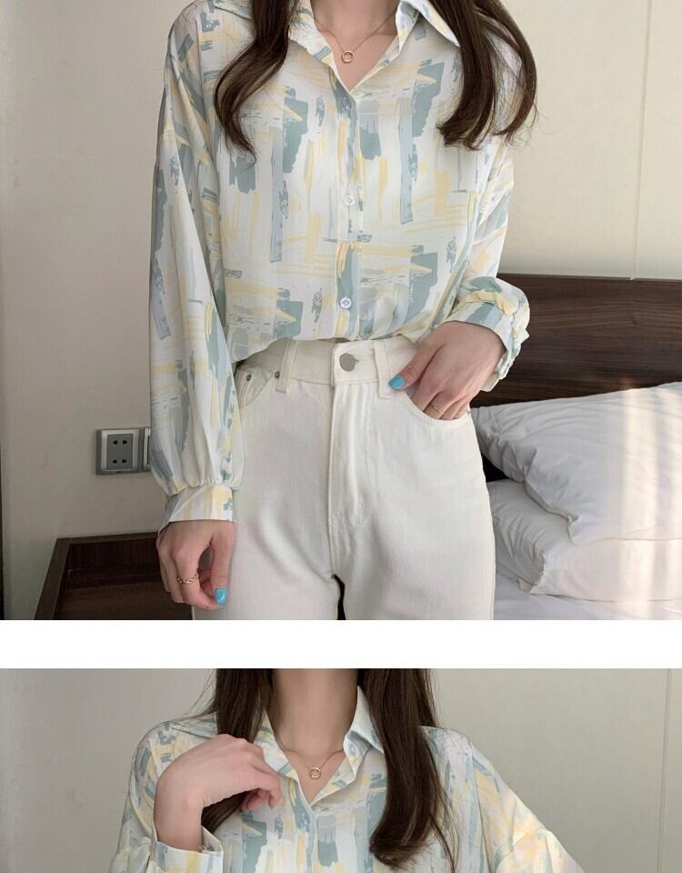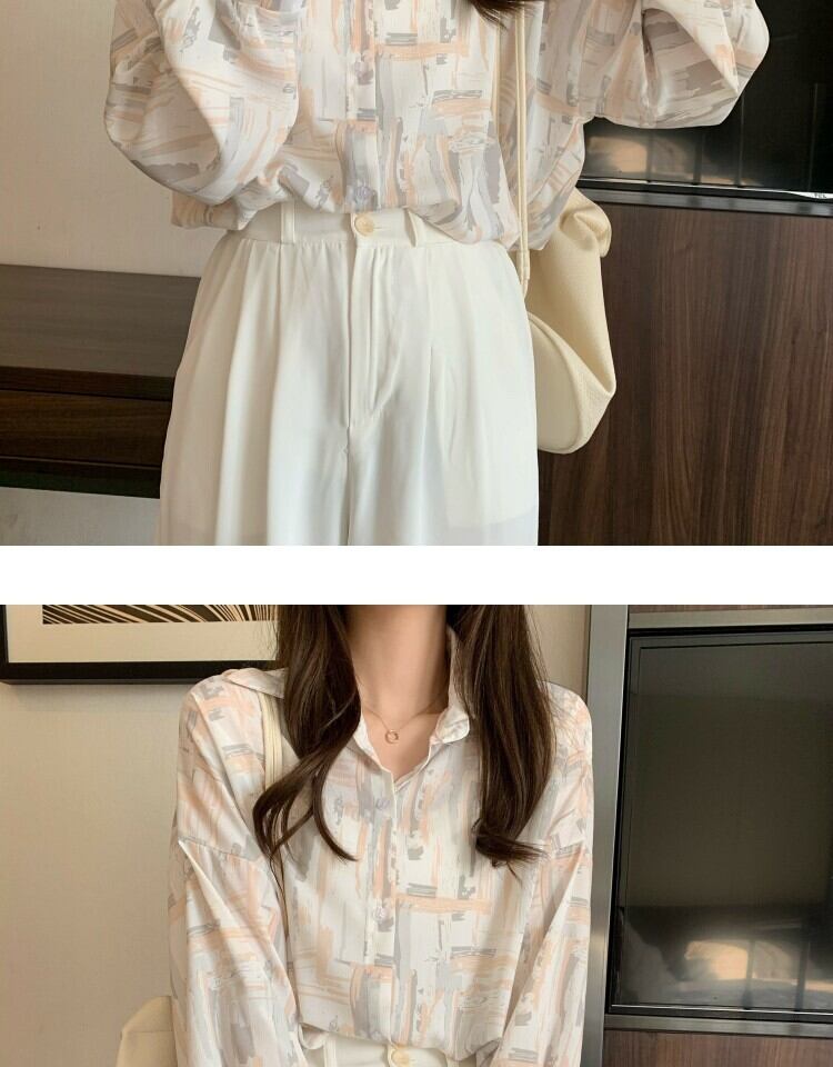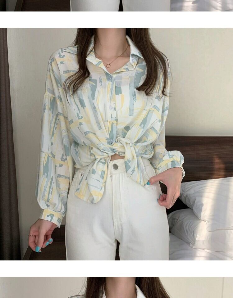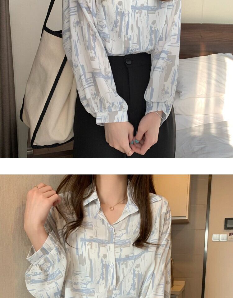 スタンダードルーズカジュアルプリント薄手シャツ レディーススタイルスプリングオータム ロング レトロ 春物 秋物 萌量不足98294371778
