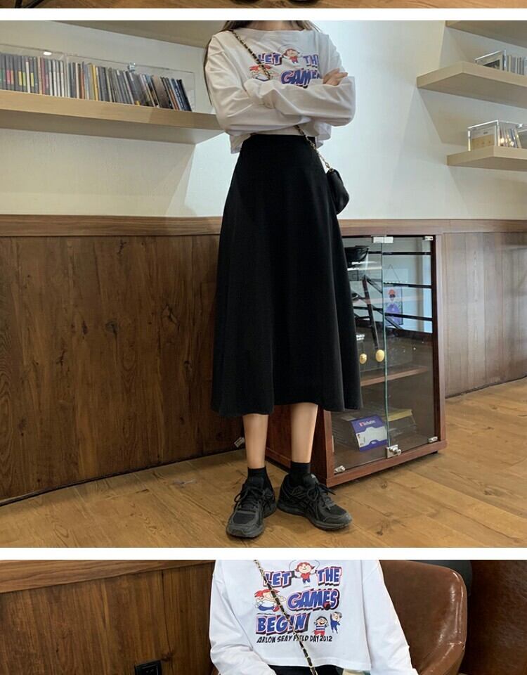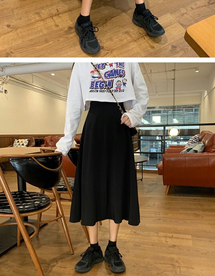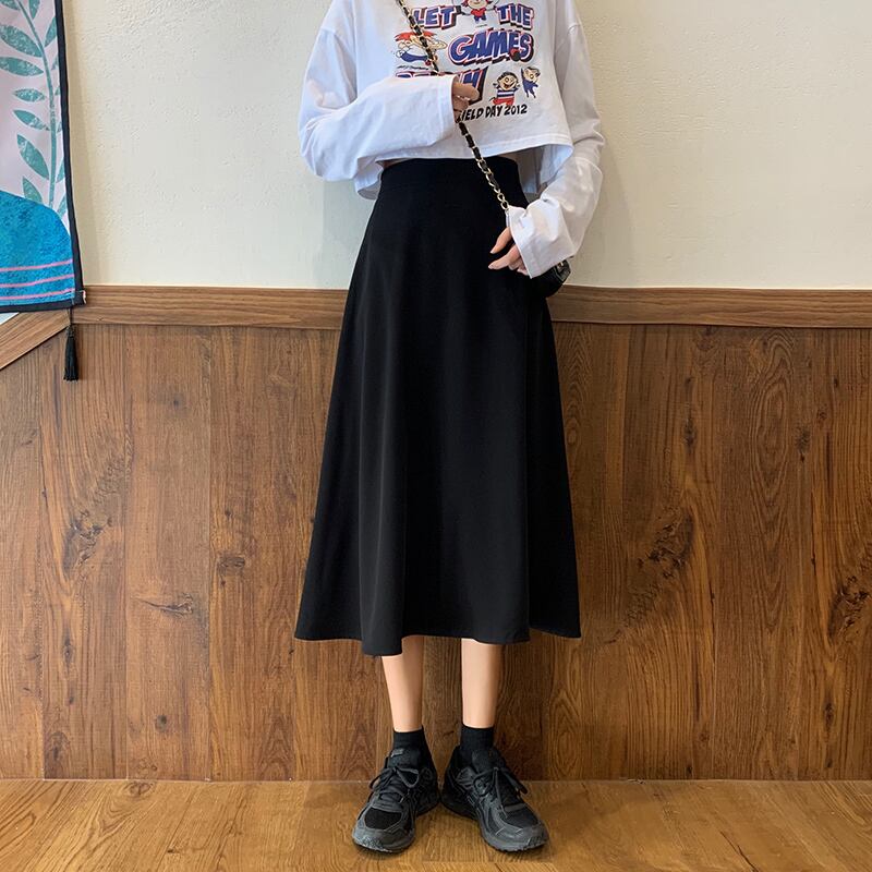 スカート オータムスタイルハイウェストウェストスリムソリッド カラーAライン 秋物 ソリッドカラー 萌量不足76575875600