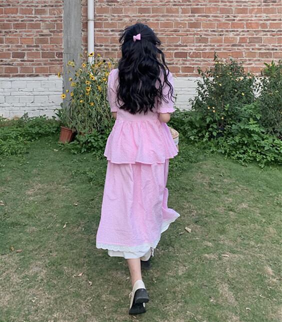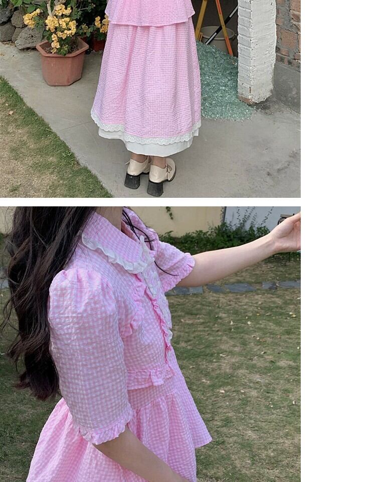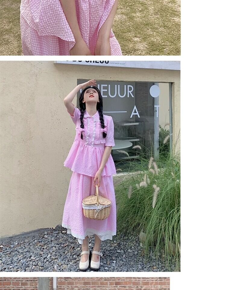 格子柄カラーサマーシャツ スカート ピンク 大人ガーリー スウィート キュート カジュアル 夏物 萌量不足66097393218