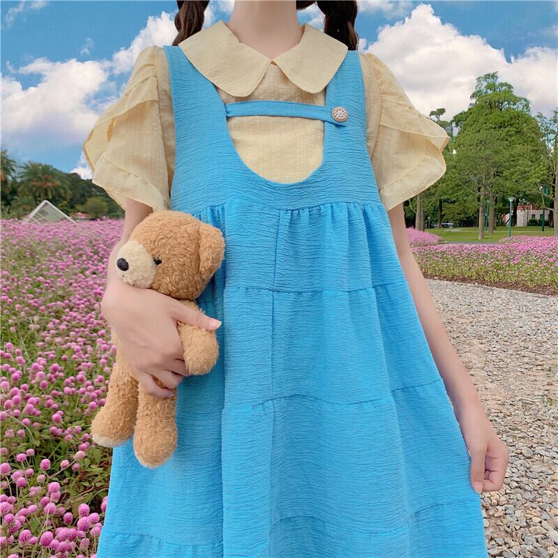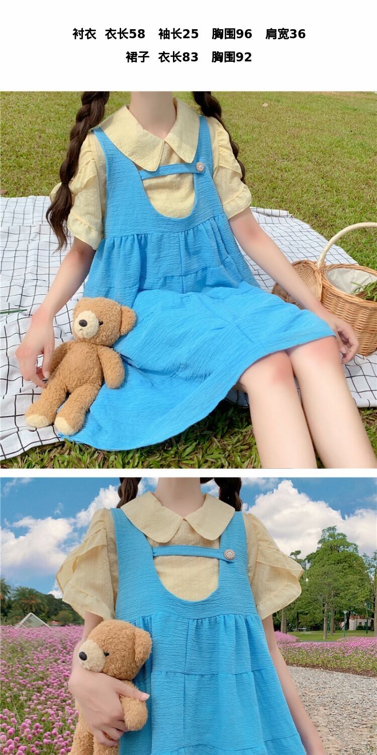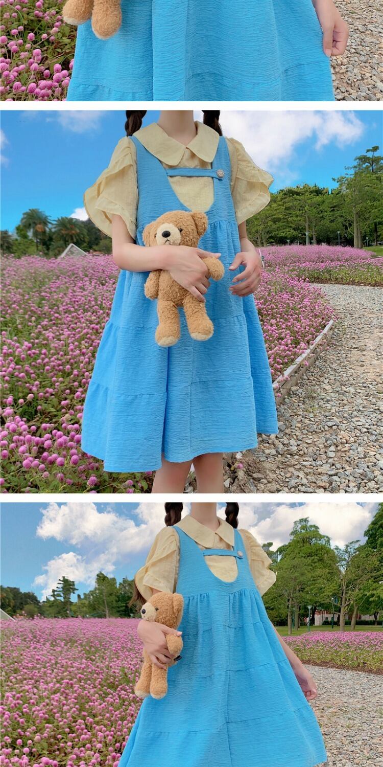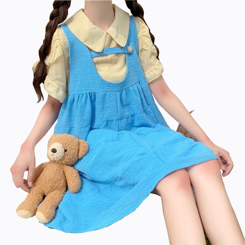 色:ワンピースアプリコットシャツ,青いスカートワンピース