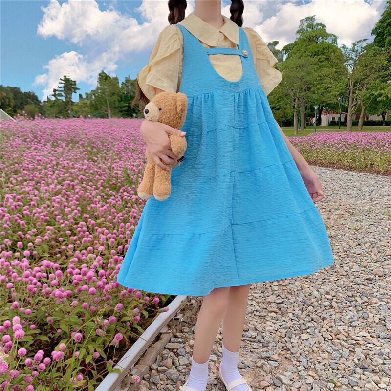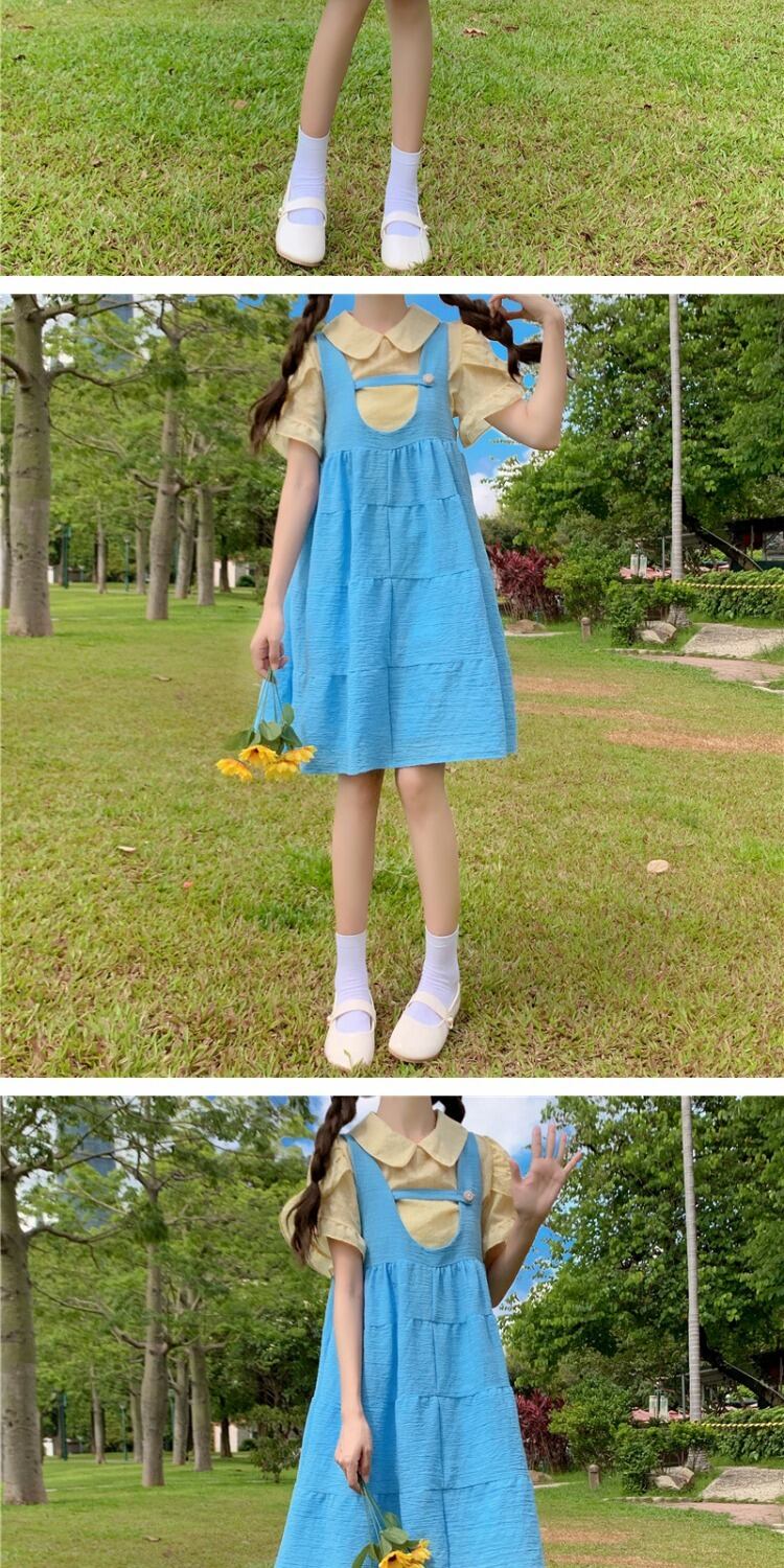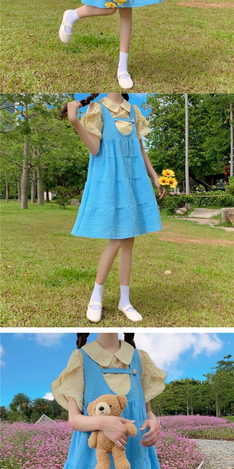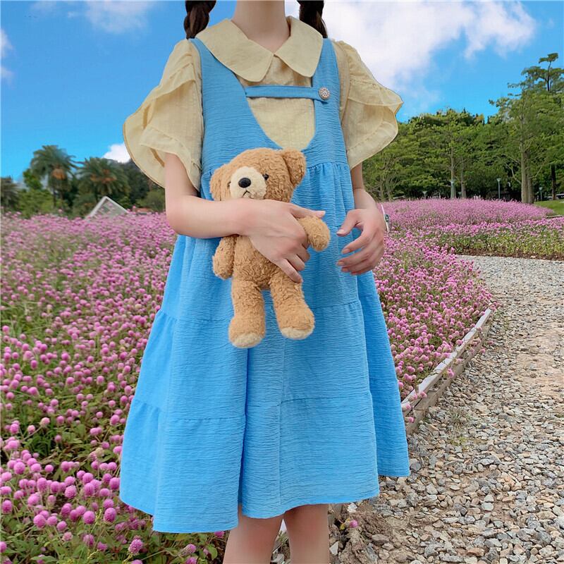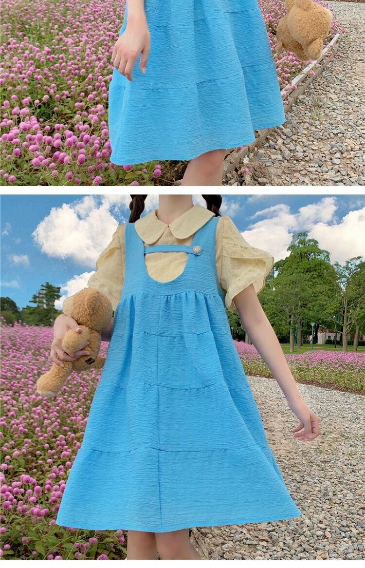 色:ワンピースアプリコットシャツ,青いスカートワンピース