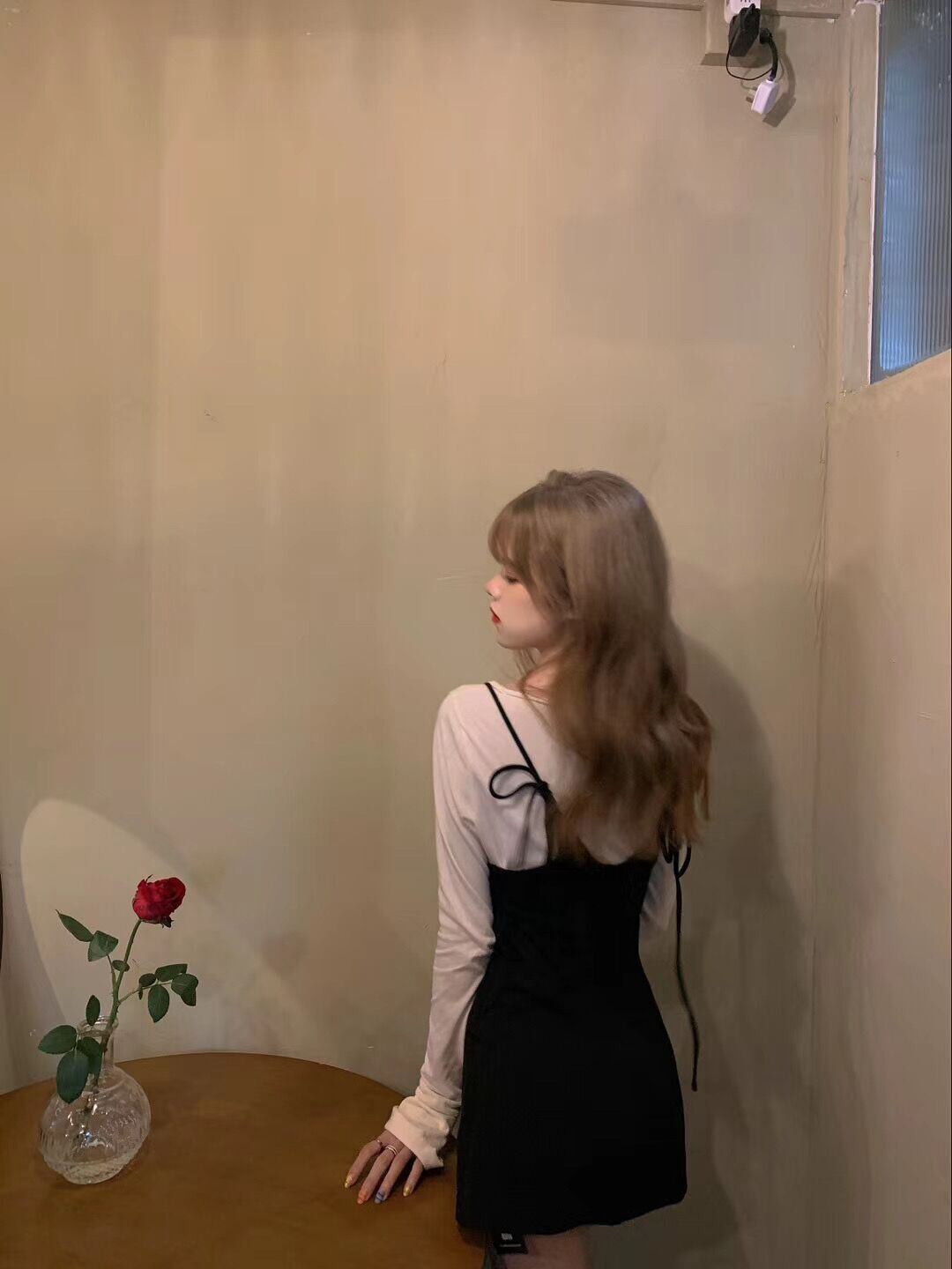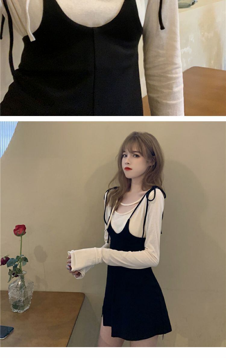 ブラックVネックドレス スプリングオータムスカート ロング 春物 秋物 萌量不足66027173659