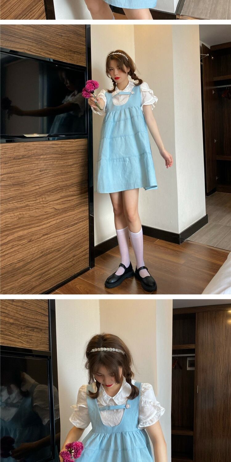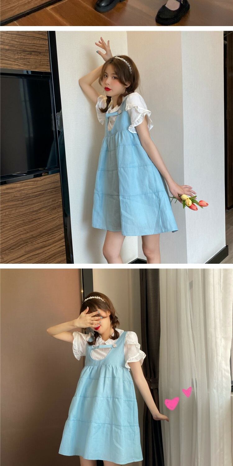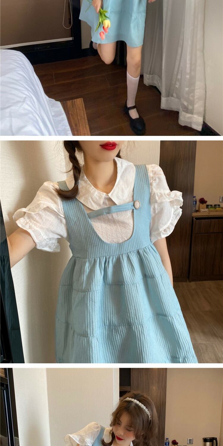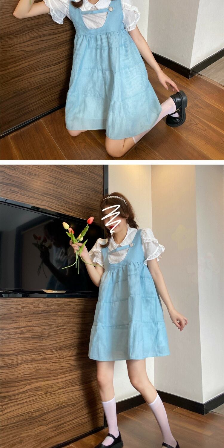色:ベビーブルーのドレス(単品),クリーミーな白シャツ(一枚)