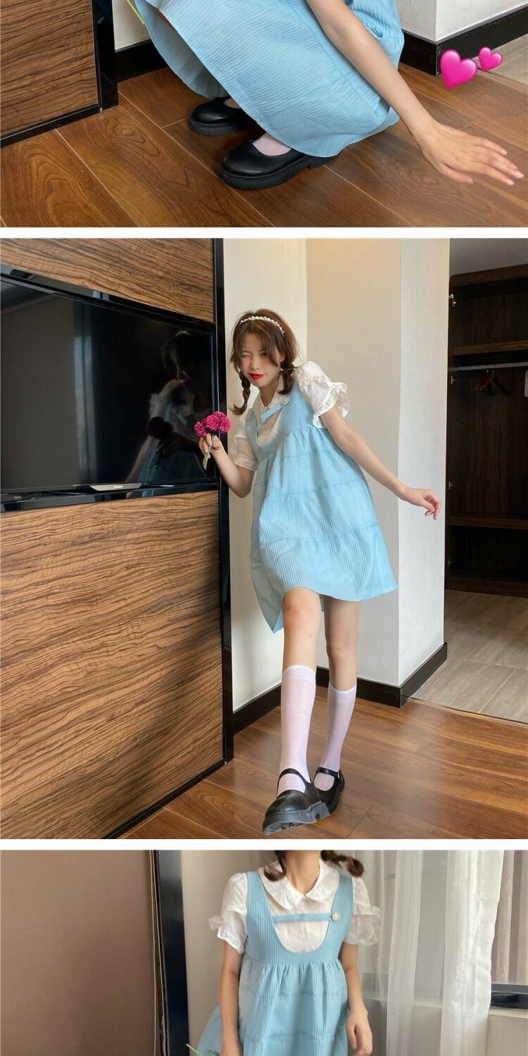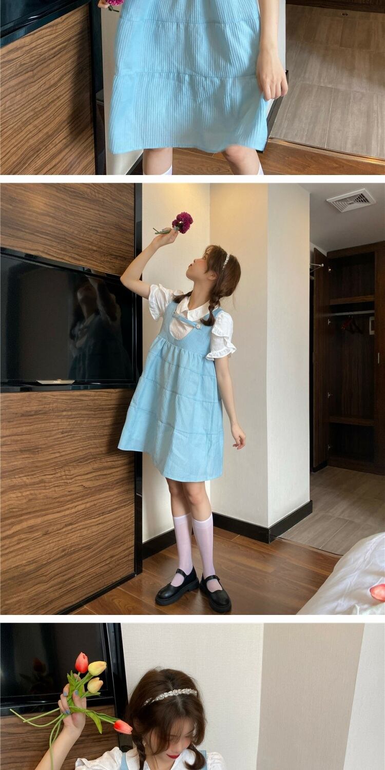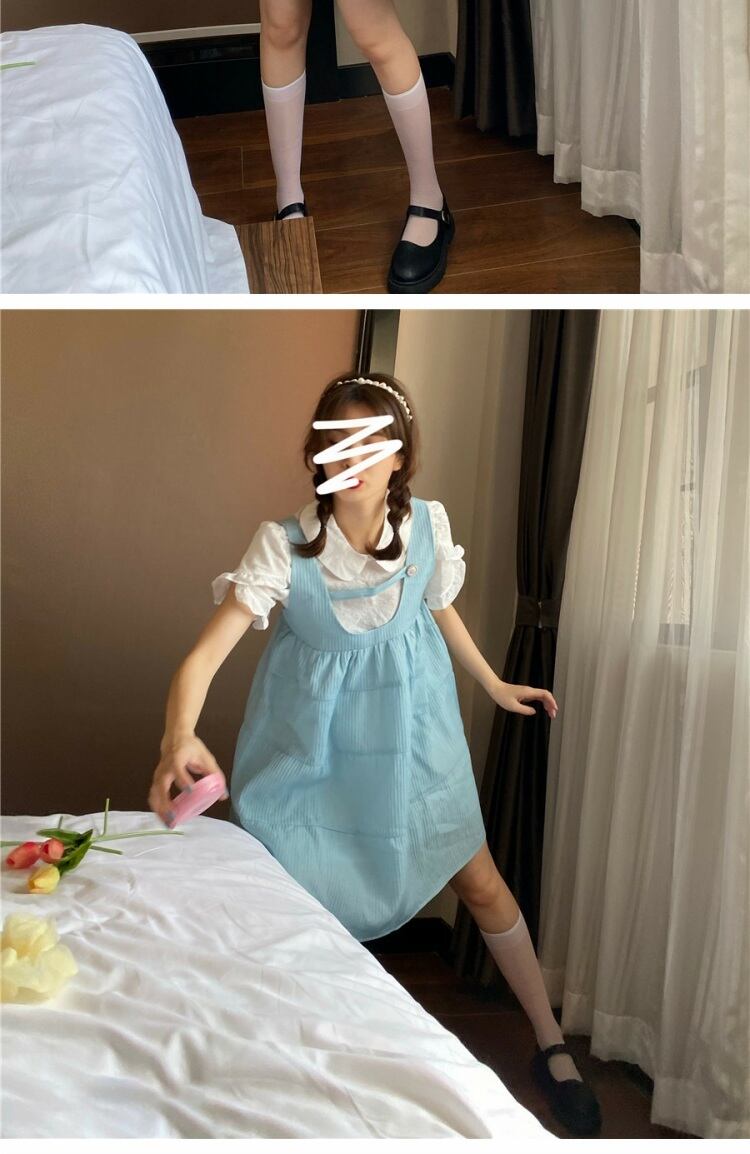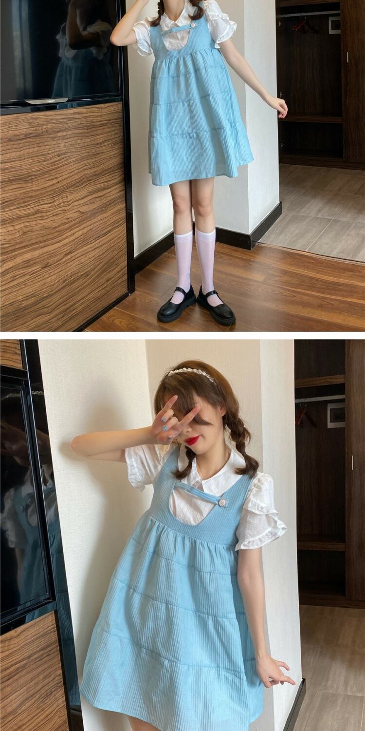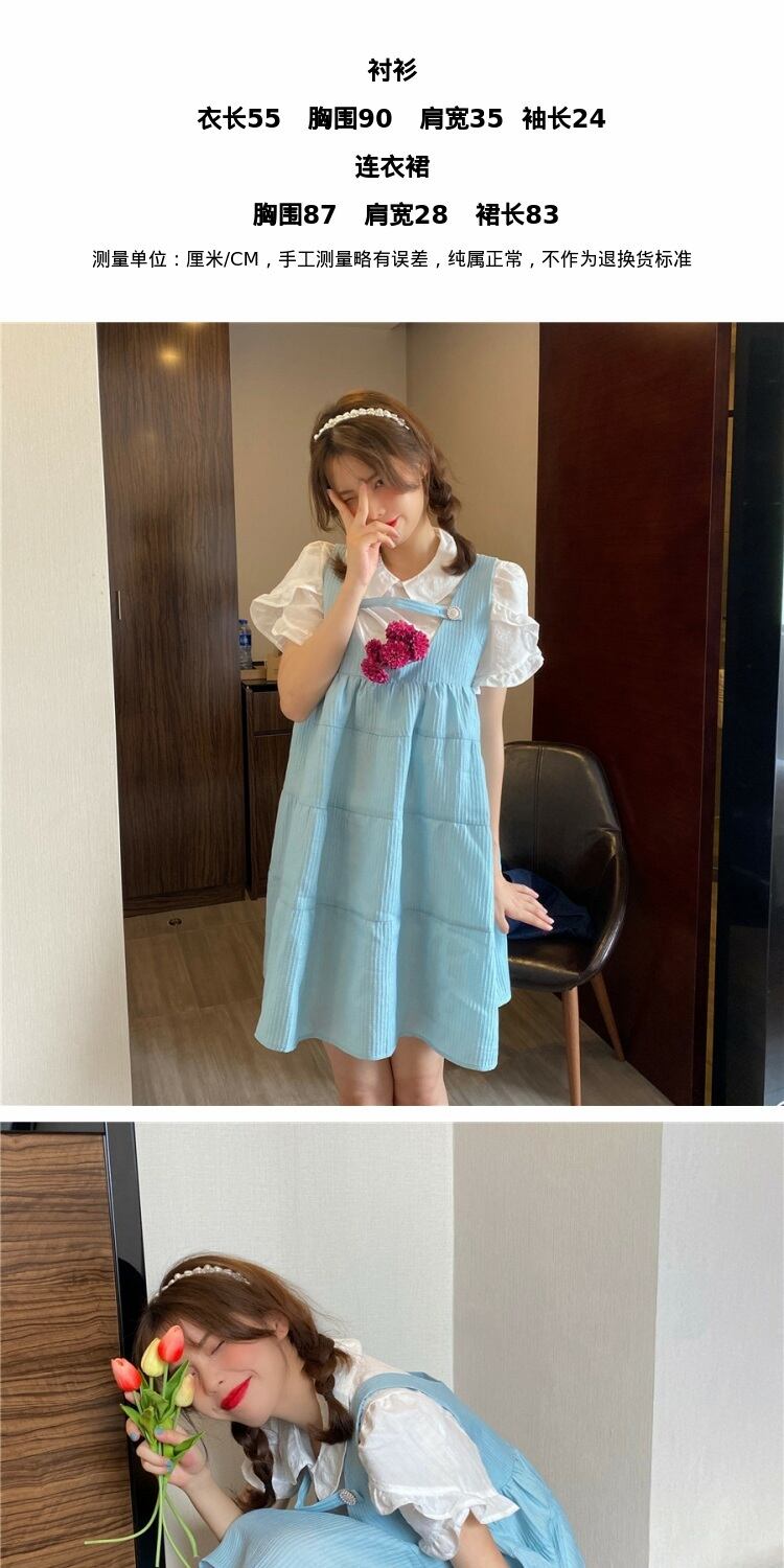 色:ベビーブルーのドレス(単品),クリーミーな白シャツ(一枚)