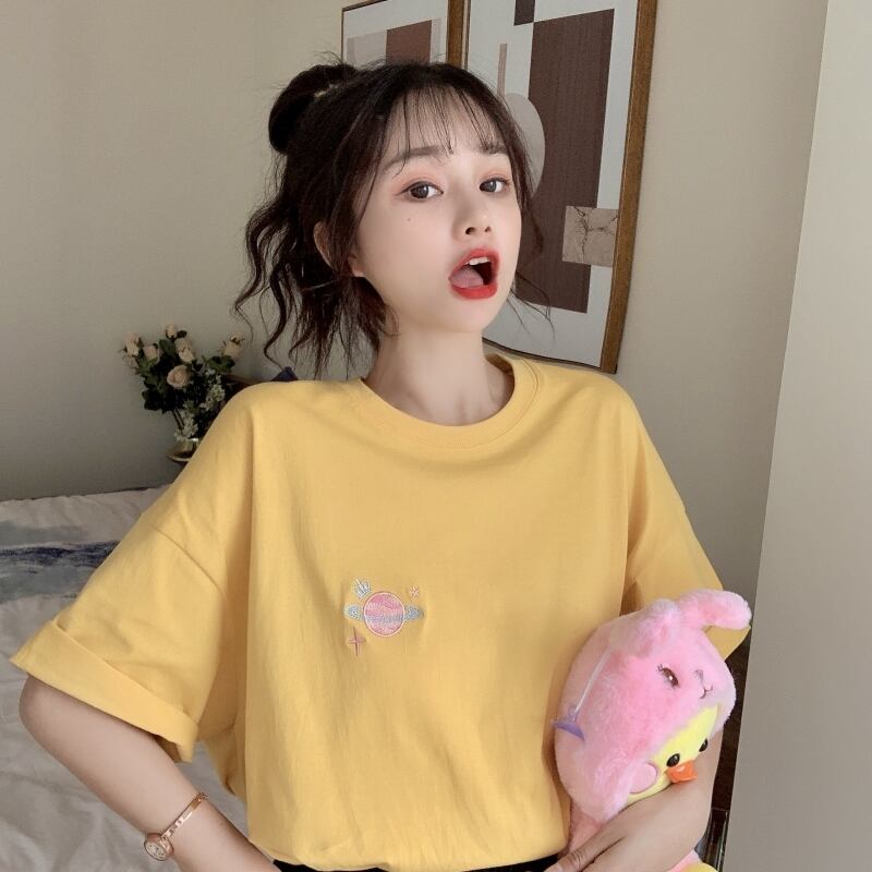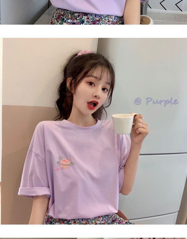 刺繍Tシャツ サマールーズトップス 大人ガーリー スウィート キュート カジュアル 夏物 萌量不足3338548157