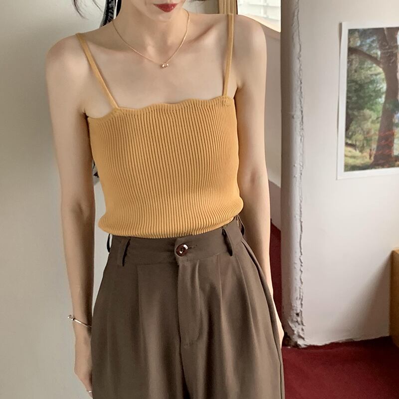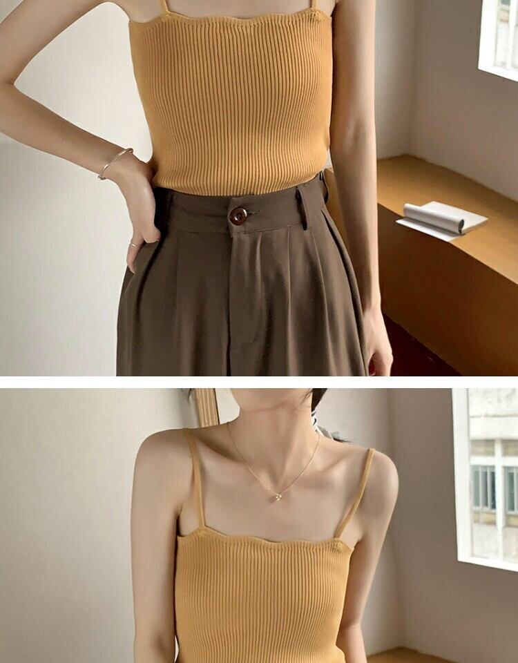 スタンダードニットノースリーブスリムクロップトップ トップス レトロ 萌量不足25790090408
