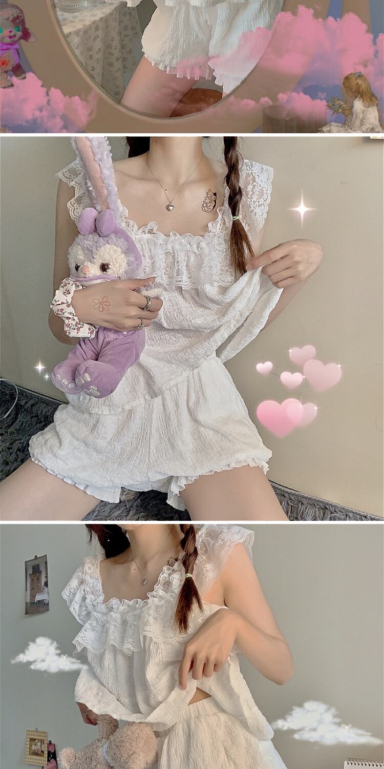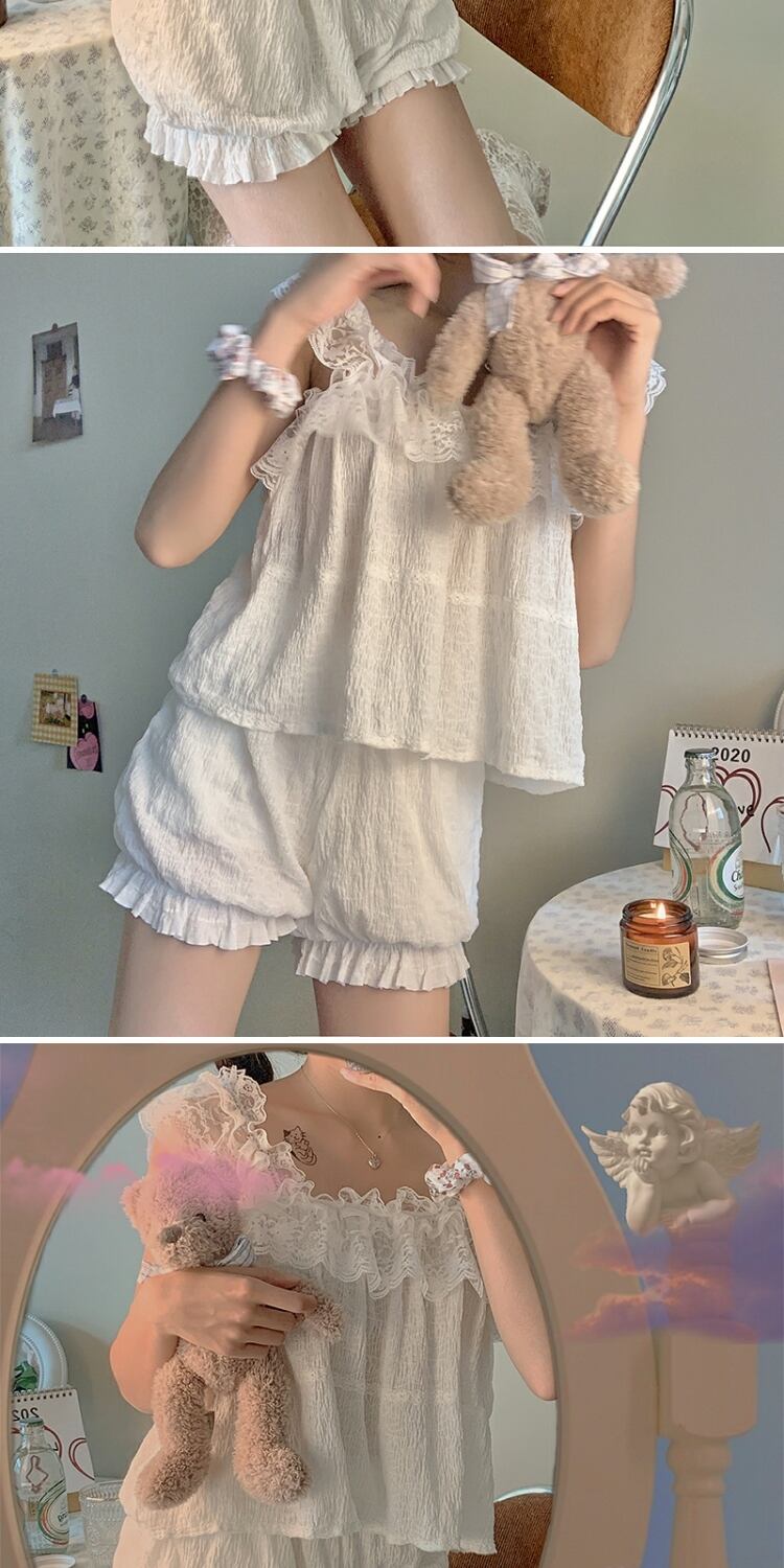 レディースサマーレーストップス ストレッチウェストショーツ エラスティック 伸縮 大人ガーリー スウィート キュート カジュアル 夏物 ブルマー 萌量不足61168782563