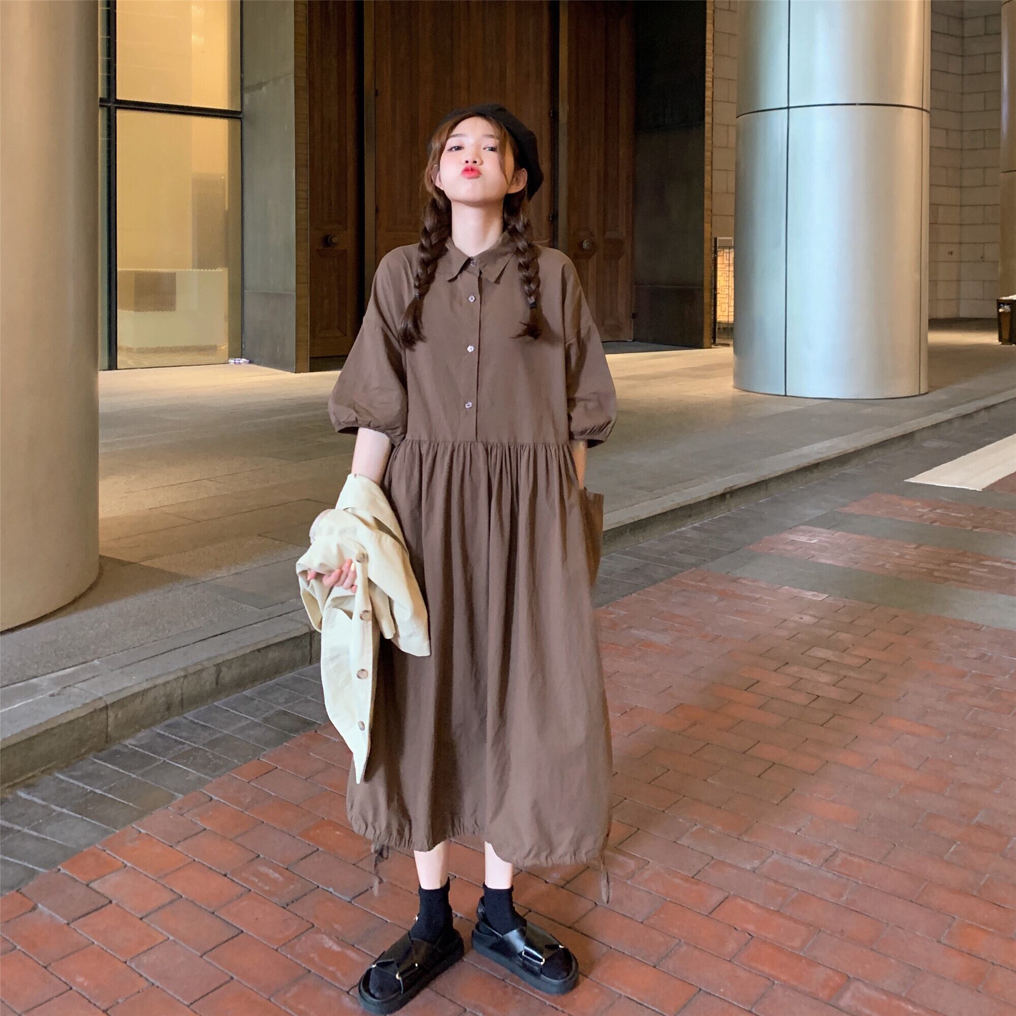 スカート サマーカラースリーブギャザーシャツ スタイルドレス 夏物 萌量不足1969711200