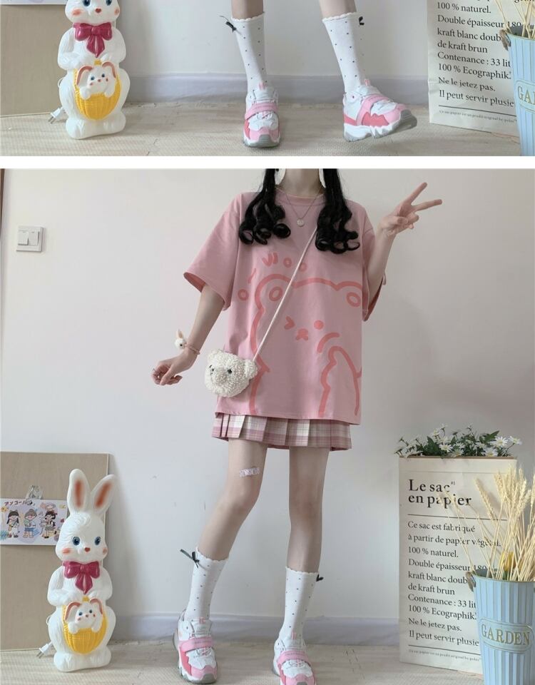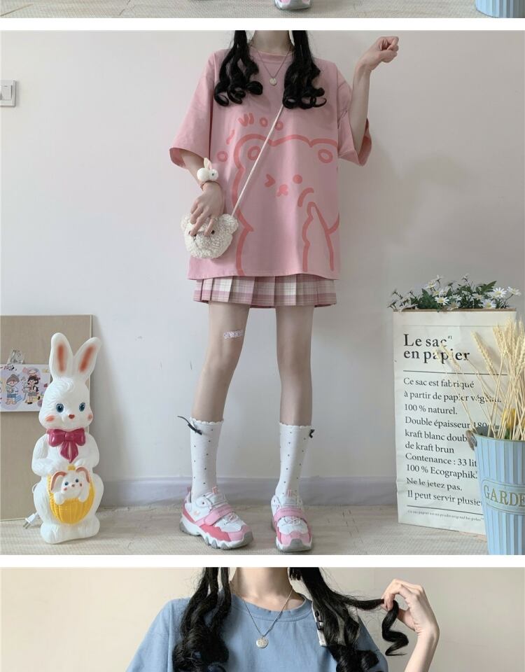 スタイルプリント柄Tシャツ サマー薄手ルーズトップス 大人ガーリー スウィート キュート カジュアル 夏物 萌量不足8159345583