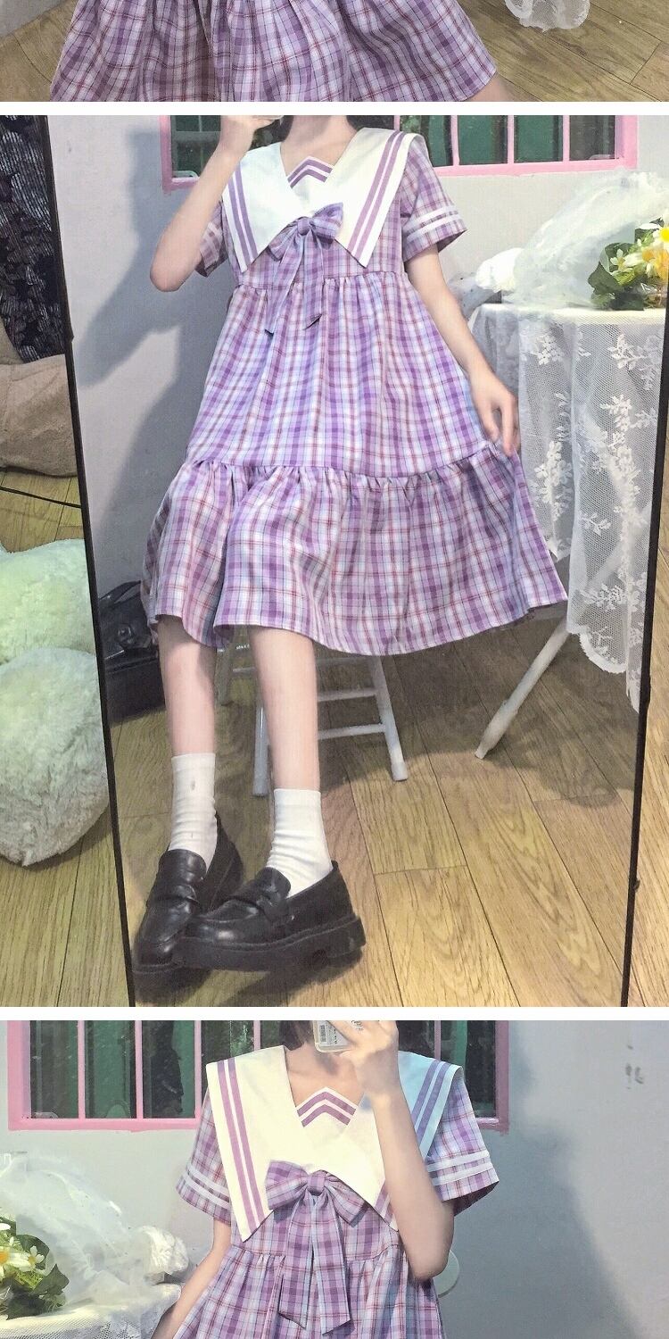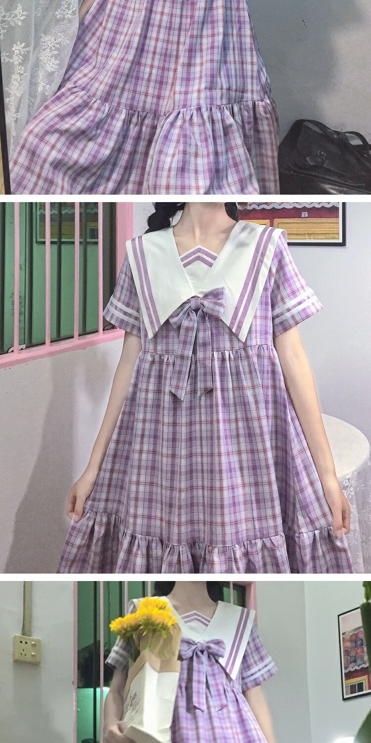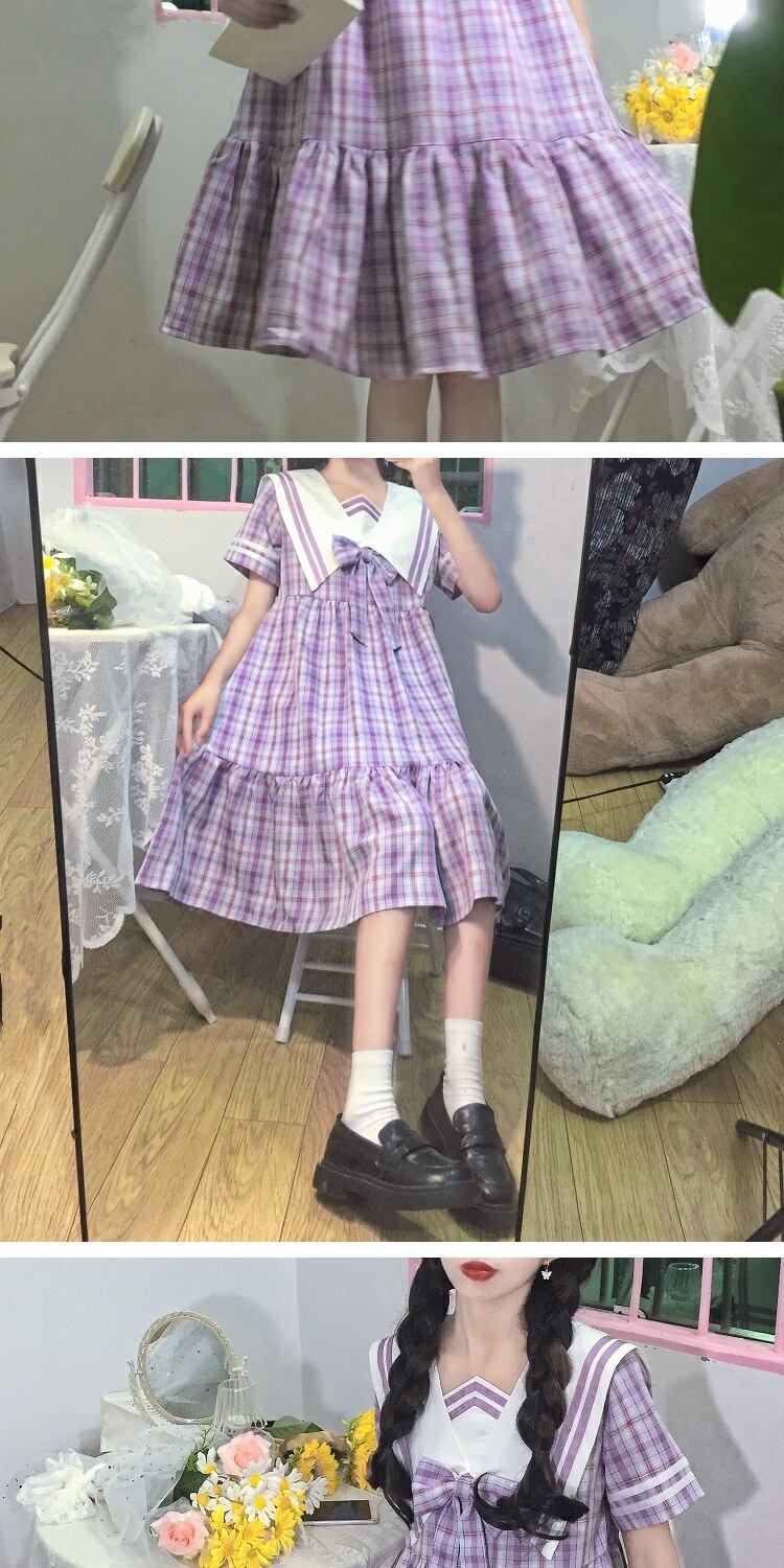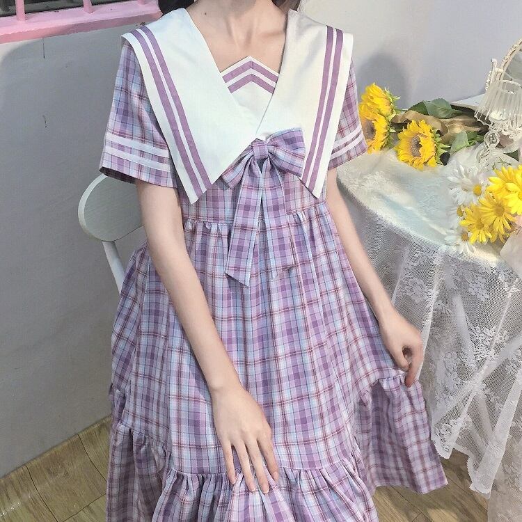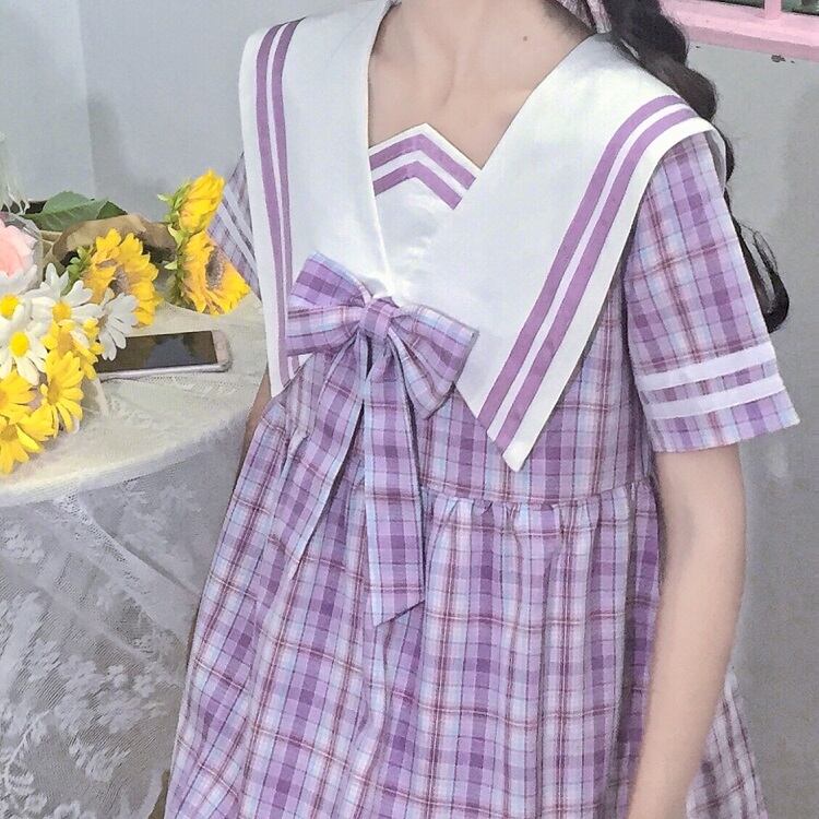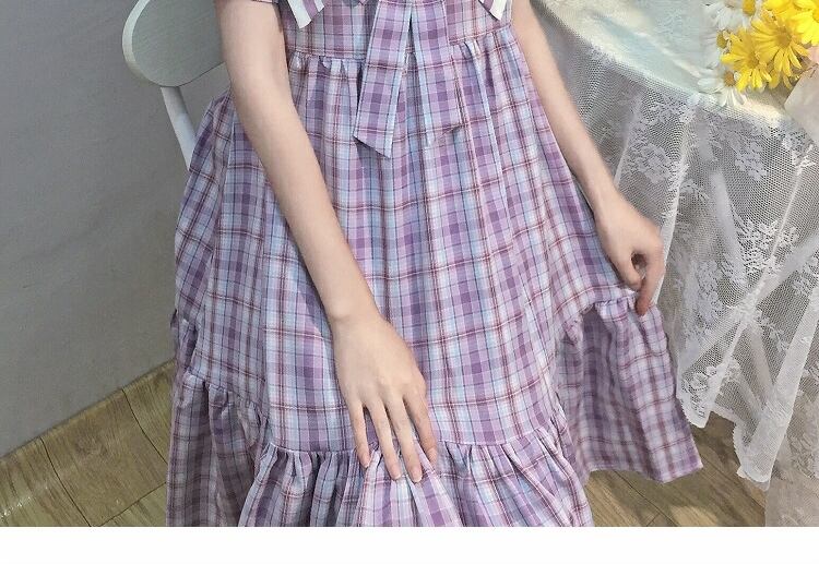 スカート スプリングルーズ格子柄薄手リボンドレス 春物 萌量不足53797704402