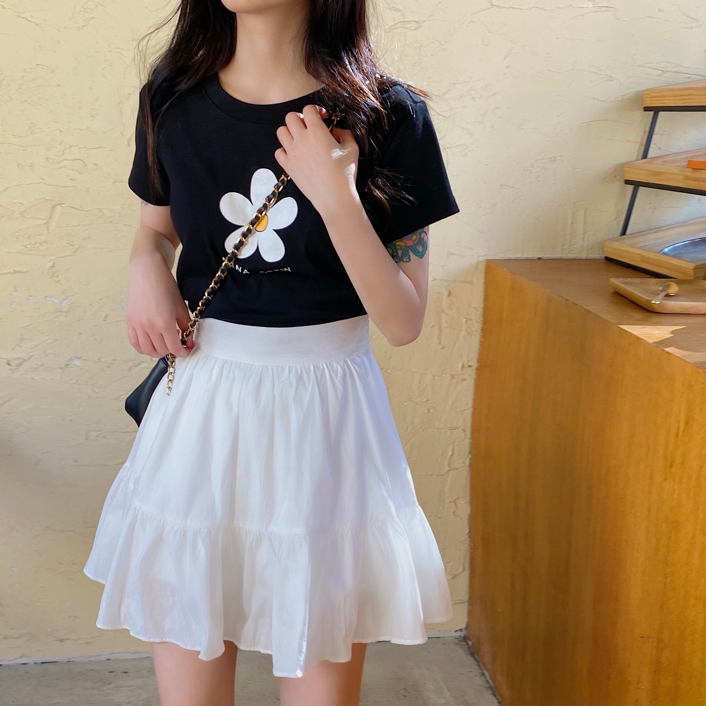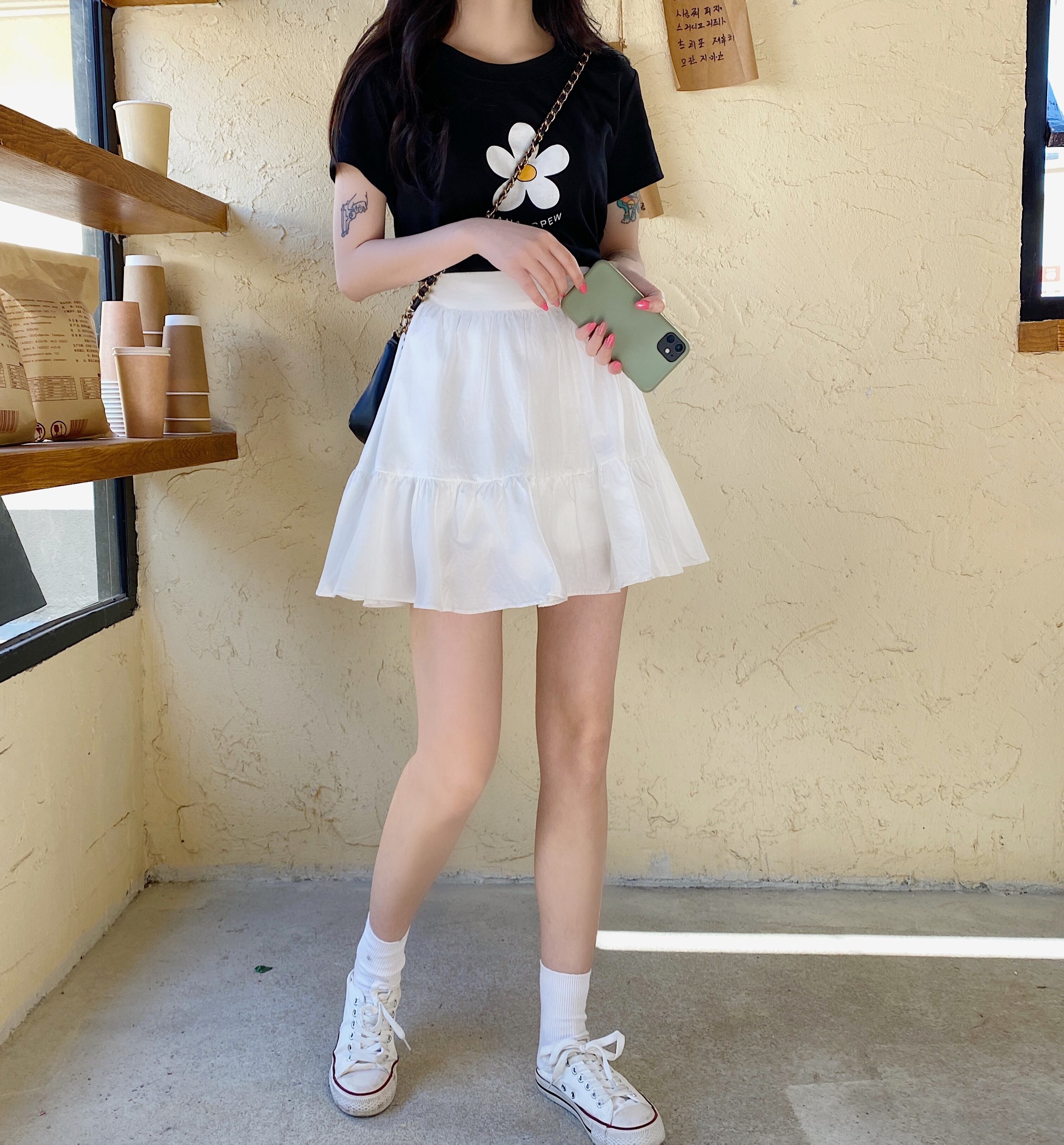 スカート サマーホワイトハイウェストウェストショートAライン 大人ガーリー スウィート キュート カジュアル 夏物 萌量不足96549326296