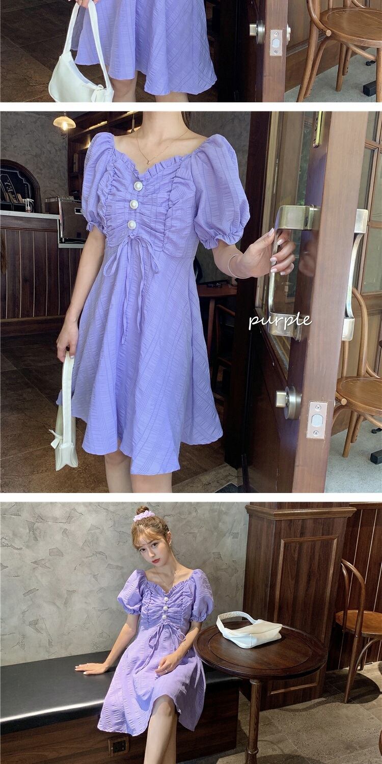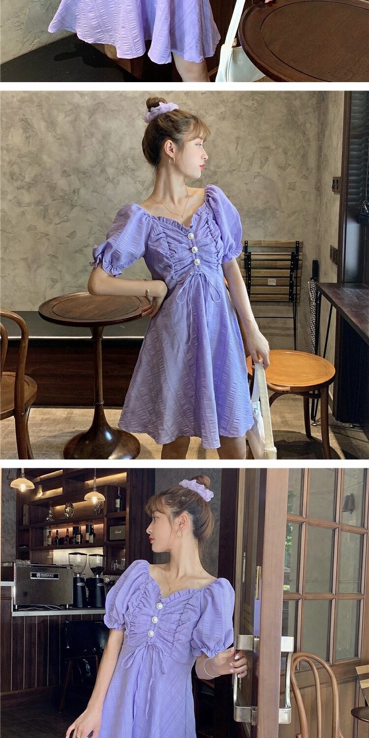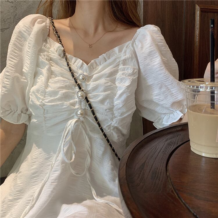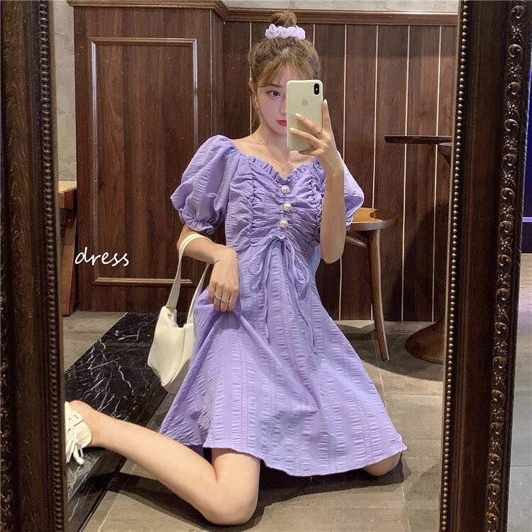スタンダードウェストドレス サマースタイルプリーツスリーブスカート レトロ 夏物 萌量不足80062903192