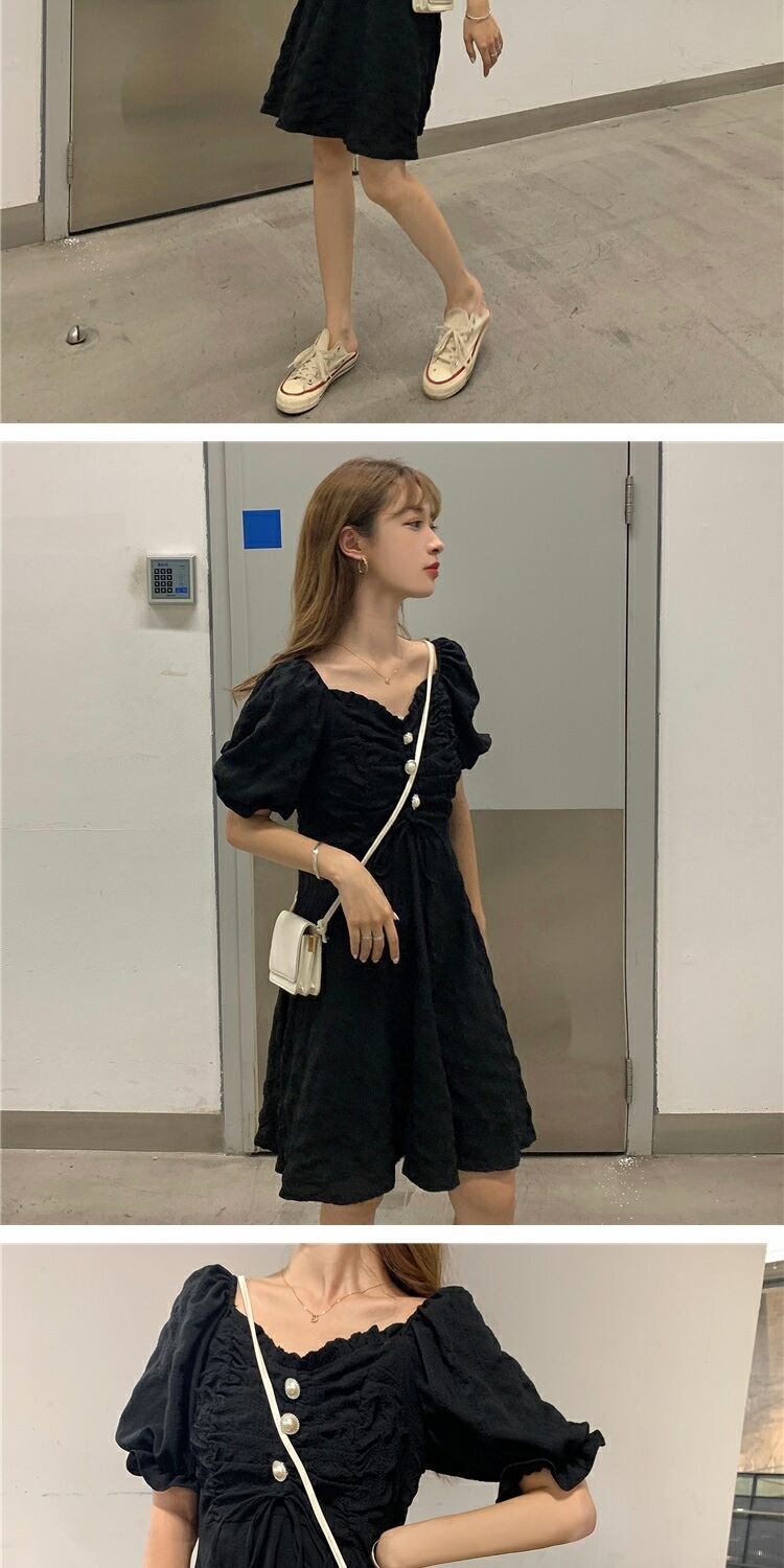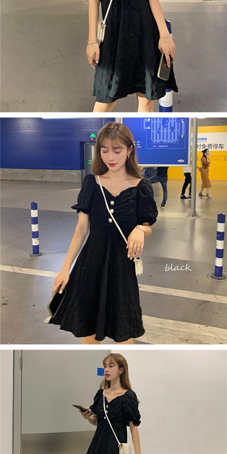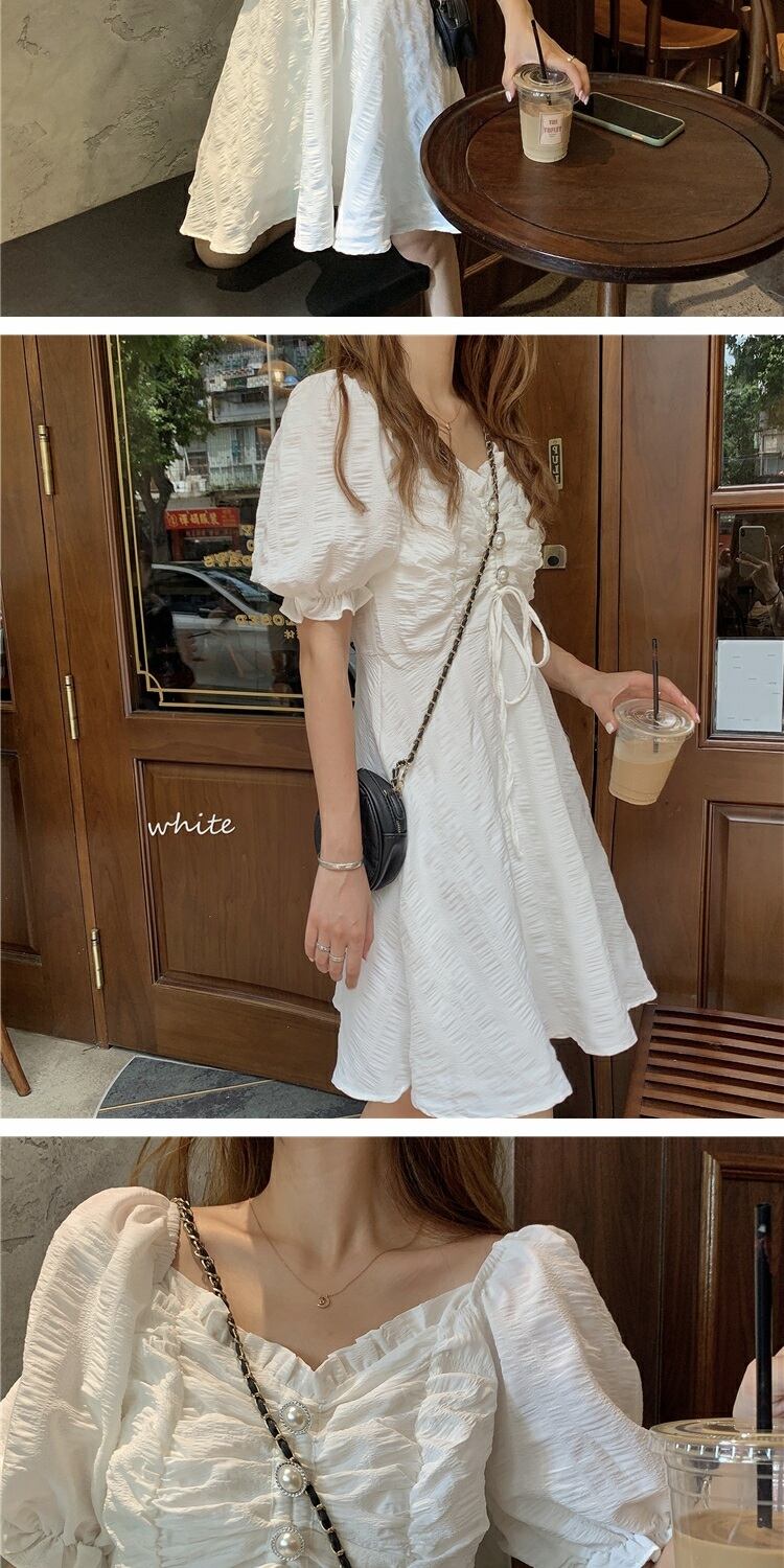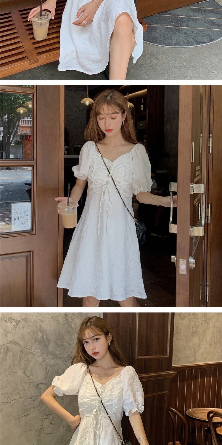 スタンダードウェストドレス サマースタイルプリーツスリーブスカート レトロ 夏物 萌量不足80062903192