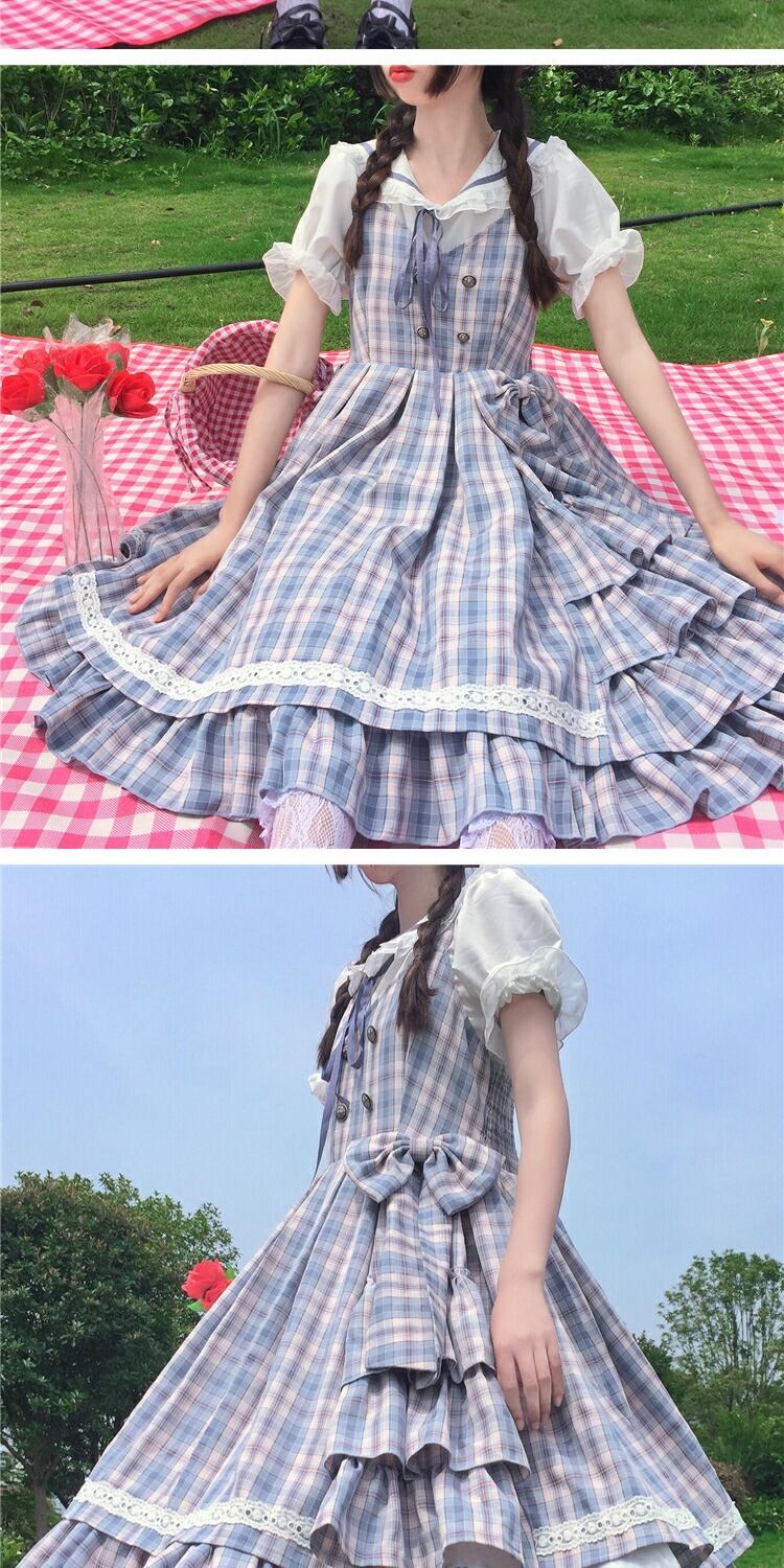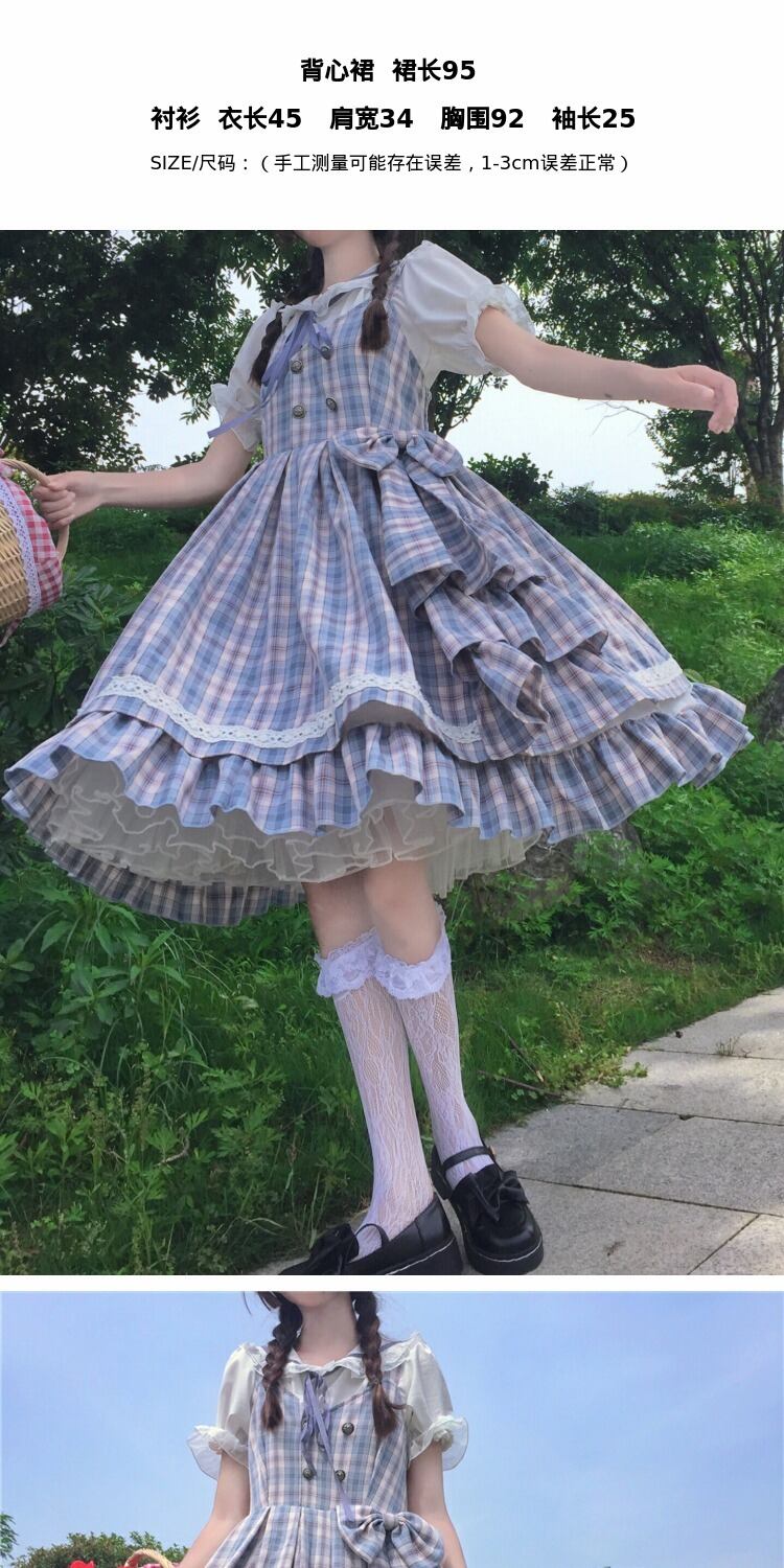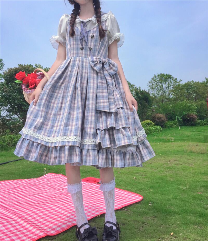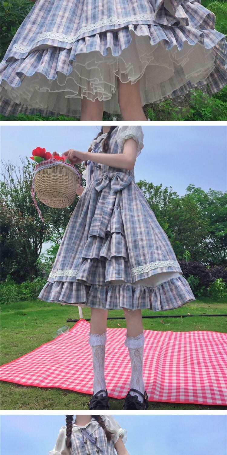 ドレス サマー格子柄ルーズスカート リボンノースリーブ 夏物 萌量不足11382050238