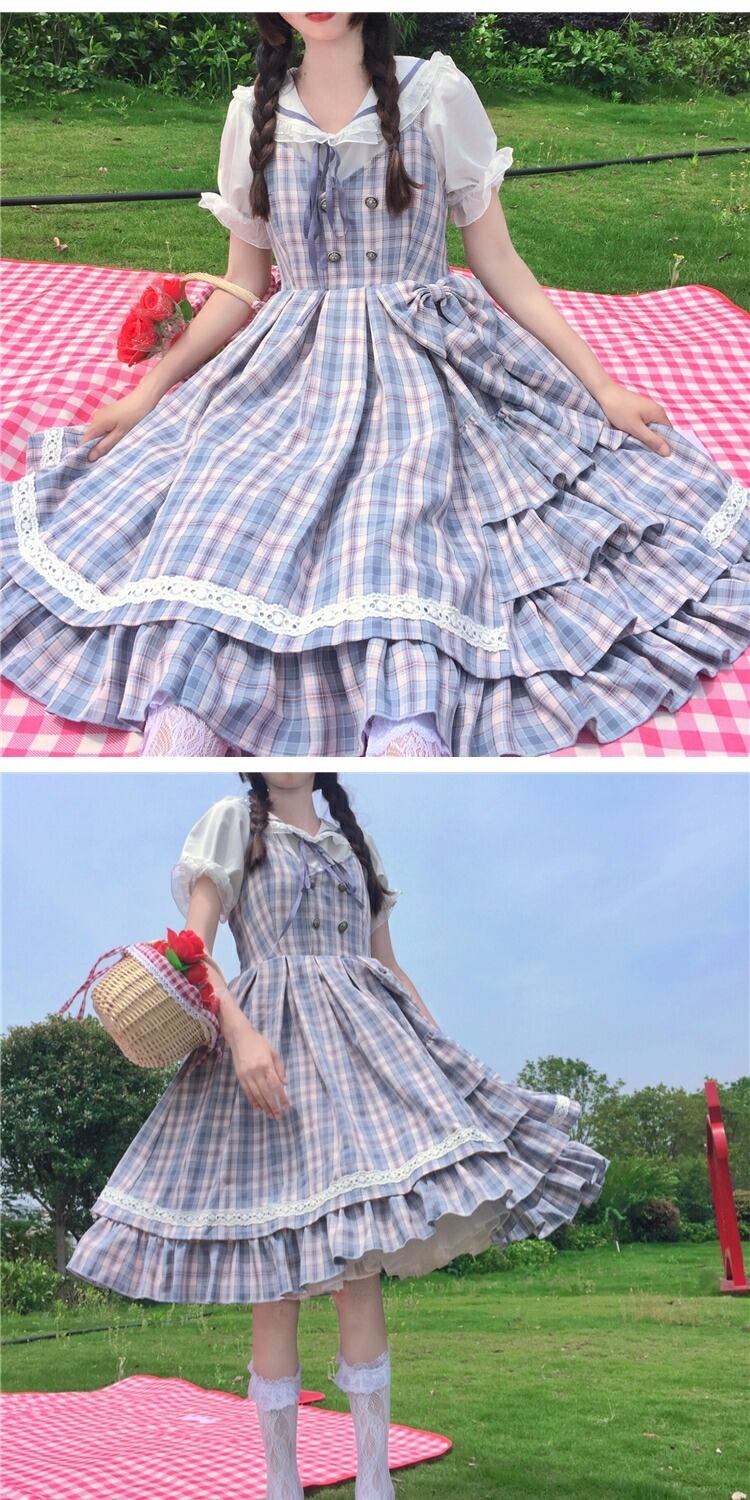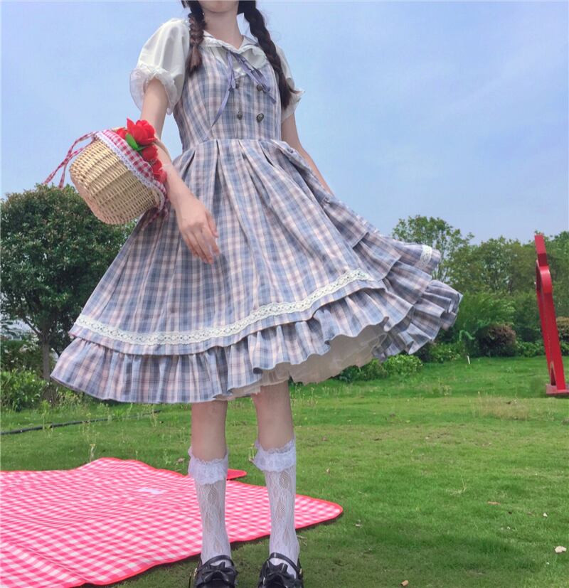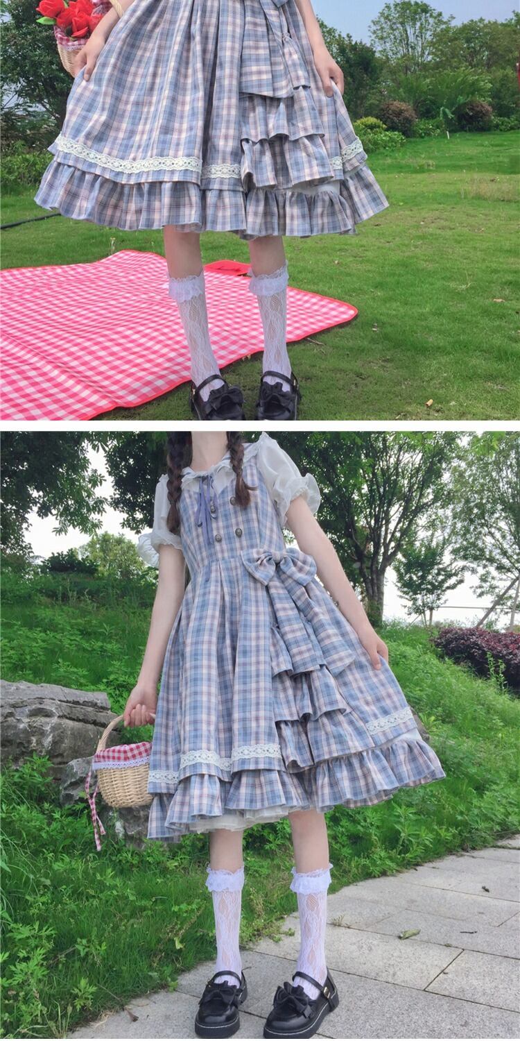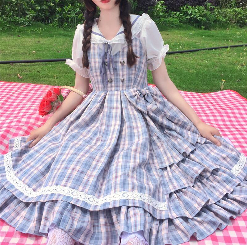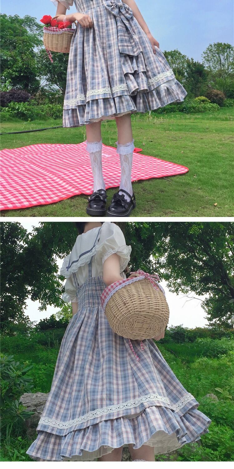 ドレス サマー格子柄ルーズスカート リボンノースリーブ 夏物 萌量不足11382050238