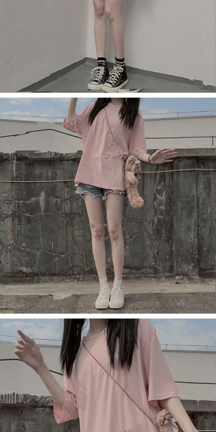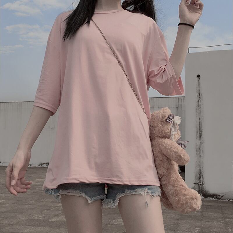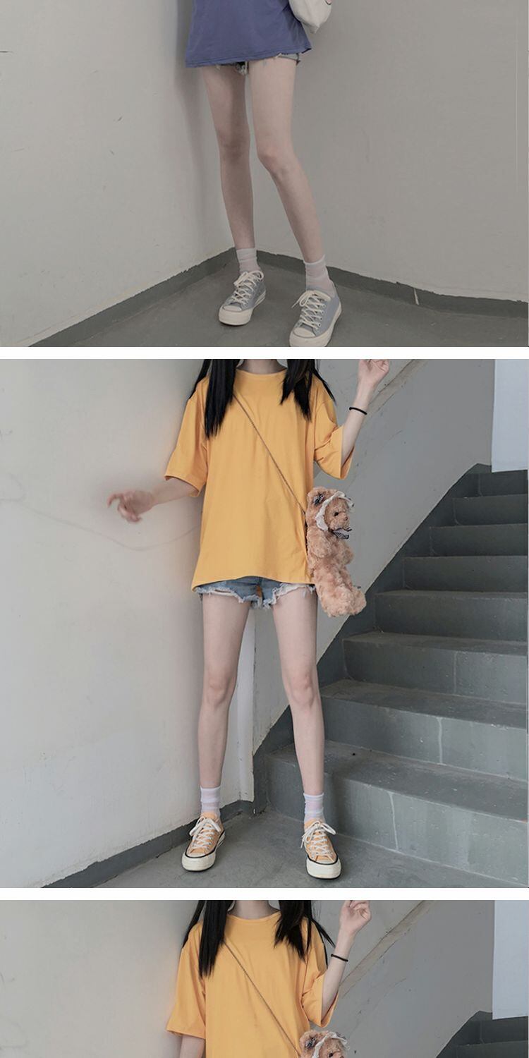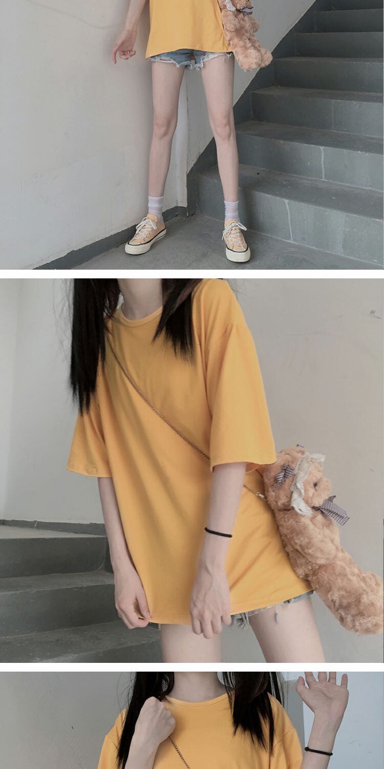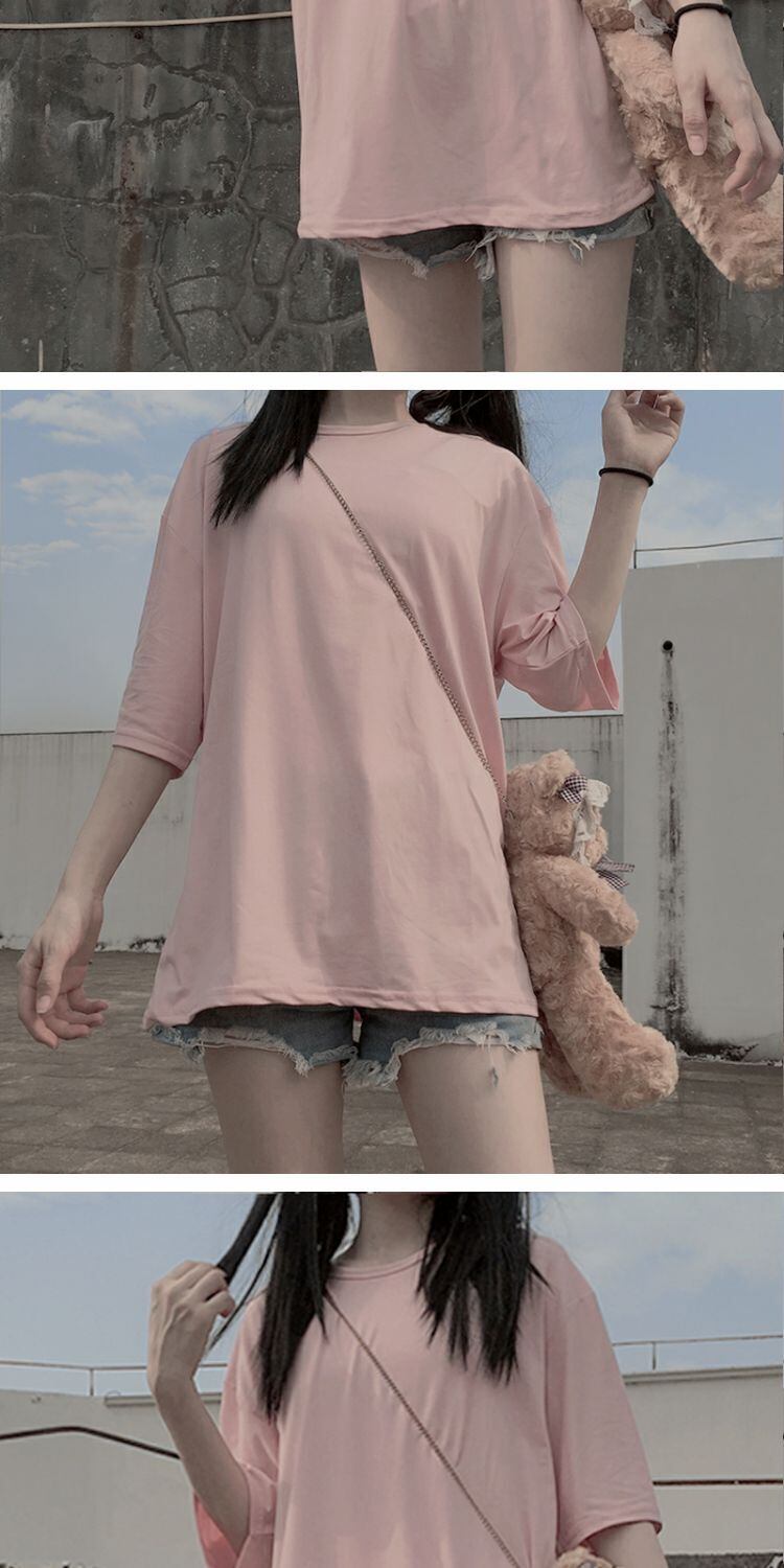 ベーシックソリッド カラールーズTシャツ ラウンドネックサマートップス 夏物 Oネック ソリッドカラー 萌量不足5004168974