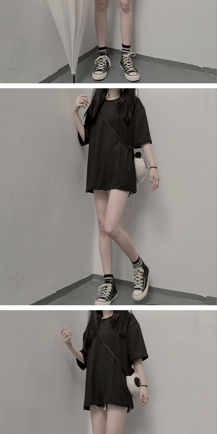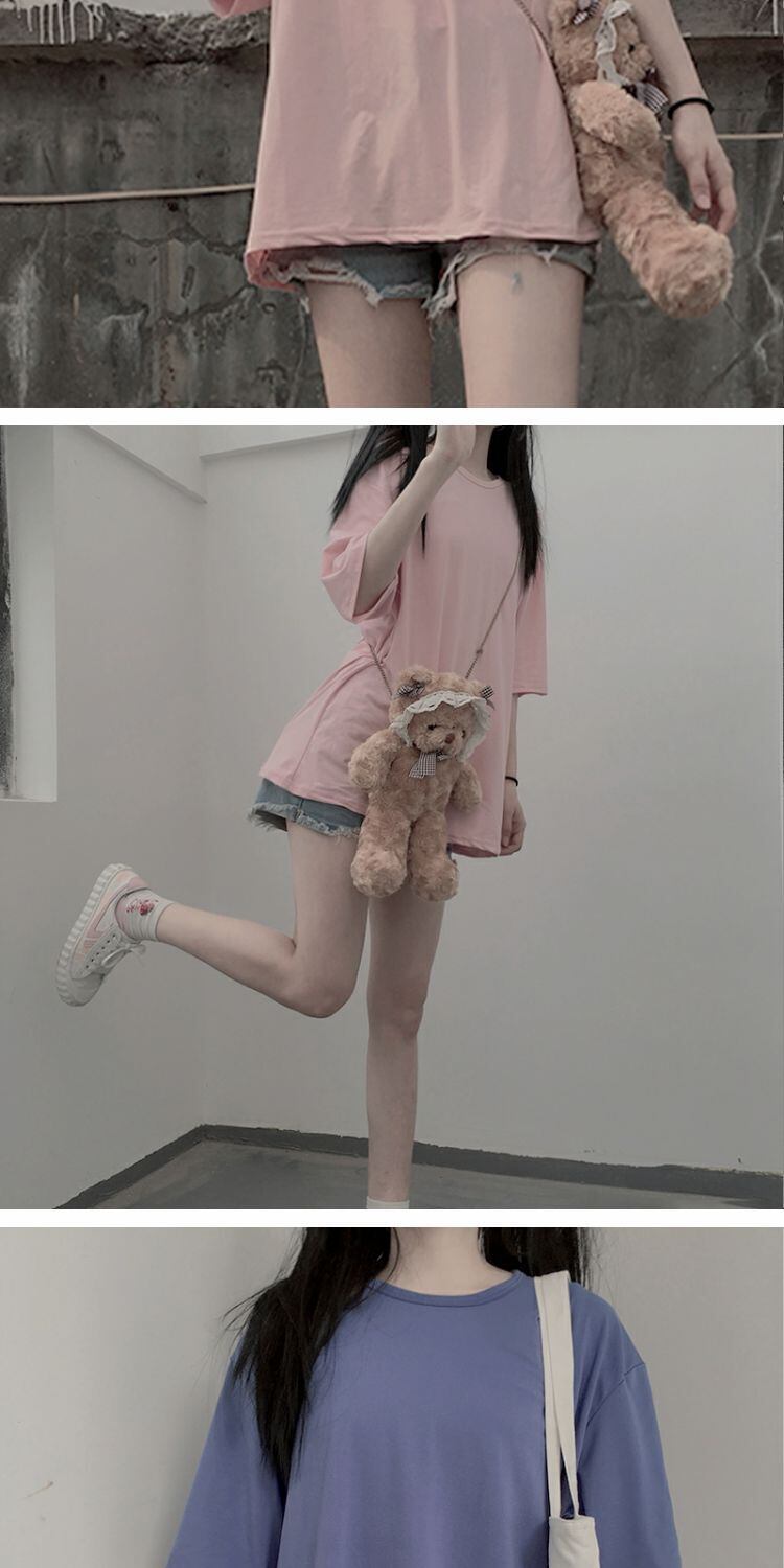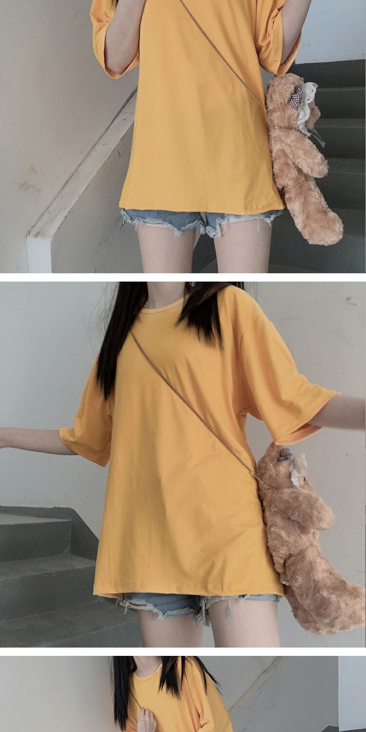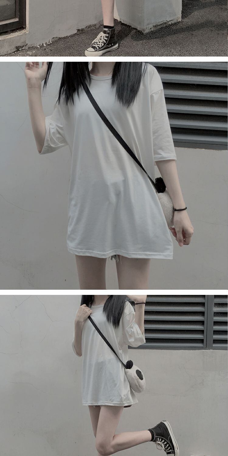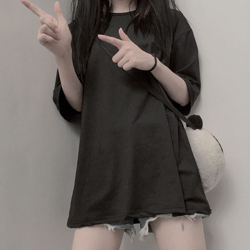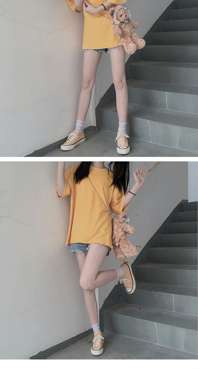 ベーシックソリッド カラールーズTシャツ ラウンドネックサマートップス 夏物 Oネック ソリッドカラー 萌量不足5004168974
