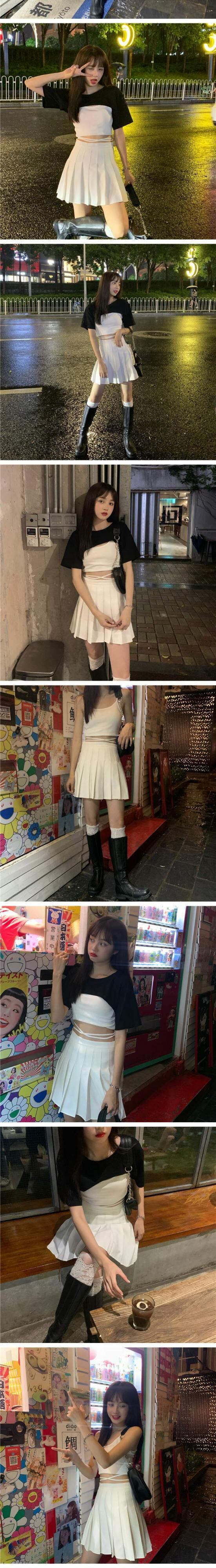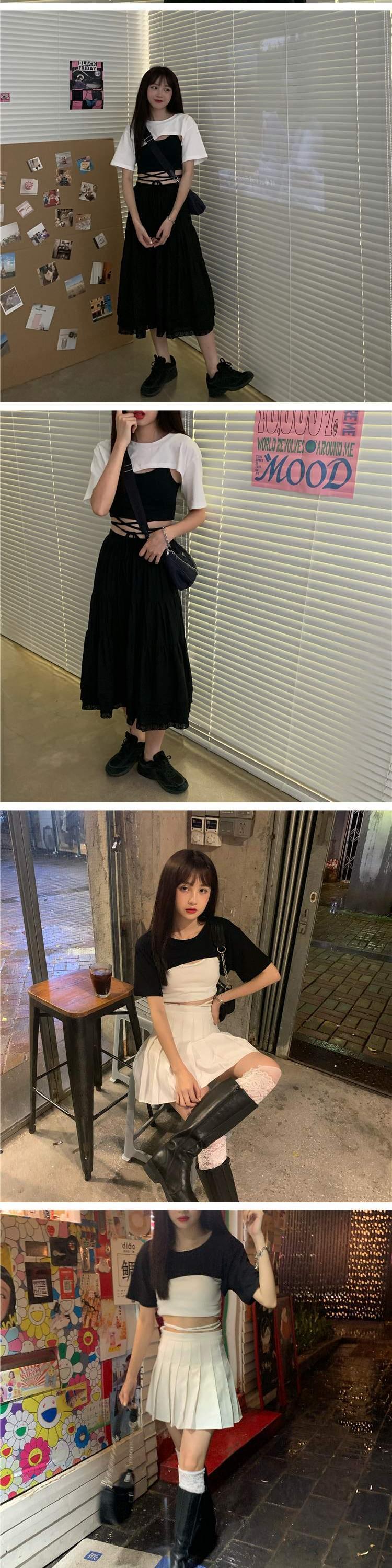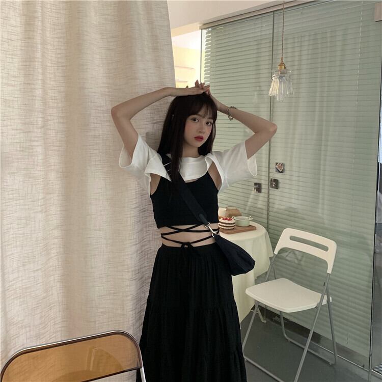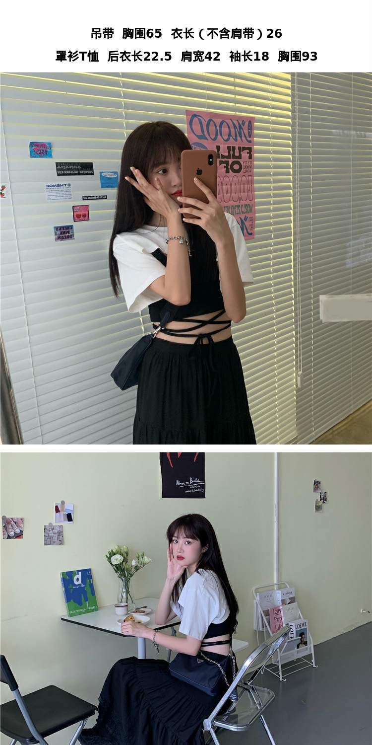 色:黒い半袖,白い半袖,黒のネクタイベスト,ホワイトストラップベスト