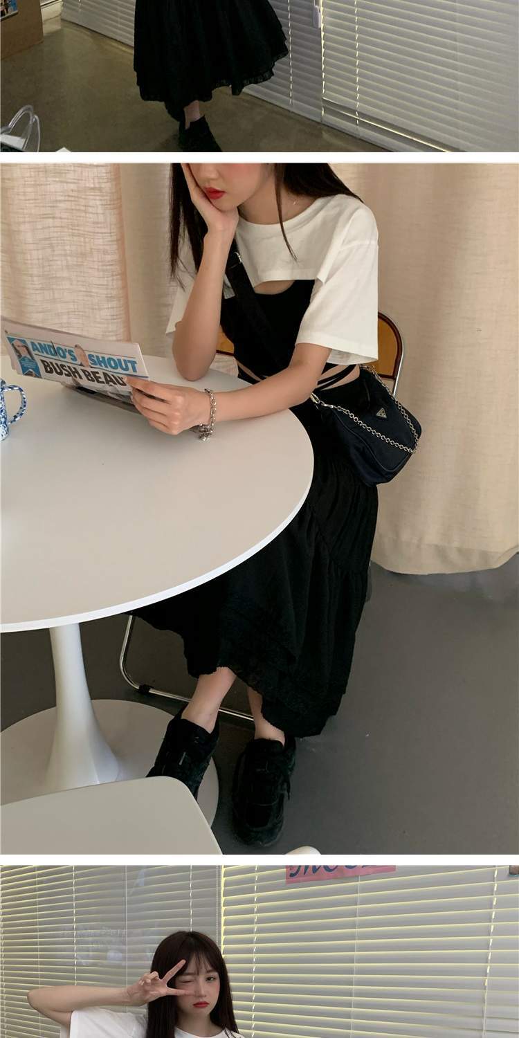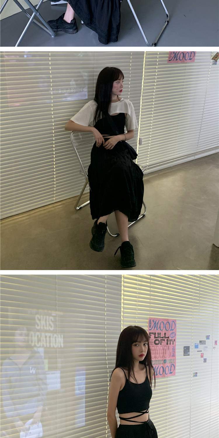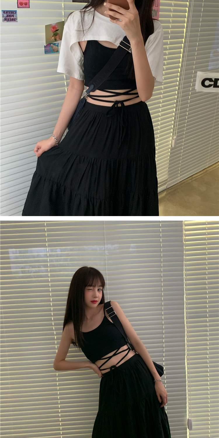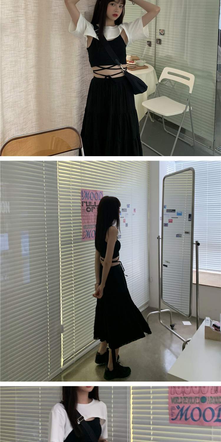 色:黒い半袖,白い半袖,黒のネクタイベスト,ホワイトストラップベスト