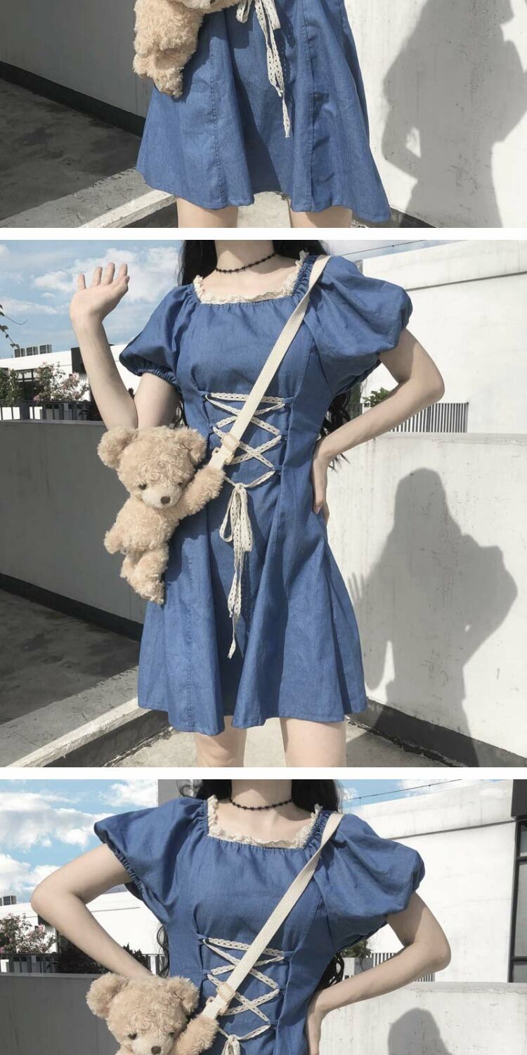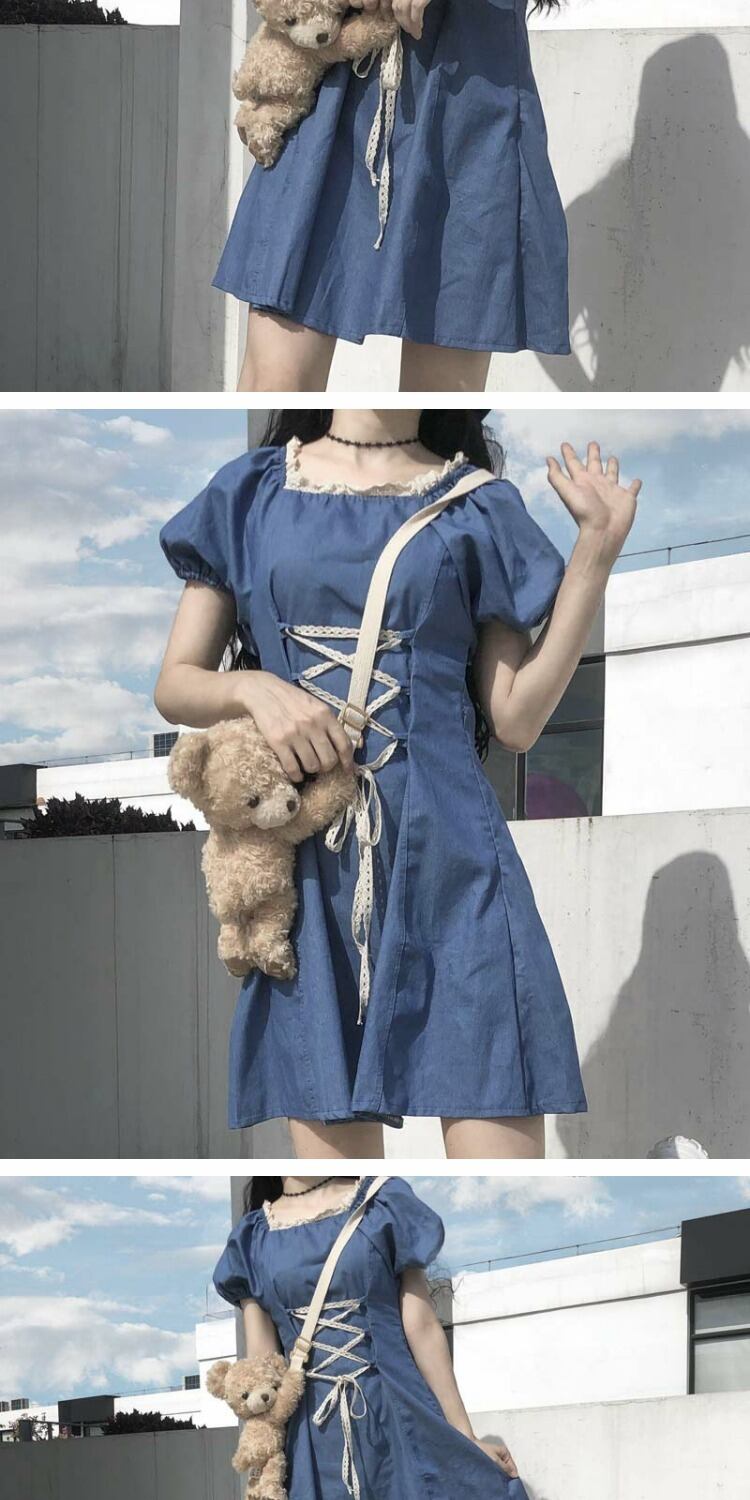 レッドスタンダードウェストレースドレス サマースカート レトロ 夏物 萌量不足60229122975