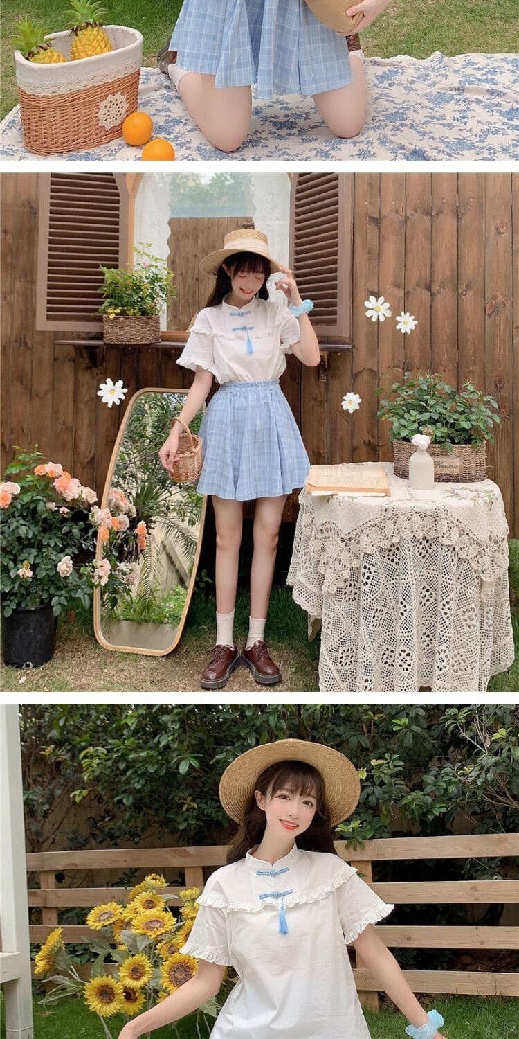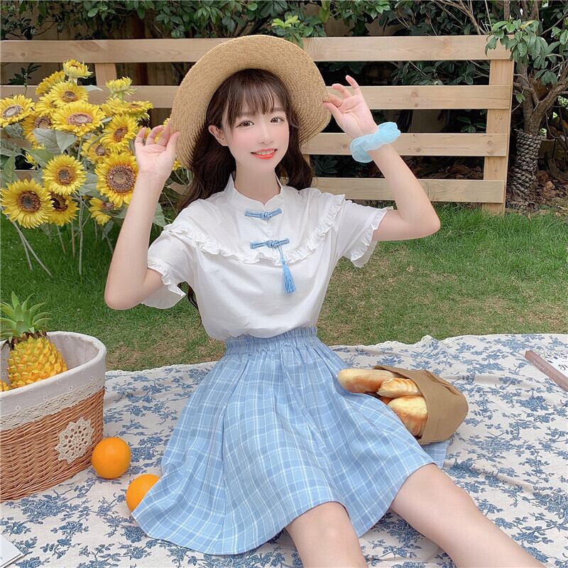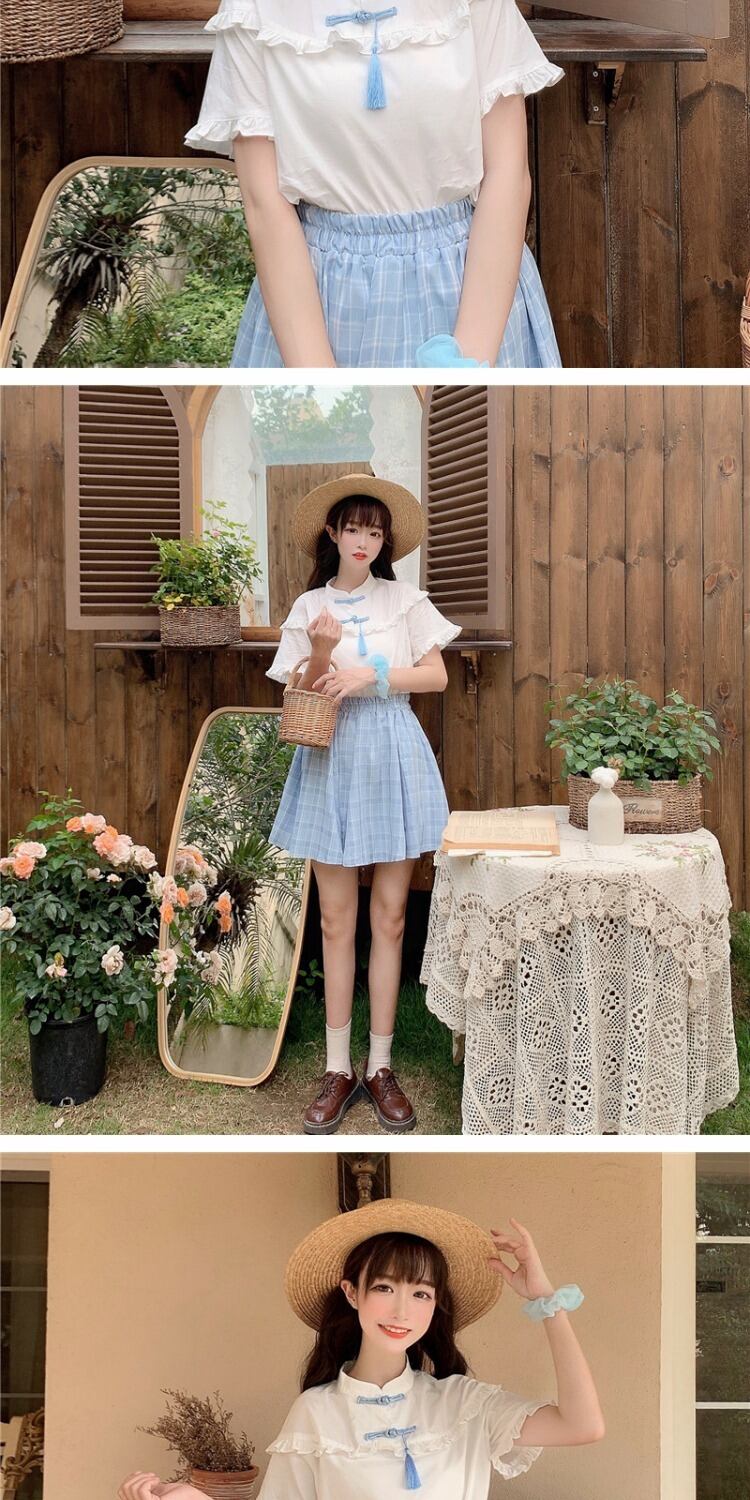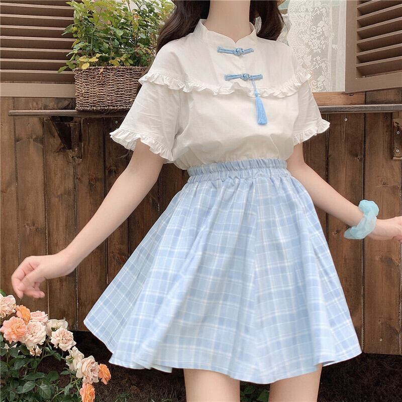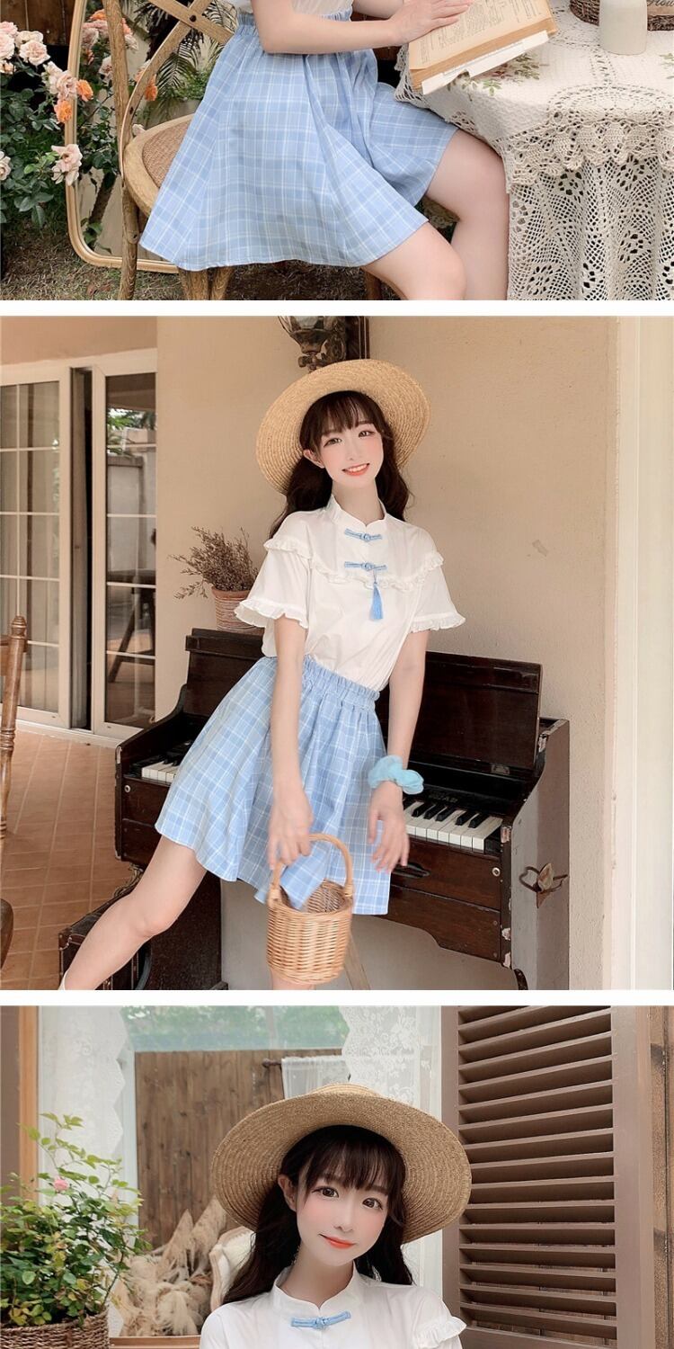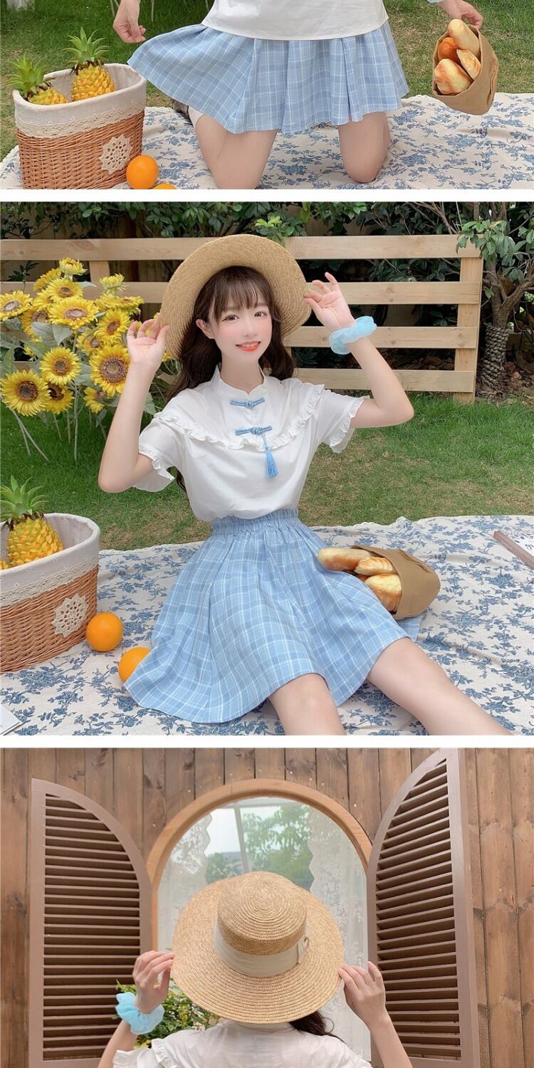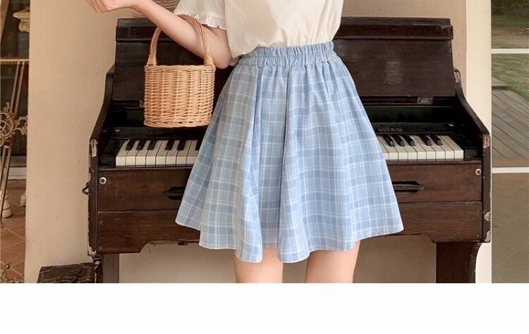 スプリングオータムバックルシャツ 格子柄スカート 春物 秋物 萌量不足7039427043