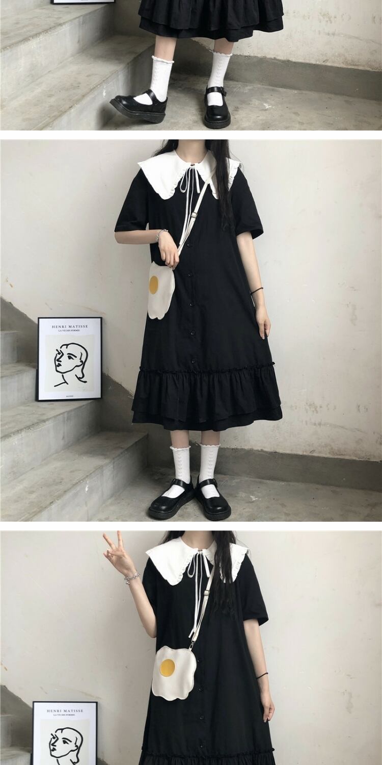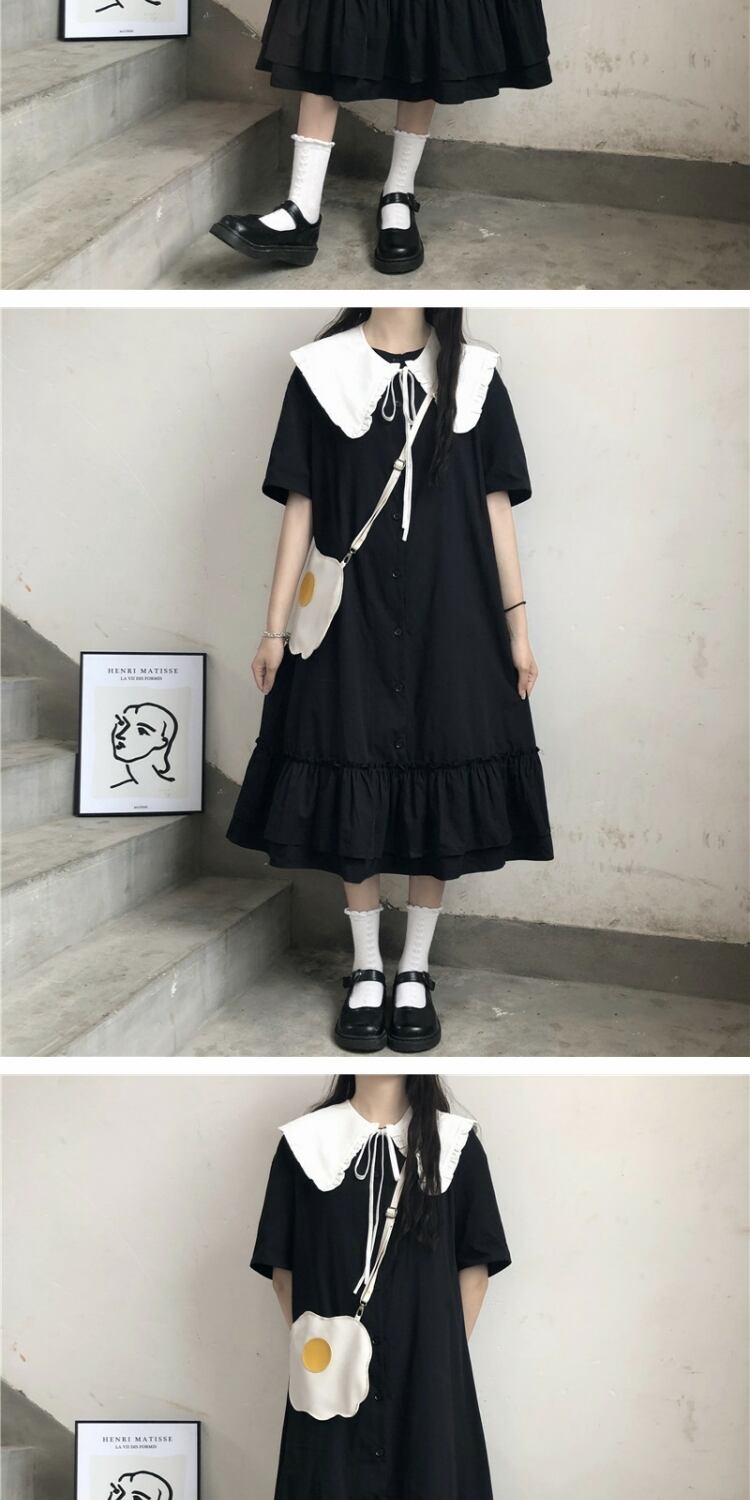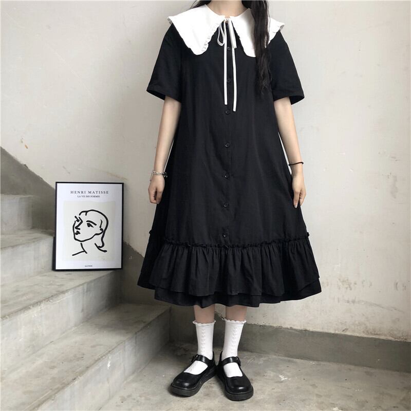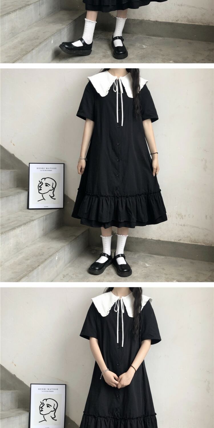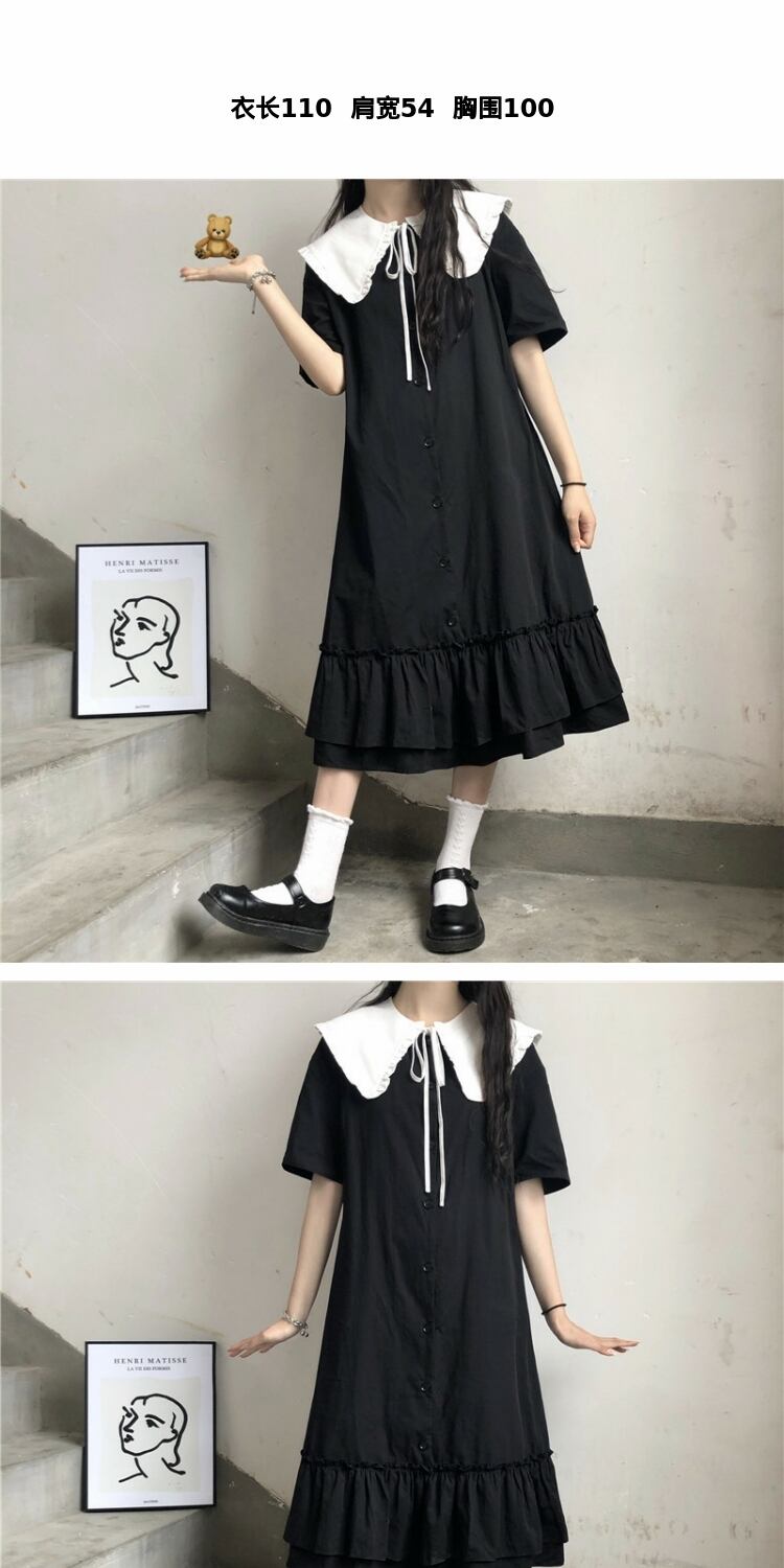 スタイルレースカラーブラックホワイトスカート サマーロングドレス 夏物 ステッチ 萌量不足60765002338
