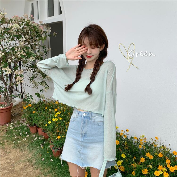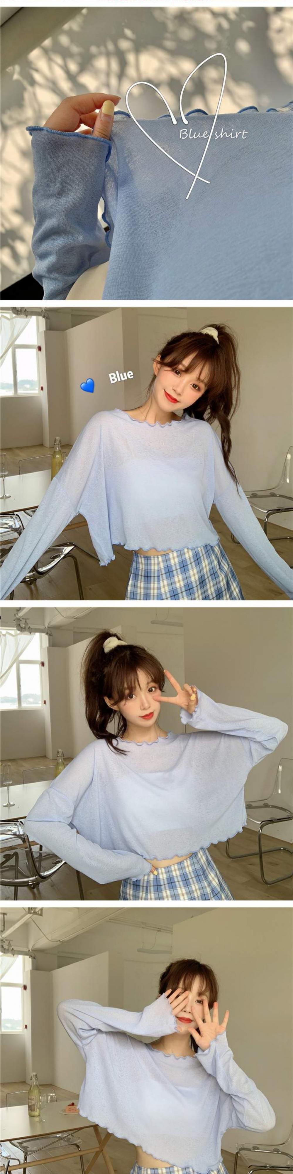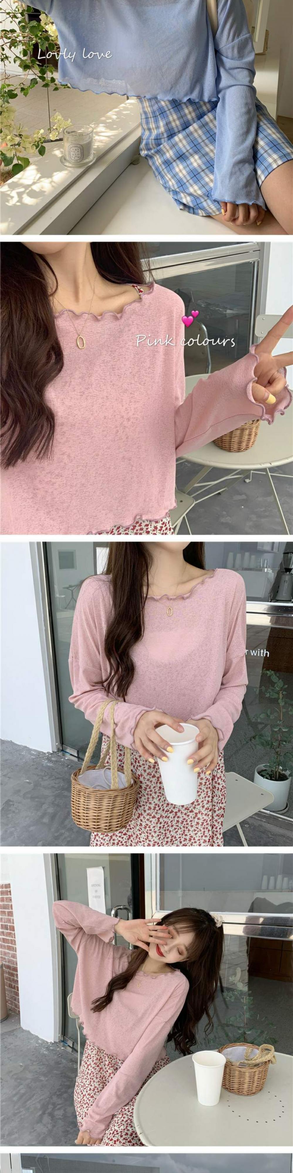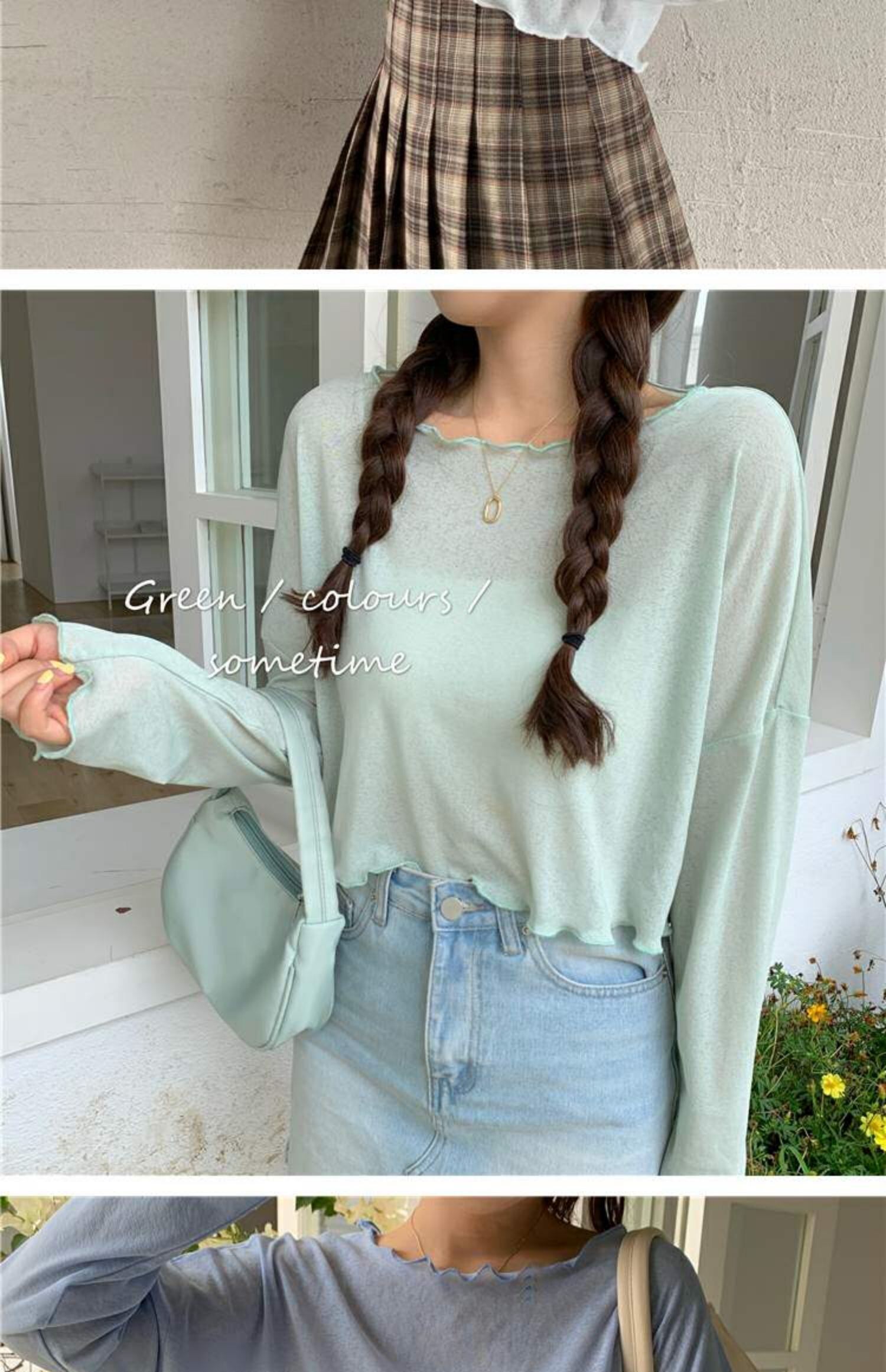 サマールーズラウンドネックプルオーバー ブラウス カラーシャツ 長袖スリーブTシャツ ロング 夏物 Oネック 萌量不足15588693357