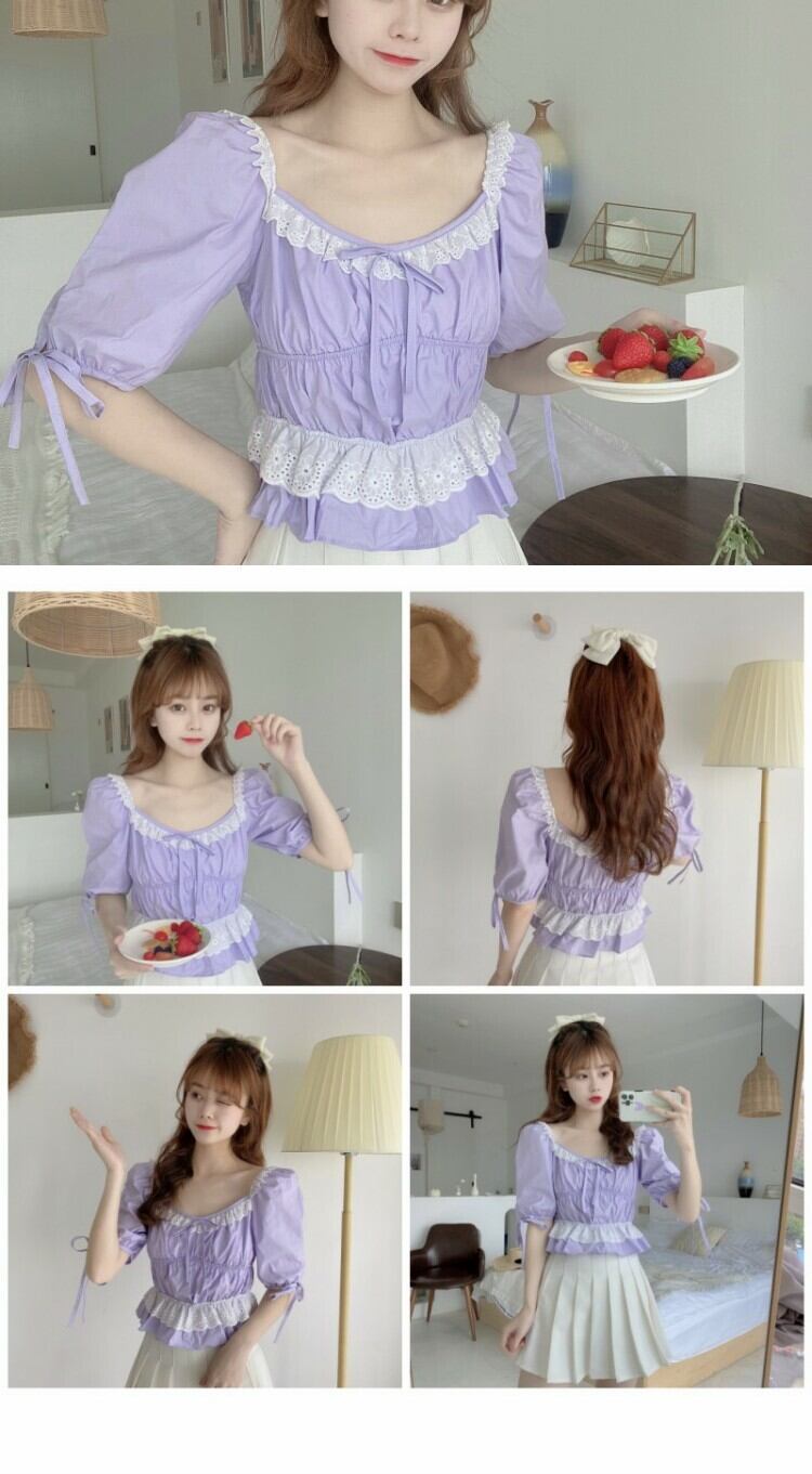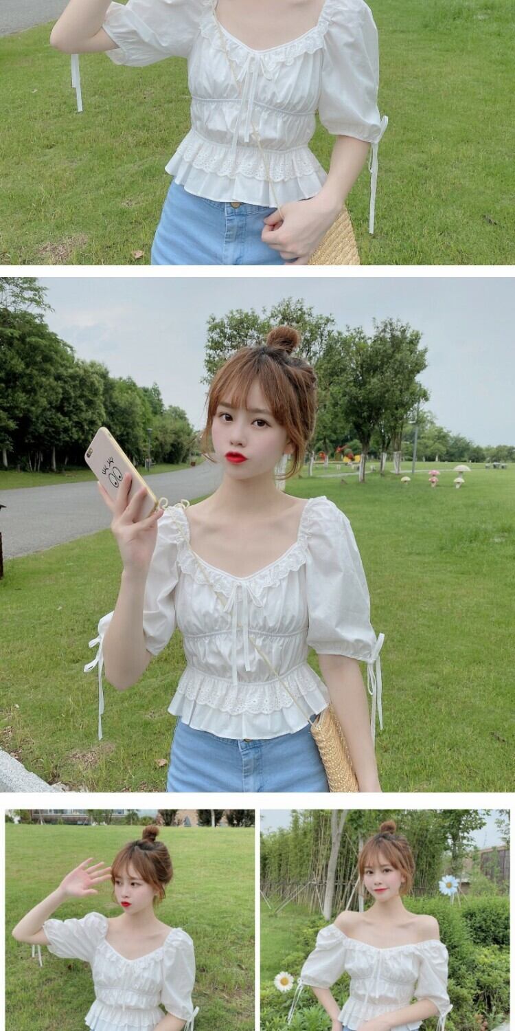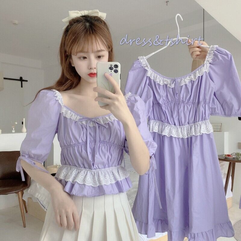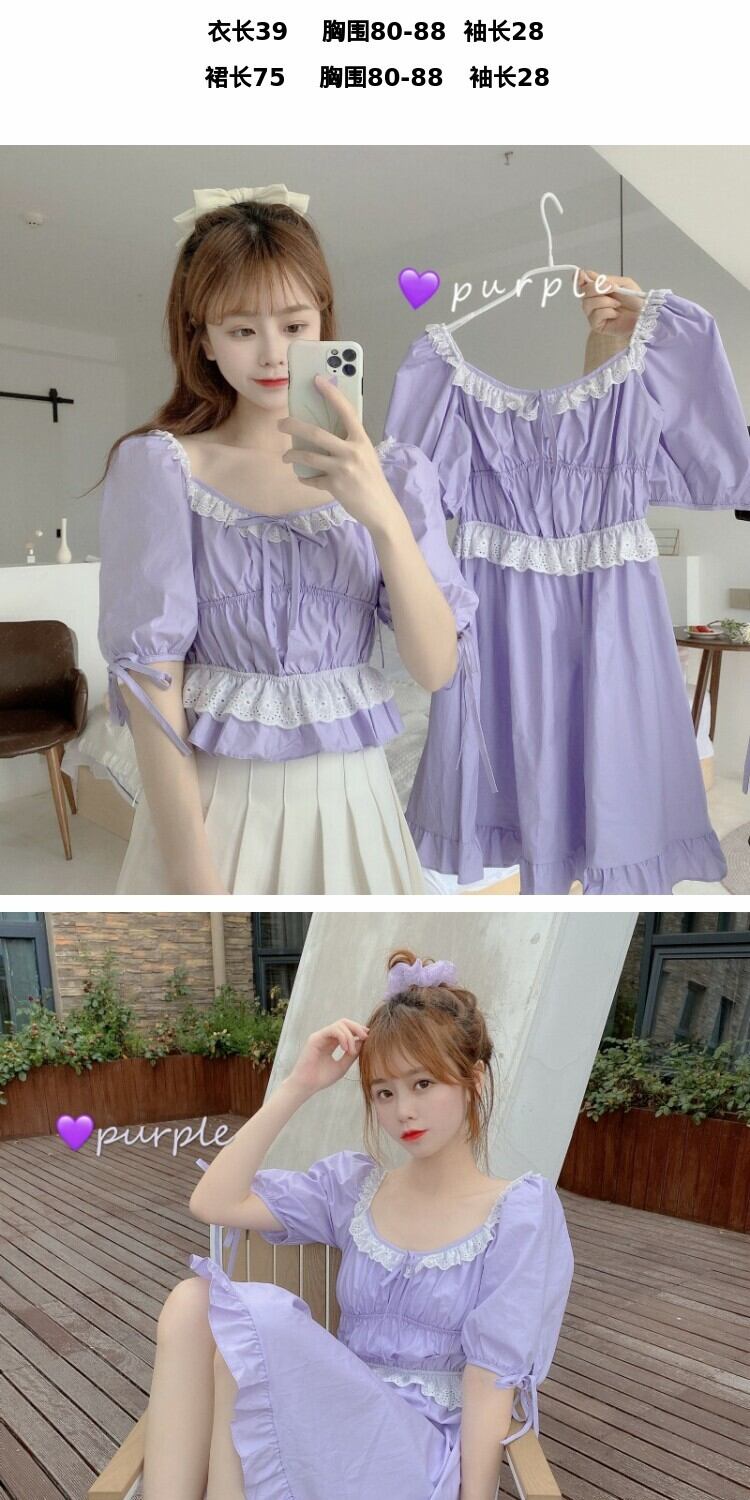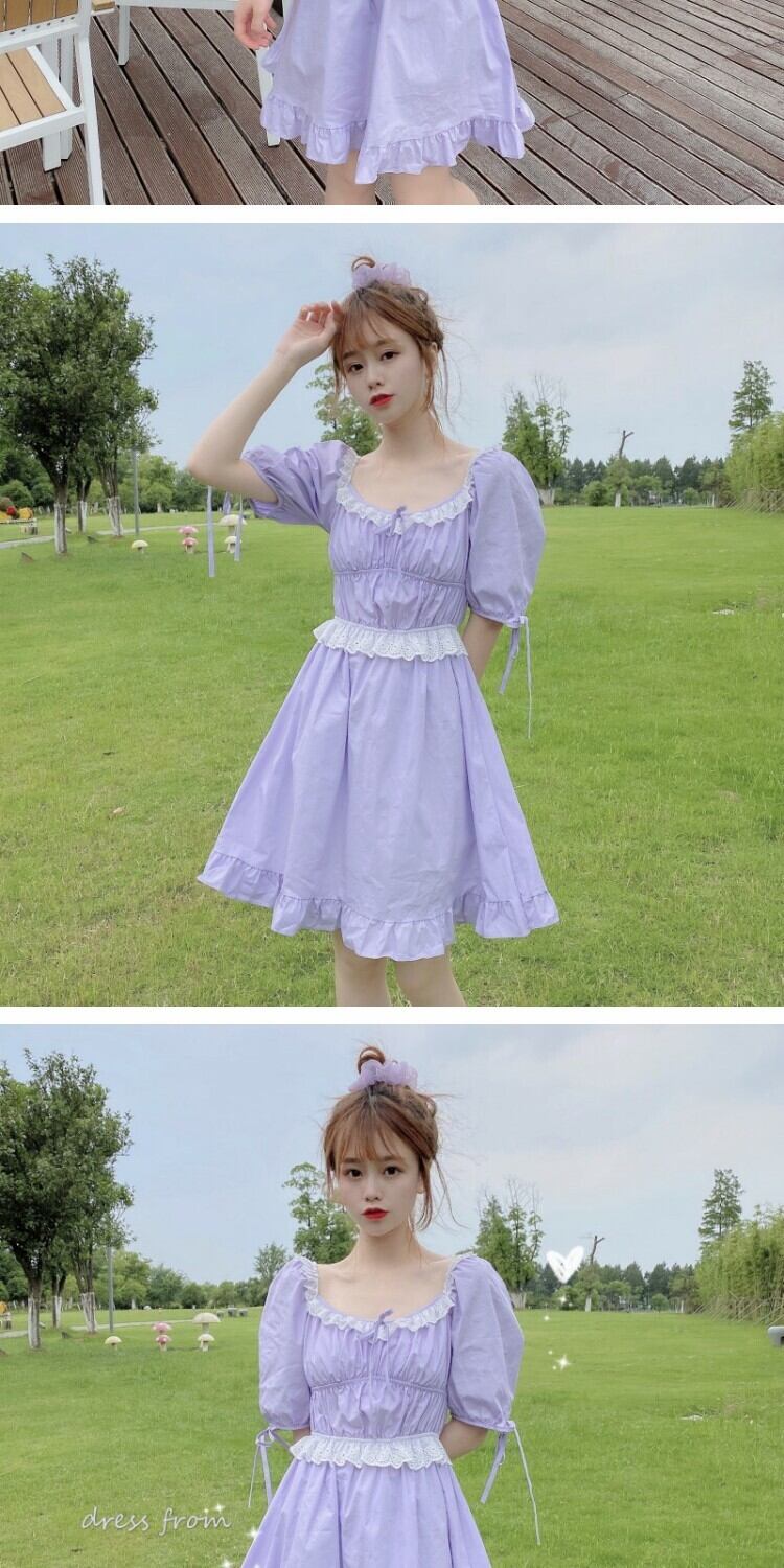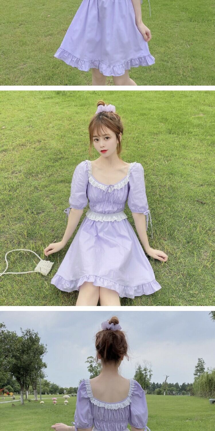スタンダードカラースリーブウェストドレス オータムスタイル薄手スカート レトロ レース 秋物 スクウェア 萌量不足12571533261