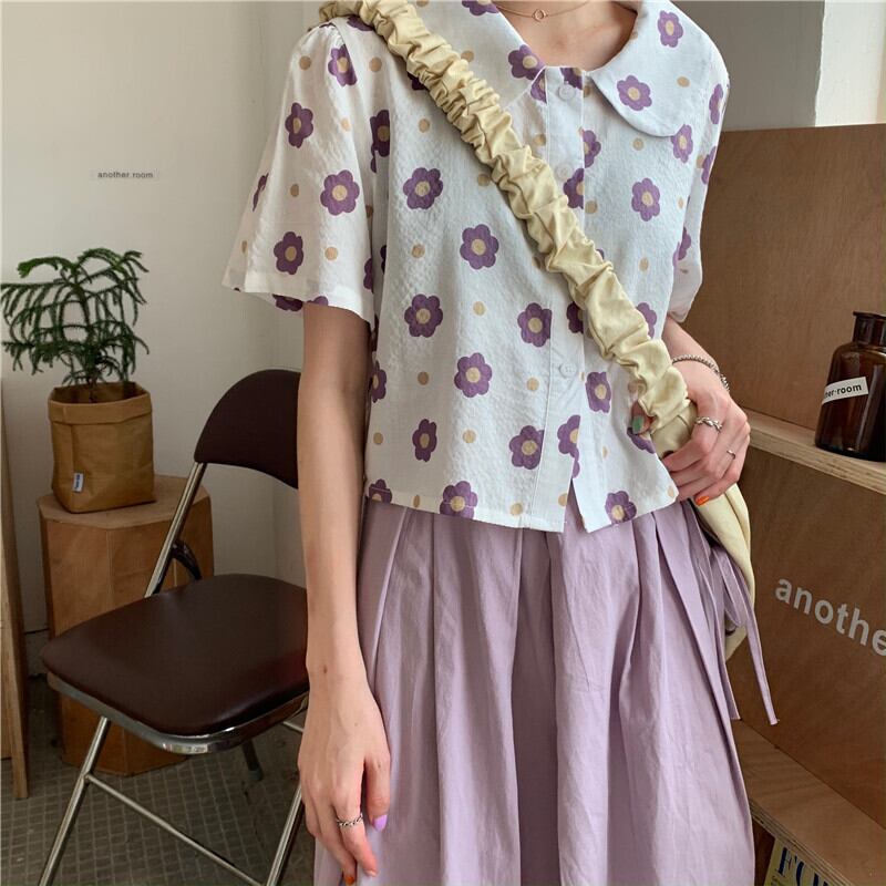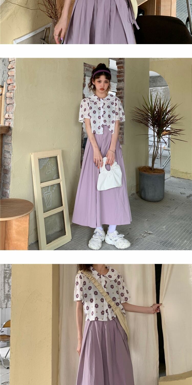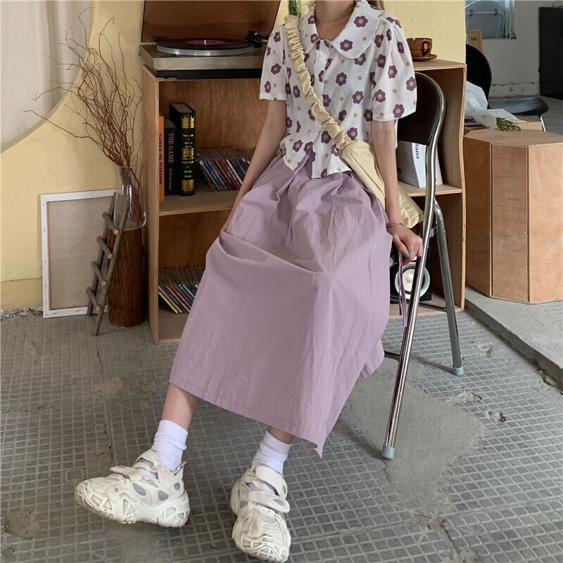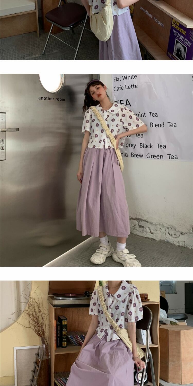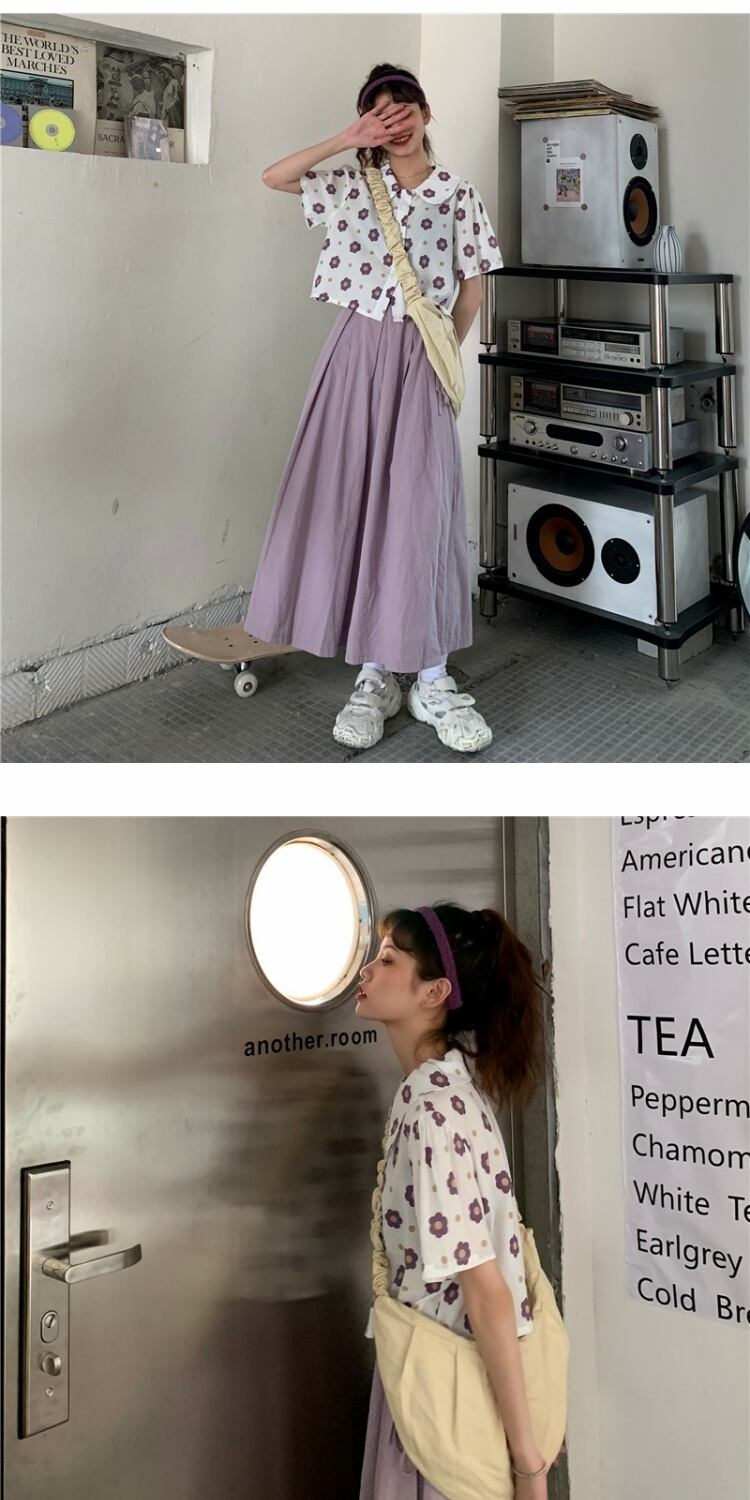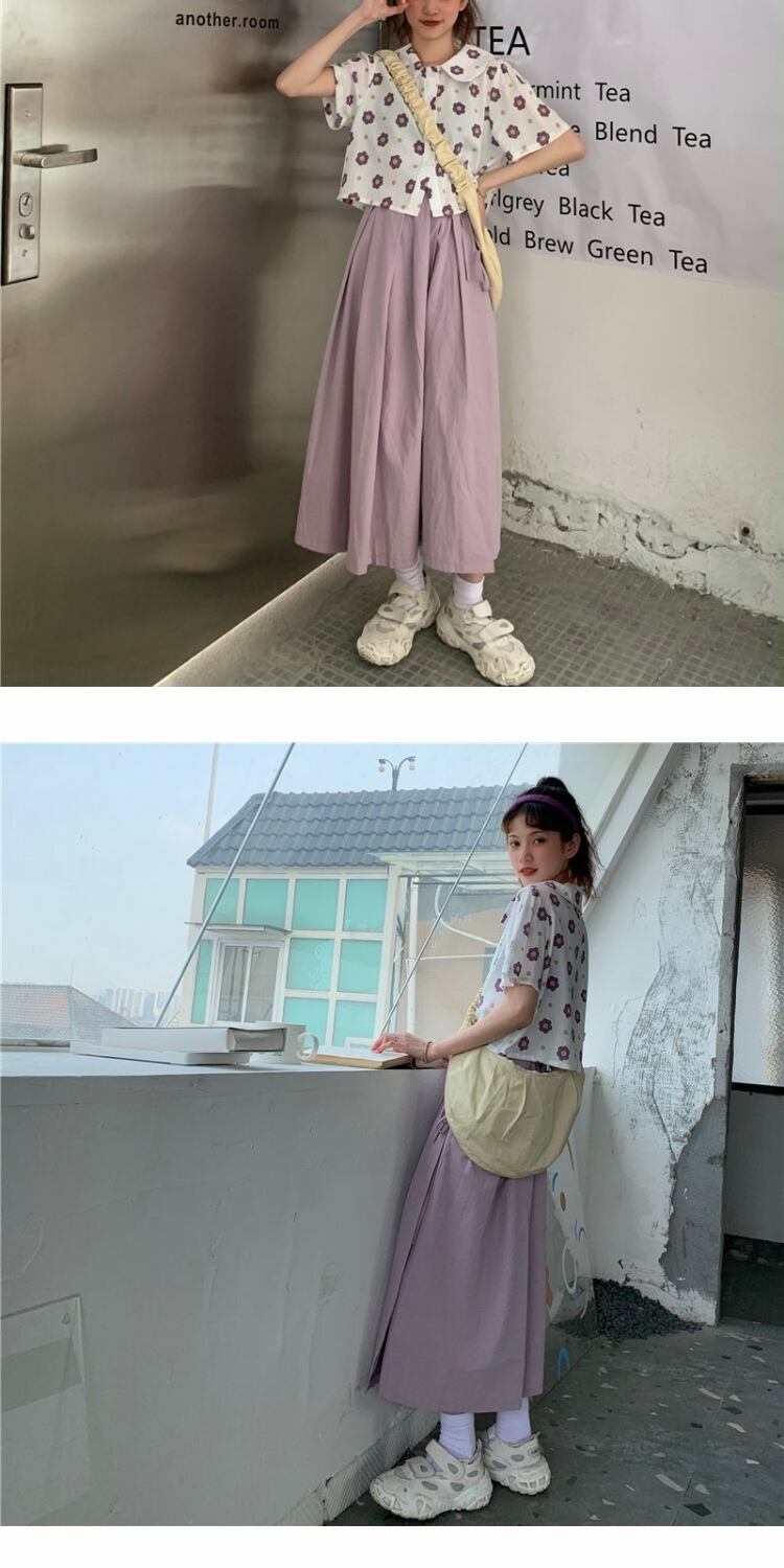 スタイルサマールーズカラーシャツ スカート 夏物 パープル 萌量不足14992387573