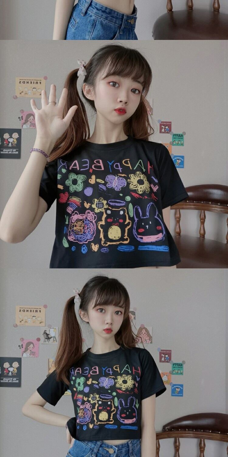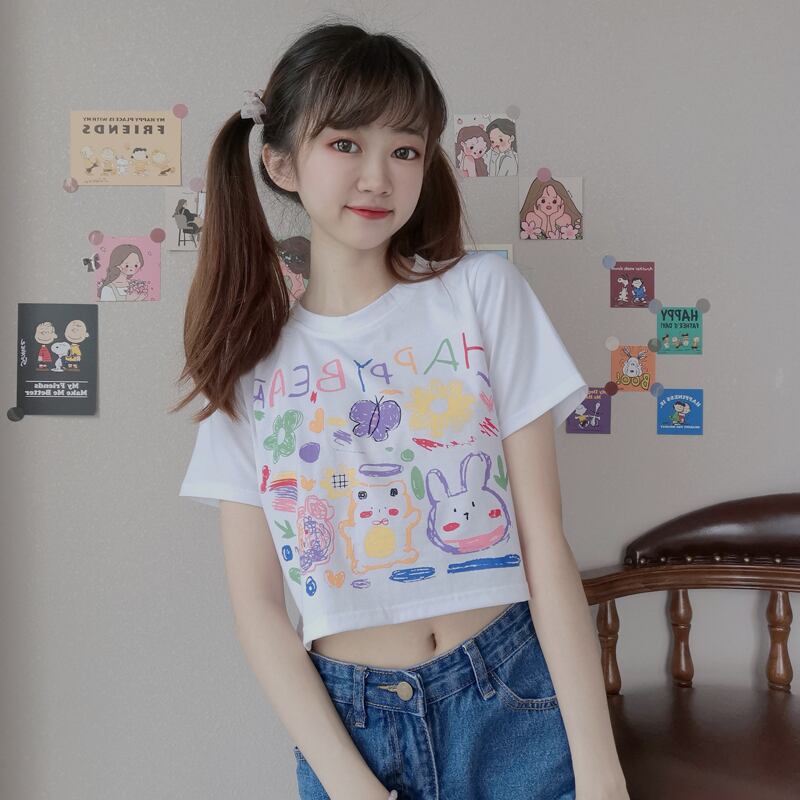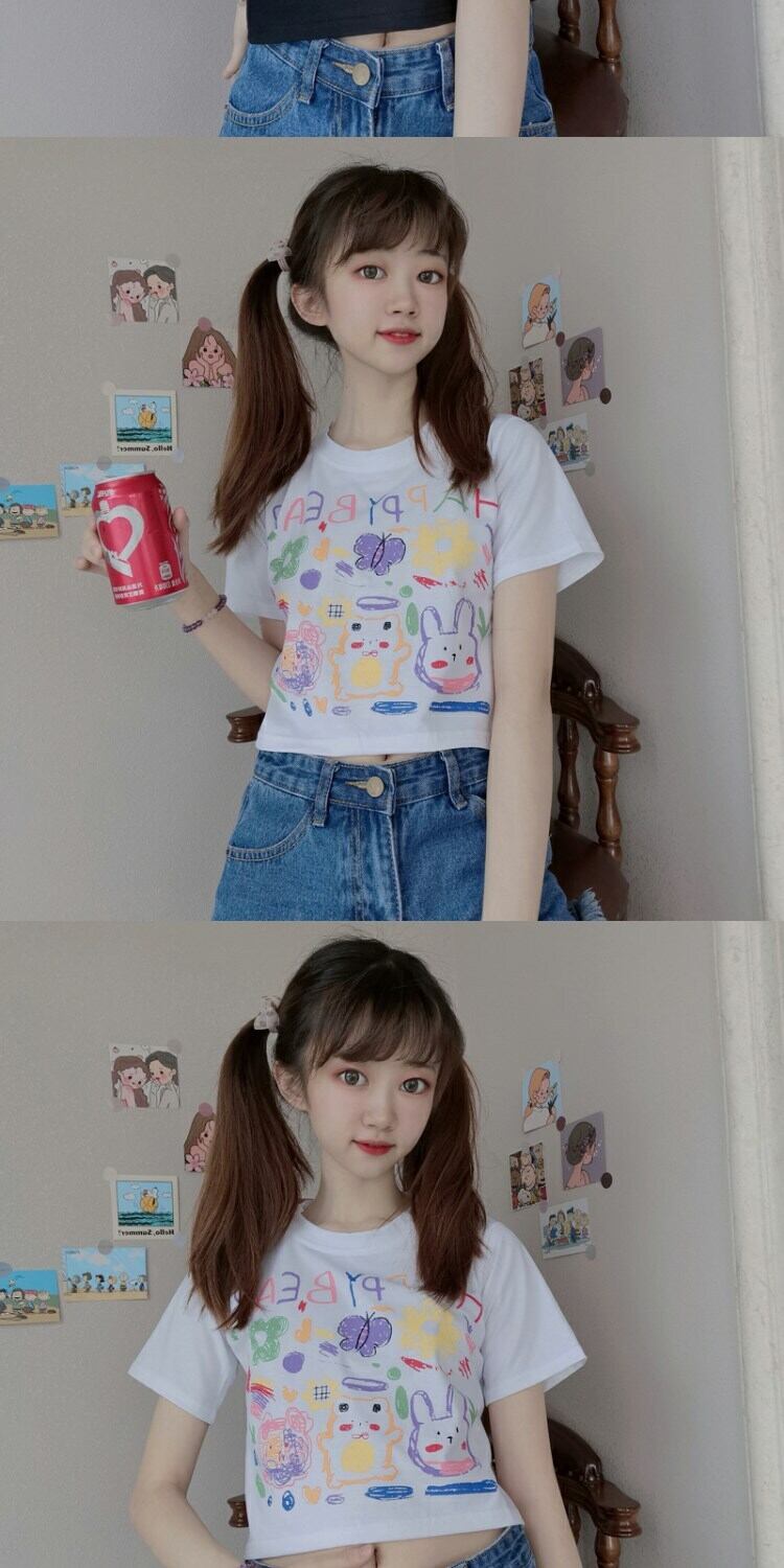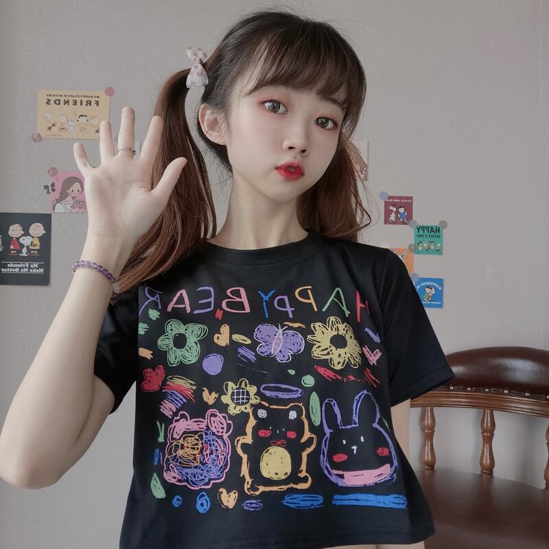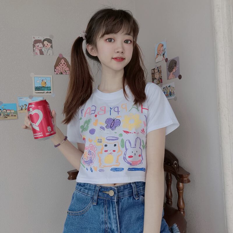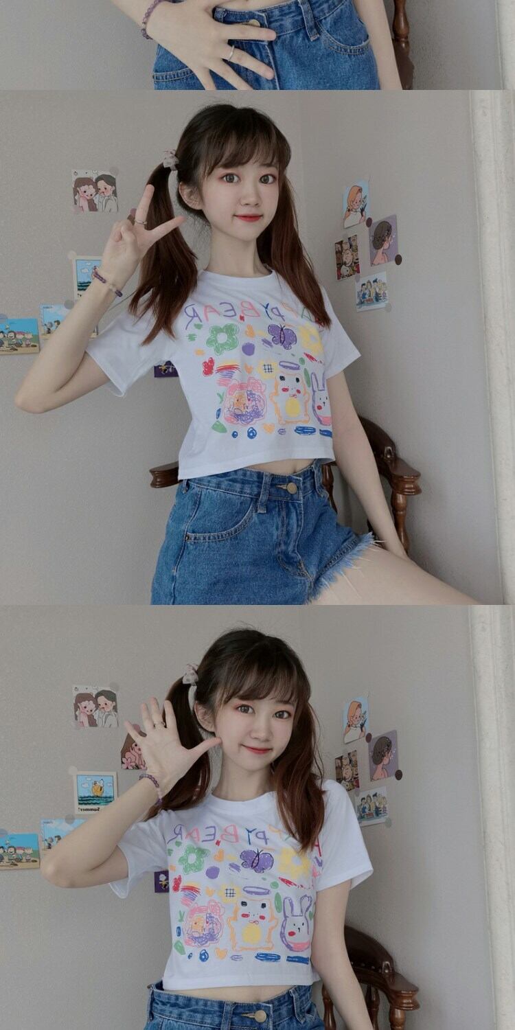 サマースタイルプリントショートTシャツ スリムトップス 大人ガーリー スウィート キュート カジュアル 夏物 萌量不足24458625512