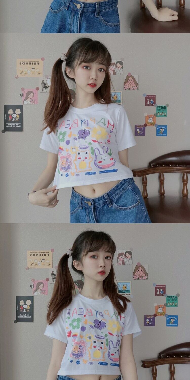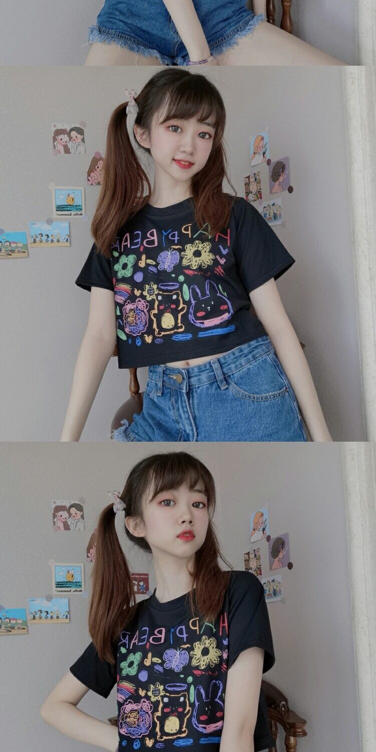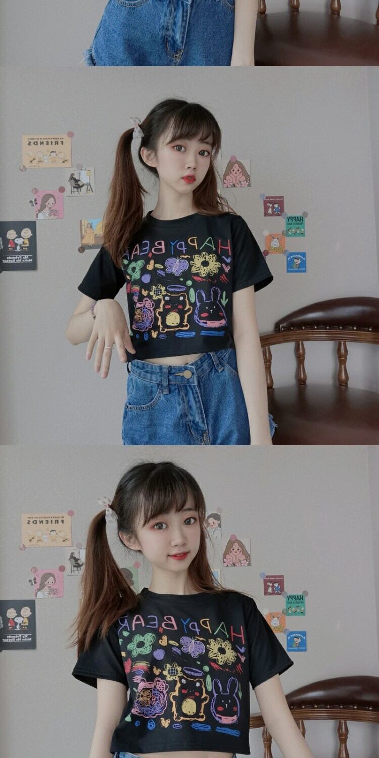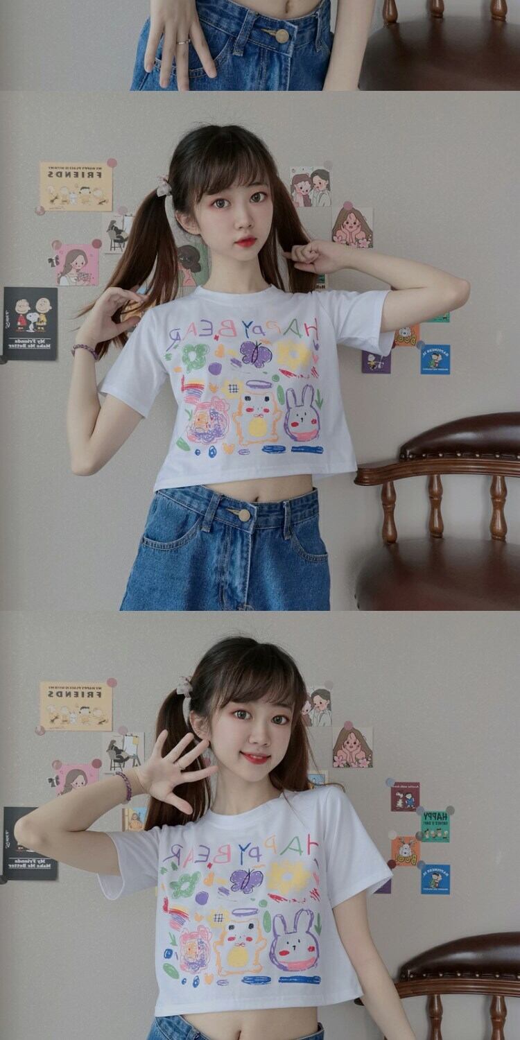 サマースタイルプリントショートTシャツ スリムトップス 大人ガーリー スウィート キュート カジュアル 夏物 萌量不足24458625512