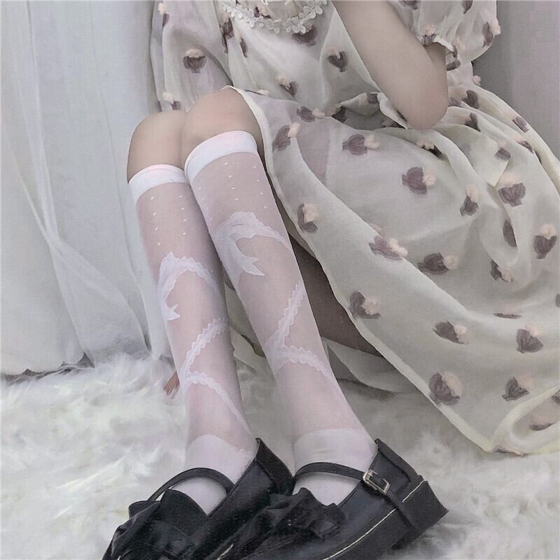 ロングスカート レースソックス リボン薄手サマー ショート 大人ガーリー スウィート キュート カジュアル 夏物 タイツ ストッキング 萌量不足82424987570
