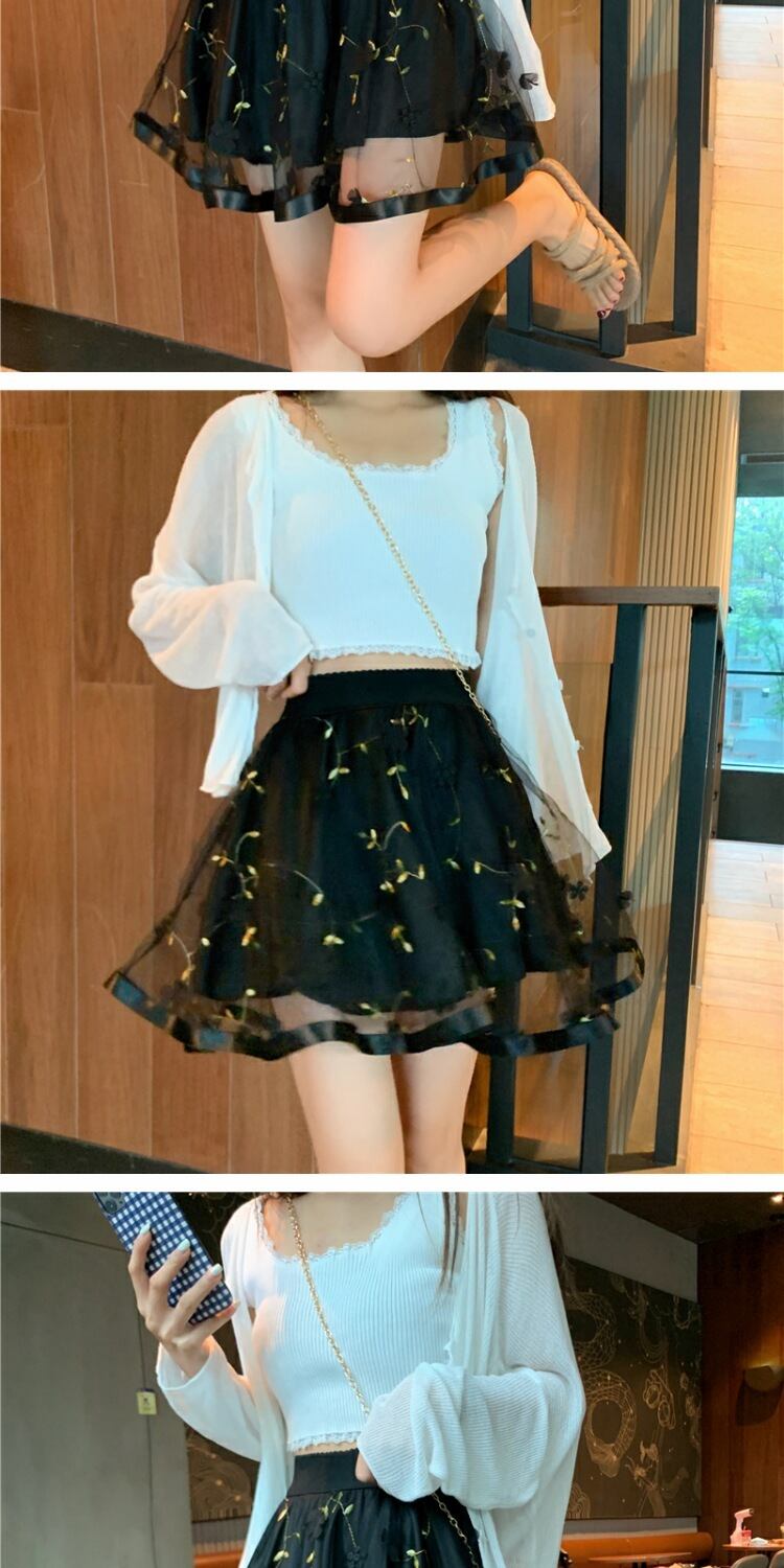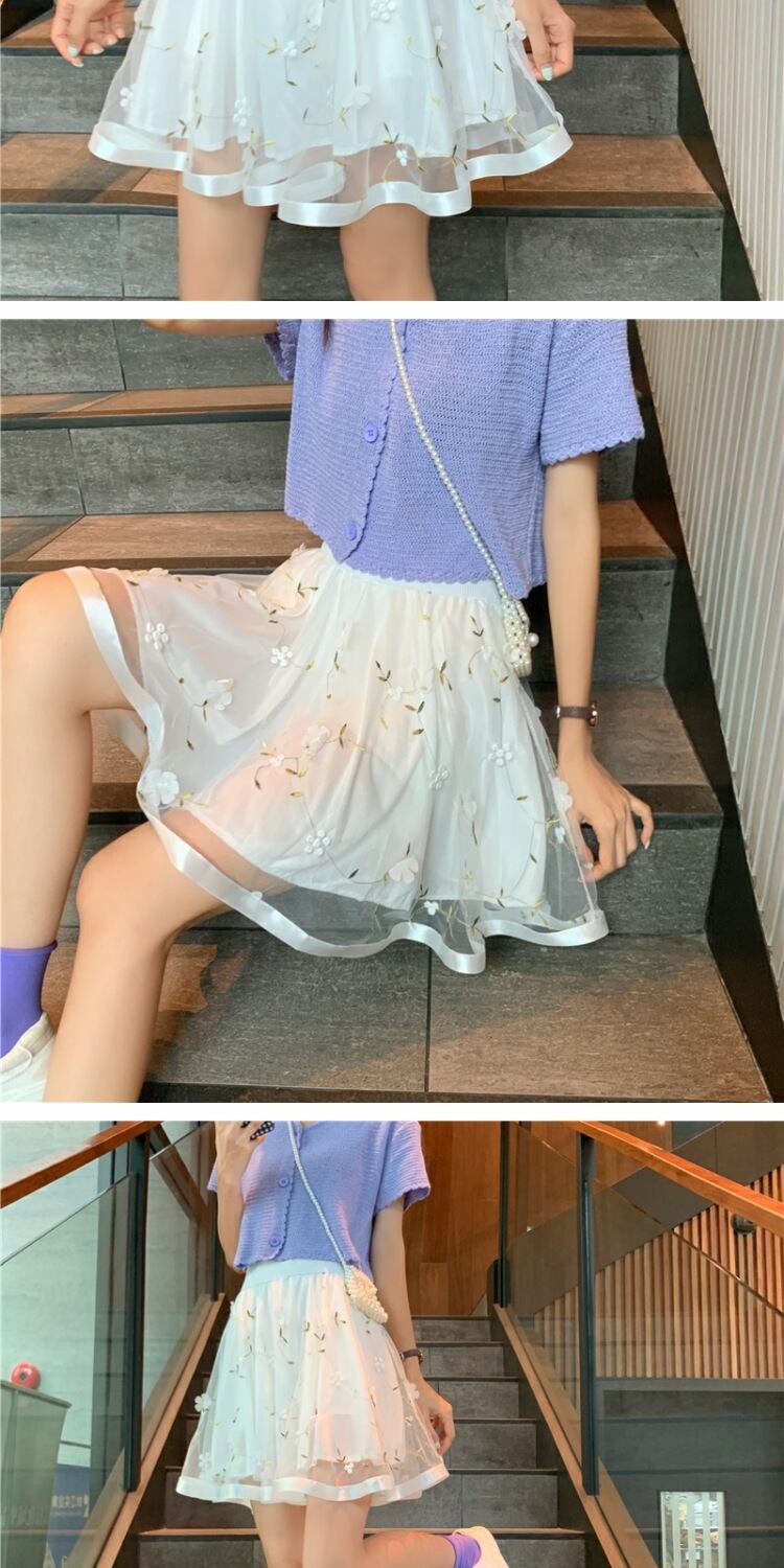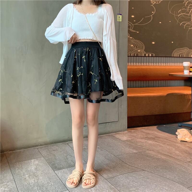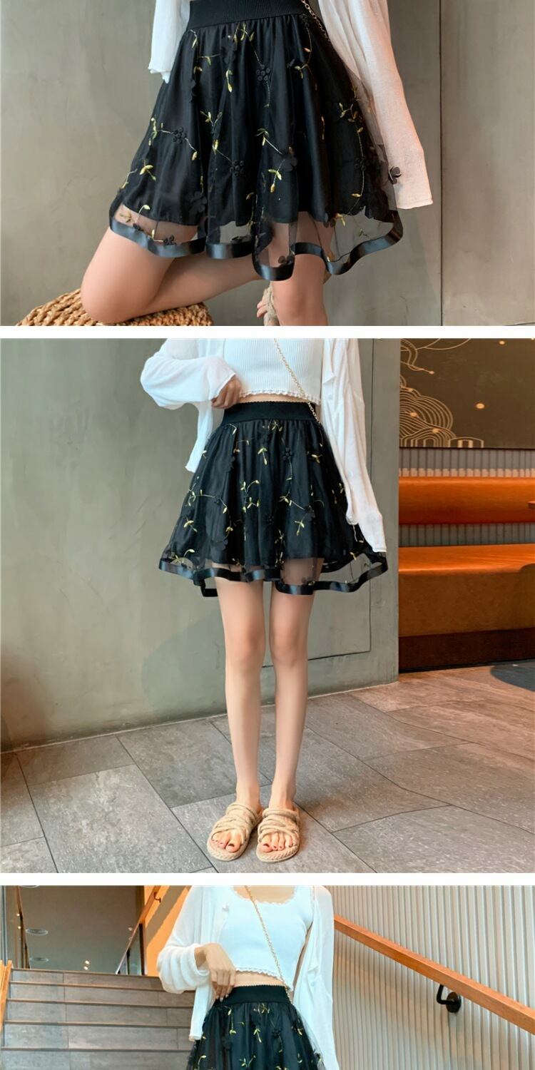 スカート サマーショートストレッチウェストAラインハイウェストメッシュ エラスティック 伸縮 夏物 萌量不足35815084737