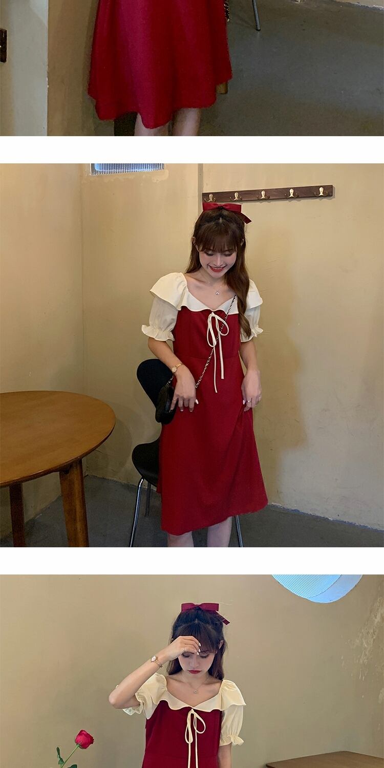 レッドウェストスリムドレス サマールーズスカート レース 夏物 レースアップ 萌量不足69086924035