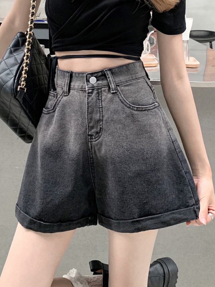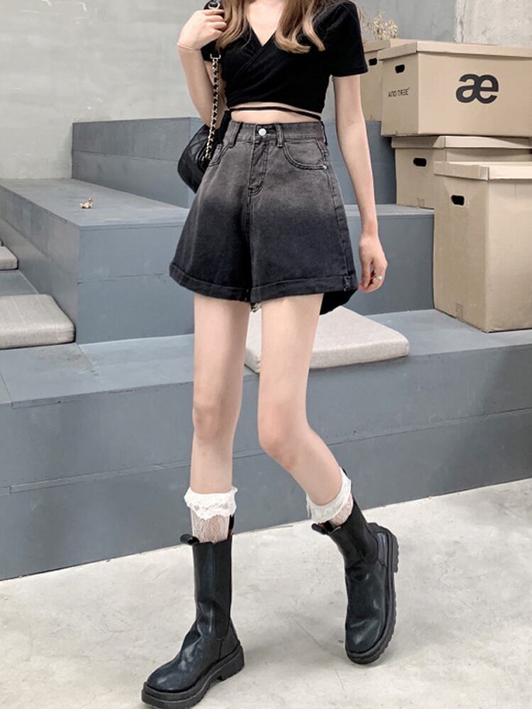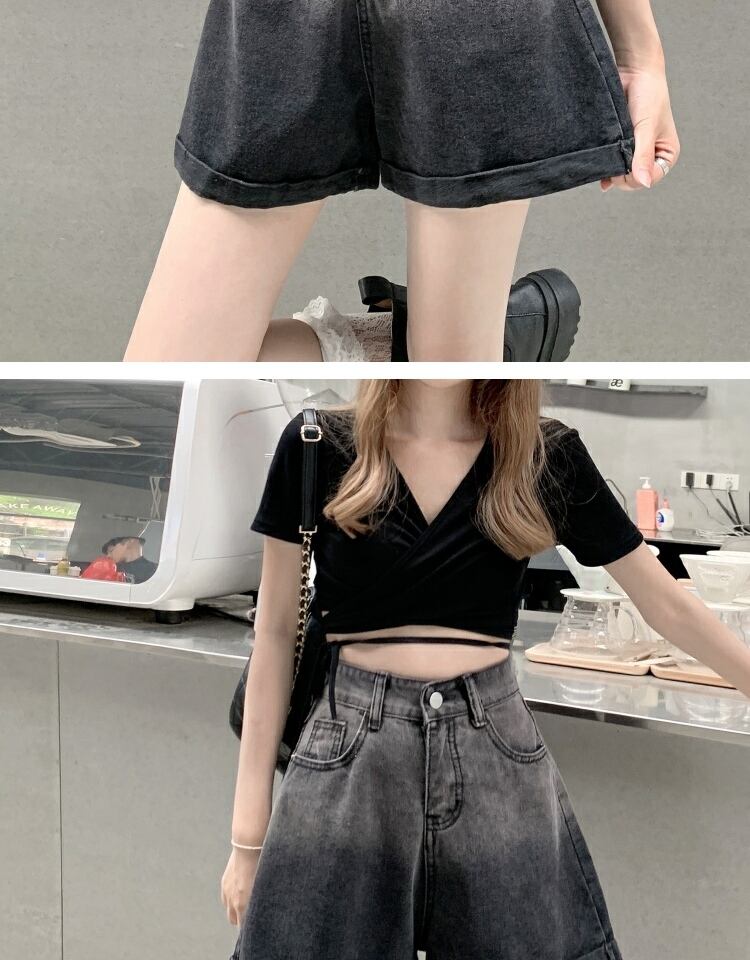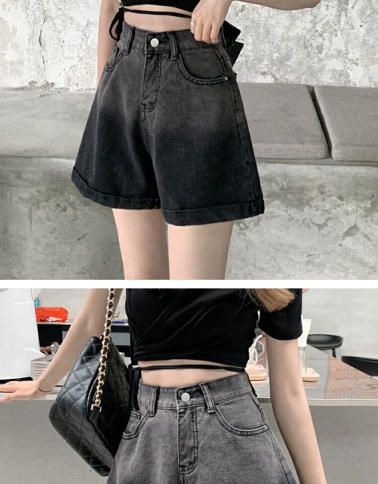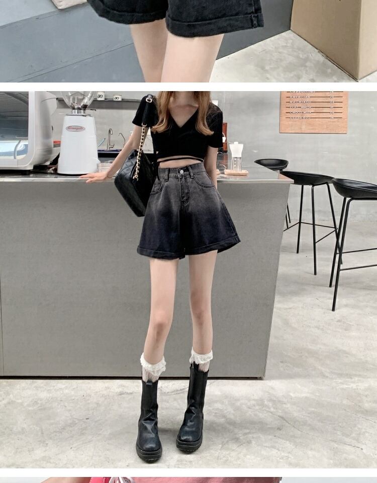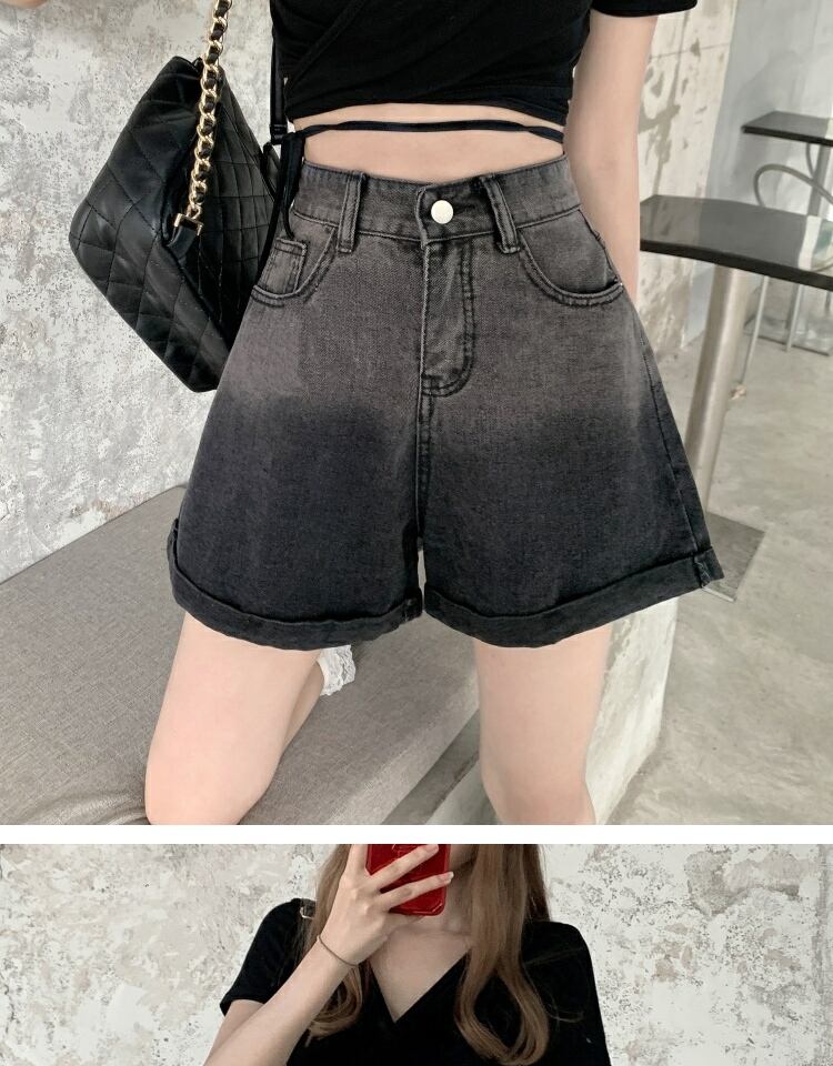 ブラックショーツ サマー薄手ハイウェストウェストカジュアルワイドレッグAラインパンツ 夏物 ブルマー ワイドパンツ 萌量不足76244935529