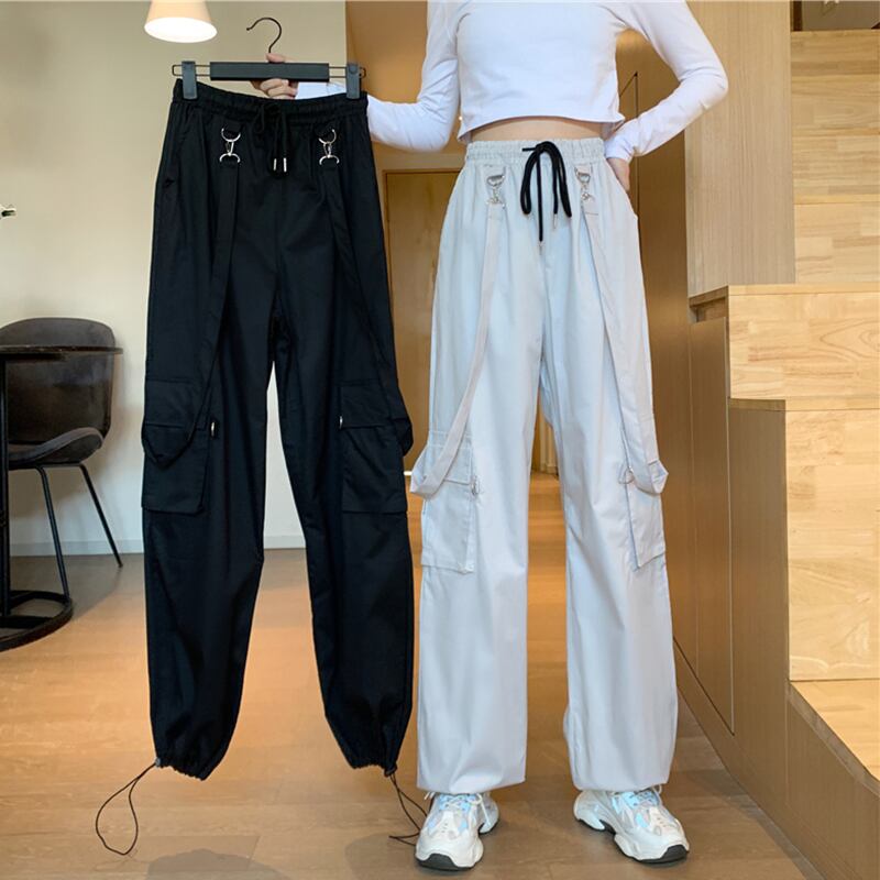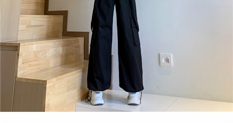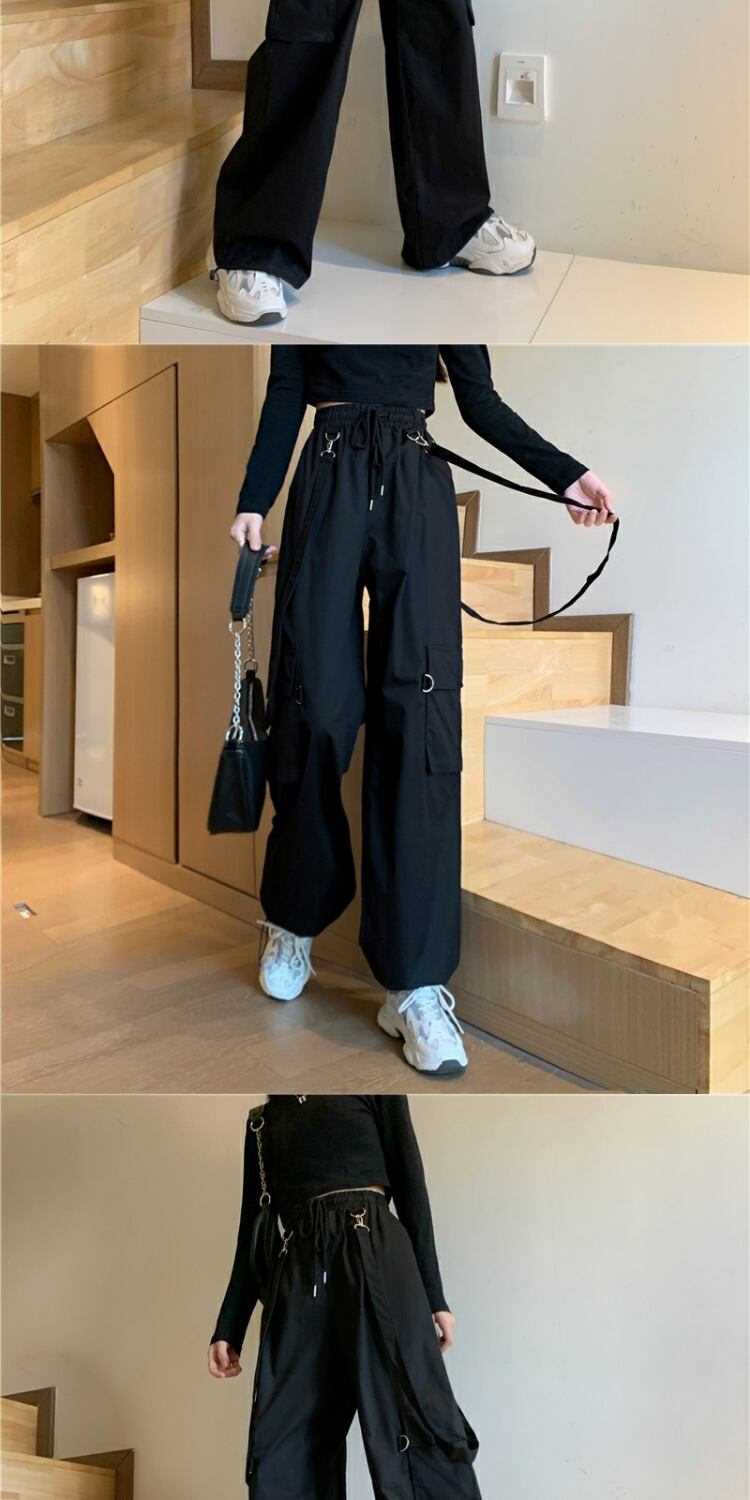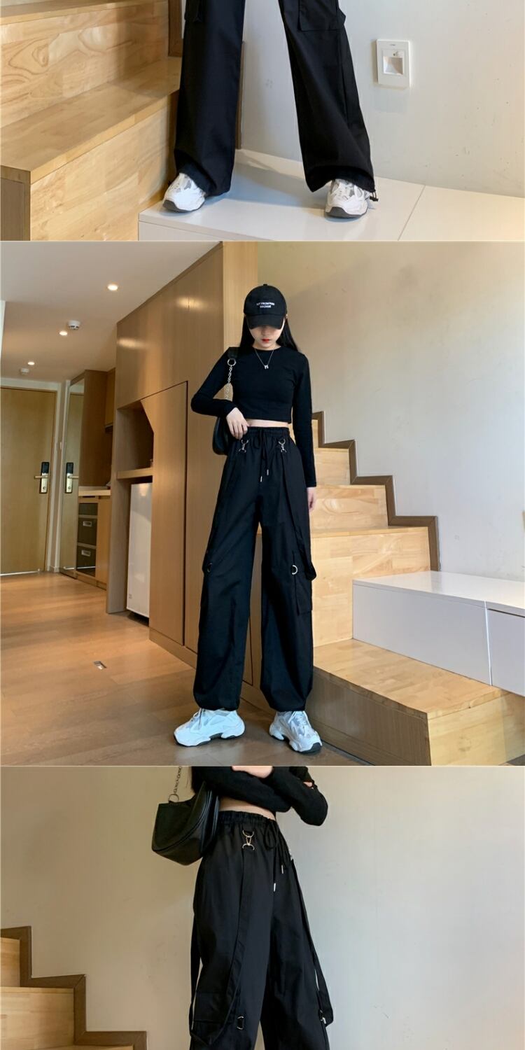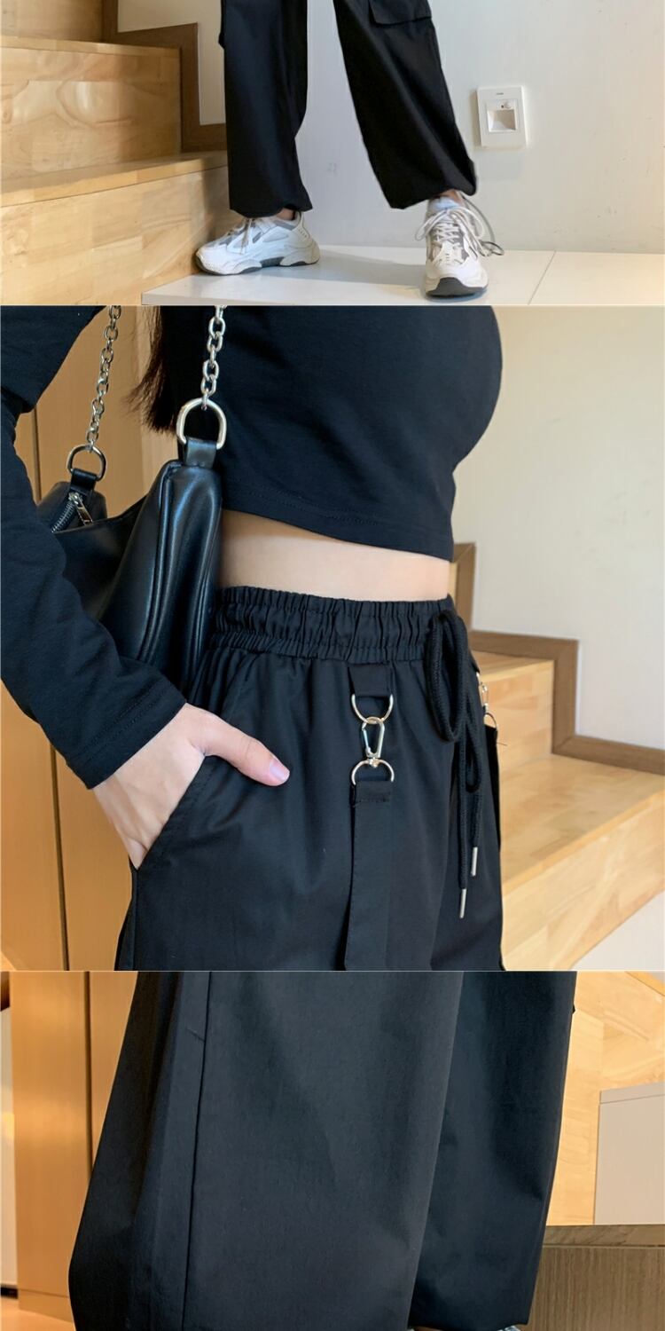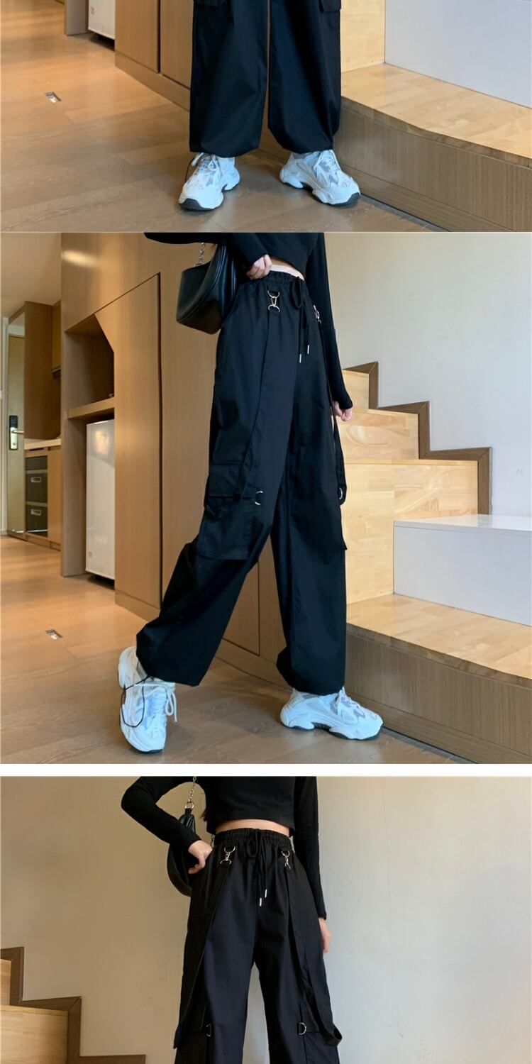 ルーズハイウェストウェストブラックオーバーオール スプリングカジュアルパンツ 春物 萌量不足27387231633