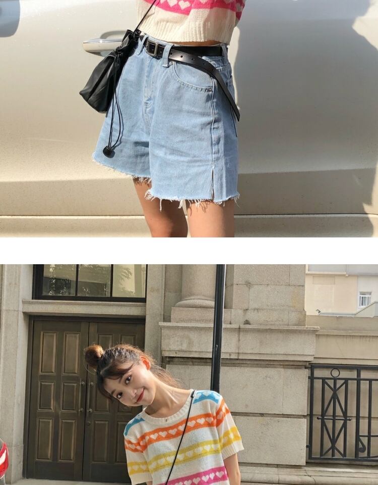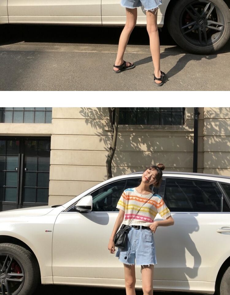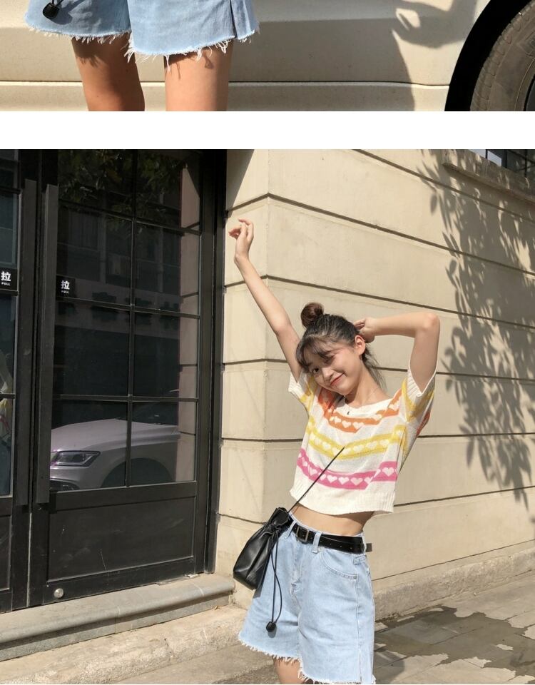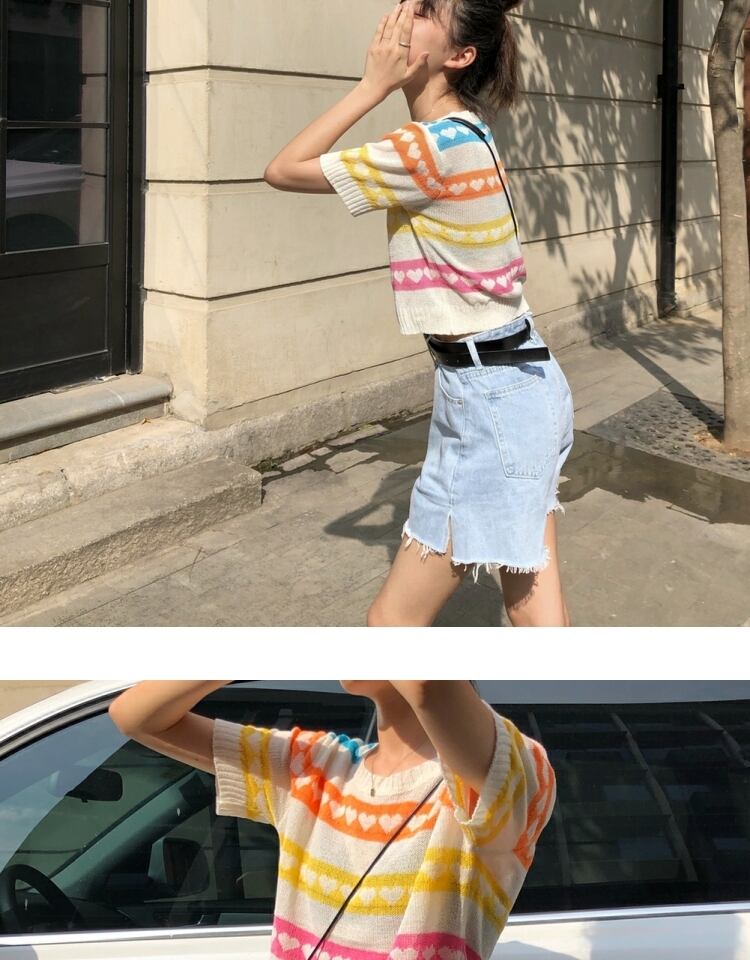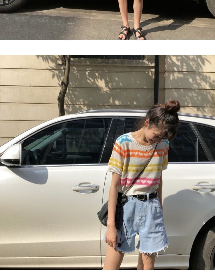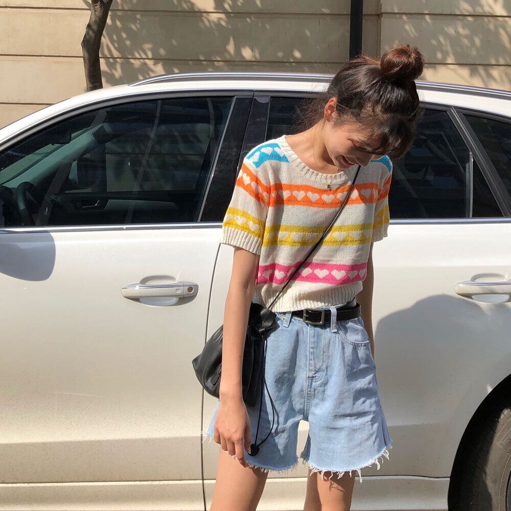 スタンダードカラージャカードニットショートTシャツ レディーススプリングオータムトップス レトロ 春物 秋物 シルク 萌量不足79926047957